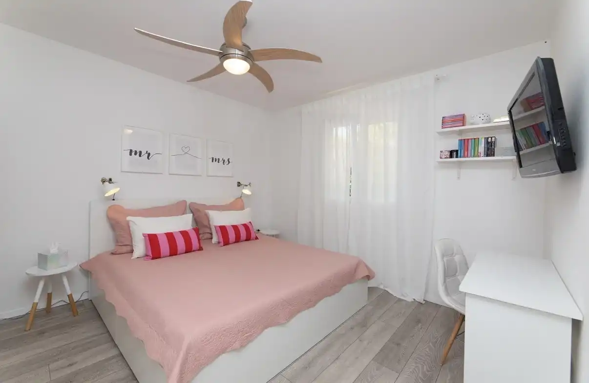 Two Flowers Luxury Apartment se nachází v Supetaru a nabízí zahradu, společný lounge a terasu. Nabízí ubytování s bezplatným Wi-Fi a výhledem na město. Apartmán se nachází v oblasti, kde se hosté mohou věnovat aktivitám, jako je pěší turistika a cyklistika, a nabízí bezplatné soukromé parkoviště. Tento klimatizovaný apartmán má několik ložnic (2), obývací pokoj, plně vybavenou kuchyň s lednicí a kávovarem a koupelnu (1) se sprchou a bezplatnými toaletními potřebami. Součástí apartmánu je také pračka a koupelna (1) s vanou. Two Flowers Luxury Apartment nabízí gril. Two Flowers Luxury Apartment nabízí službu půjčení jízdních kol i aut. Pláž Acapulco je od Two Flowers Luxury Apartment vzdálená 5 minut chůze a muzeum Uja Brac je vzdálené 10 km.