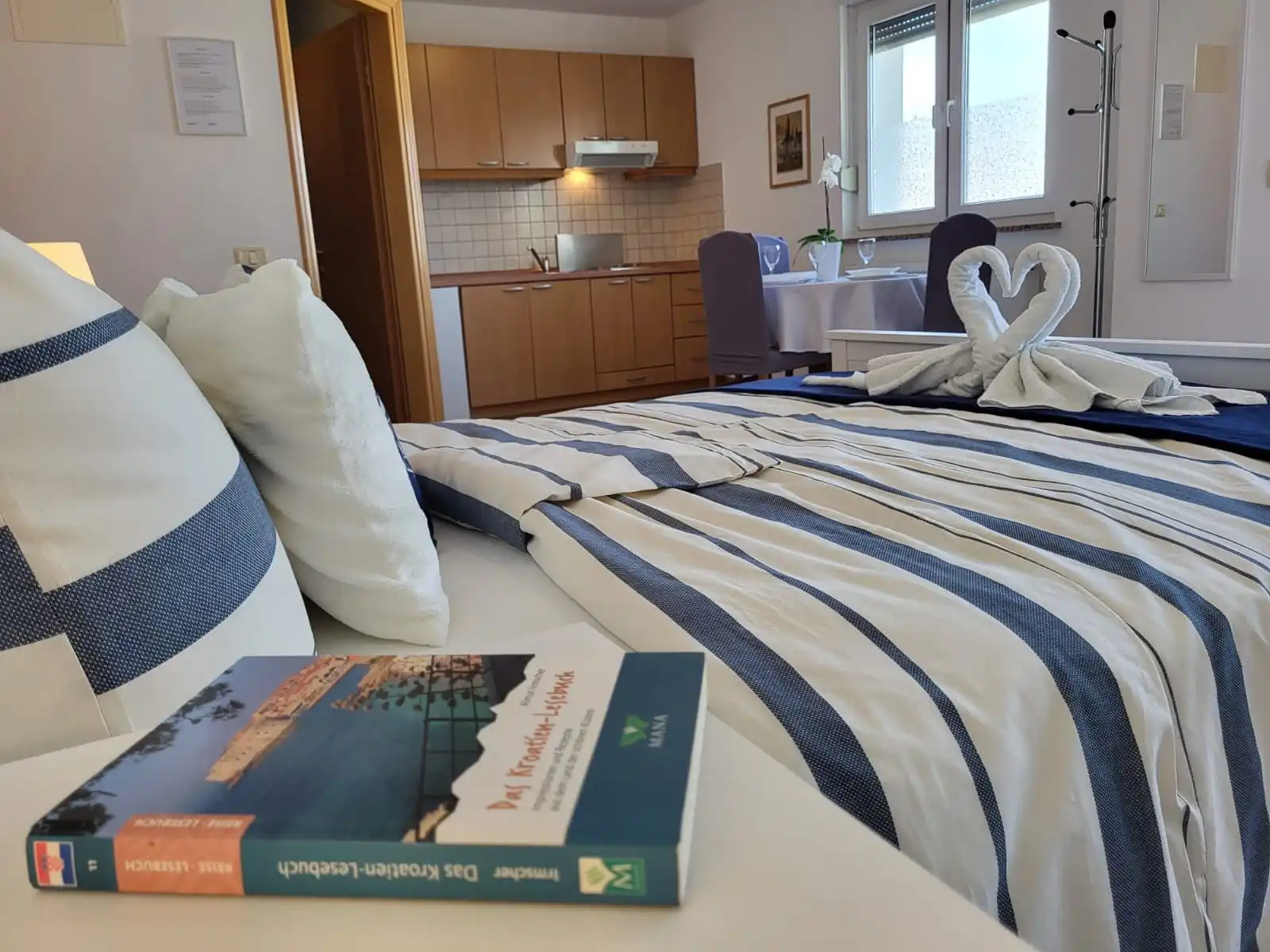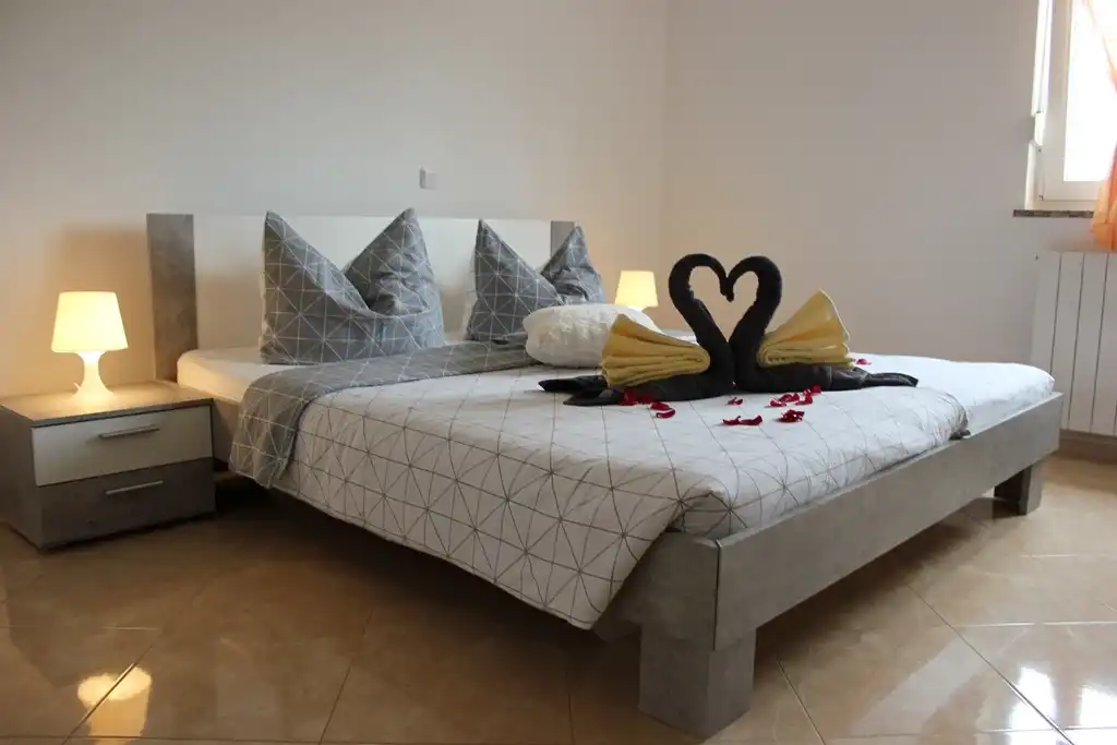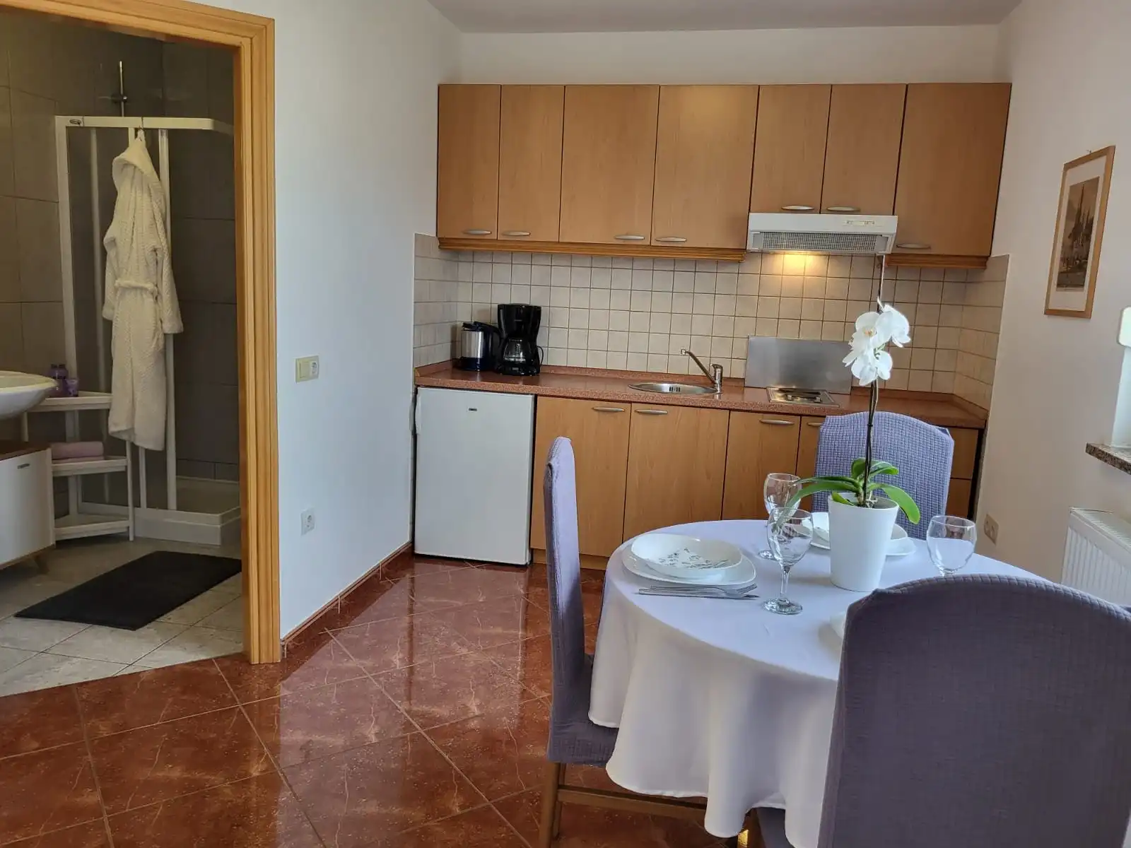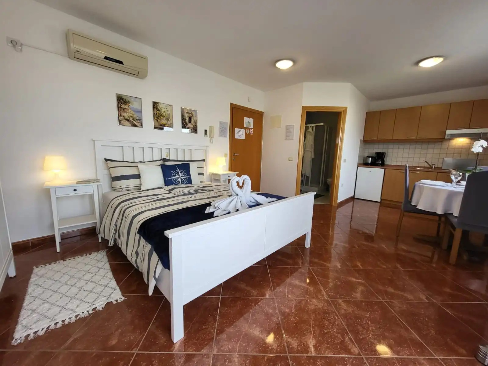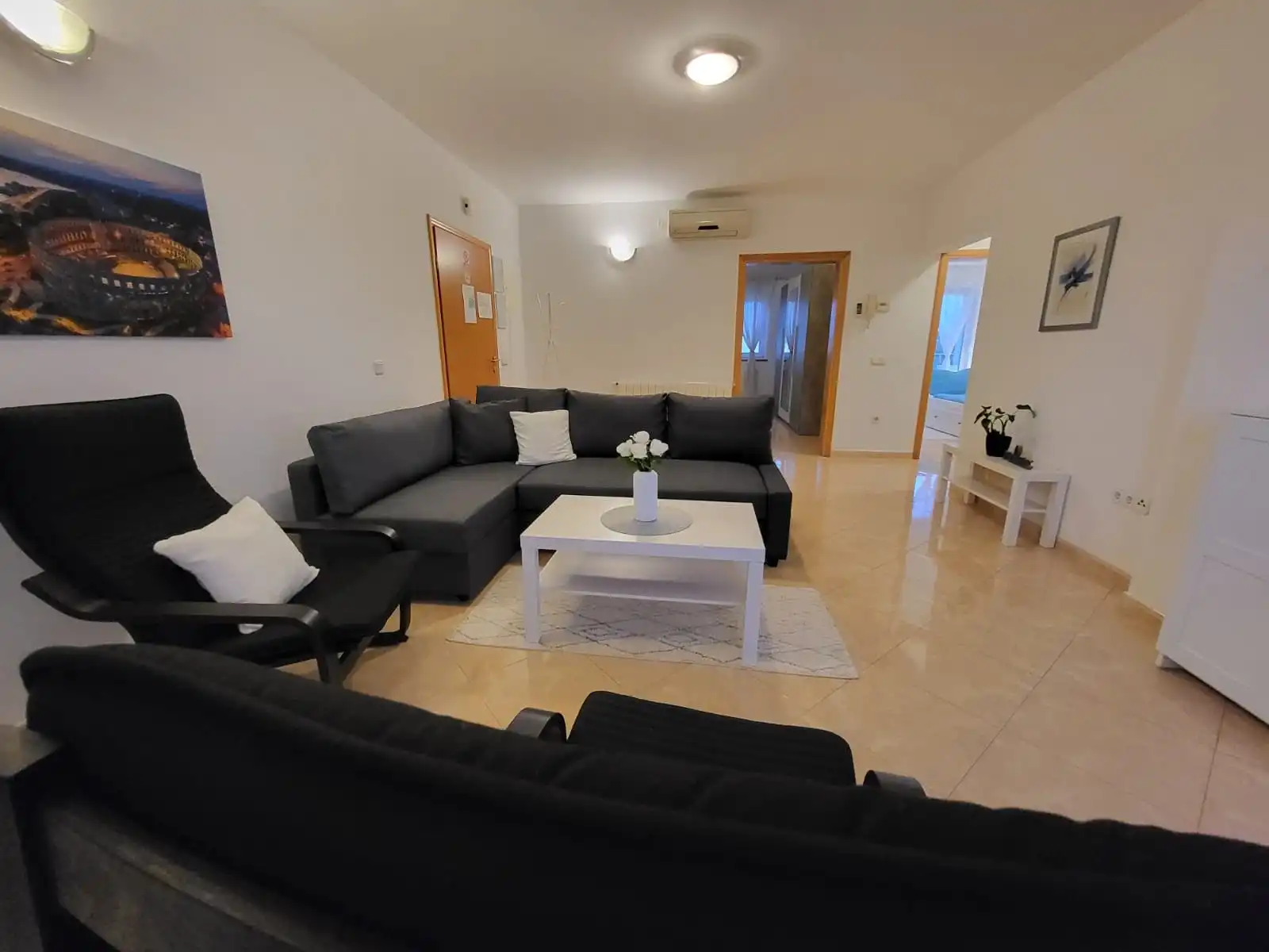 S láskou vedené rodinné apartmány , klasifikované jako 3 hvězdičky, se nacházejí jen 350 m od oblíbené oblázkové pláže se slavným nábřežím a 300 m od centra Fažany. WLAN je samozřejmě zdarma. Všechny apartmány mají klimatizaci, satelitní TV a balkon. Apartmány mají plně vybavenou kuchyň s jídelním koutem a kávovarem. Koupelna je vybavena sprchovým koutem a toaletou. Do národního parku Brijunské ostrovy se dostanete výhradně trajektem z Fažany (trajekt jezdí 11x denně v letní sezóně). V okolí hotelu je mnoho gastronomických nabídek, které podávají tradiční i mezinárodní kuchyni. Velký supermarket (Plodine) je vzdálen pouhých 200 metrů. Pravidelná autobusová zastávka na hlavní autobusové nádraží v Pule, vzdálené 7,5 km, je vzdálená 150 metrů. Letiště Pula je asi 12,5 km od hotelu. Máme dostatek bezplatného parkoviště.