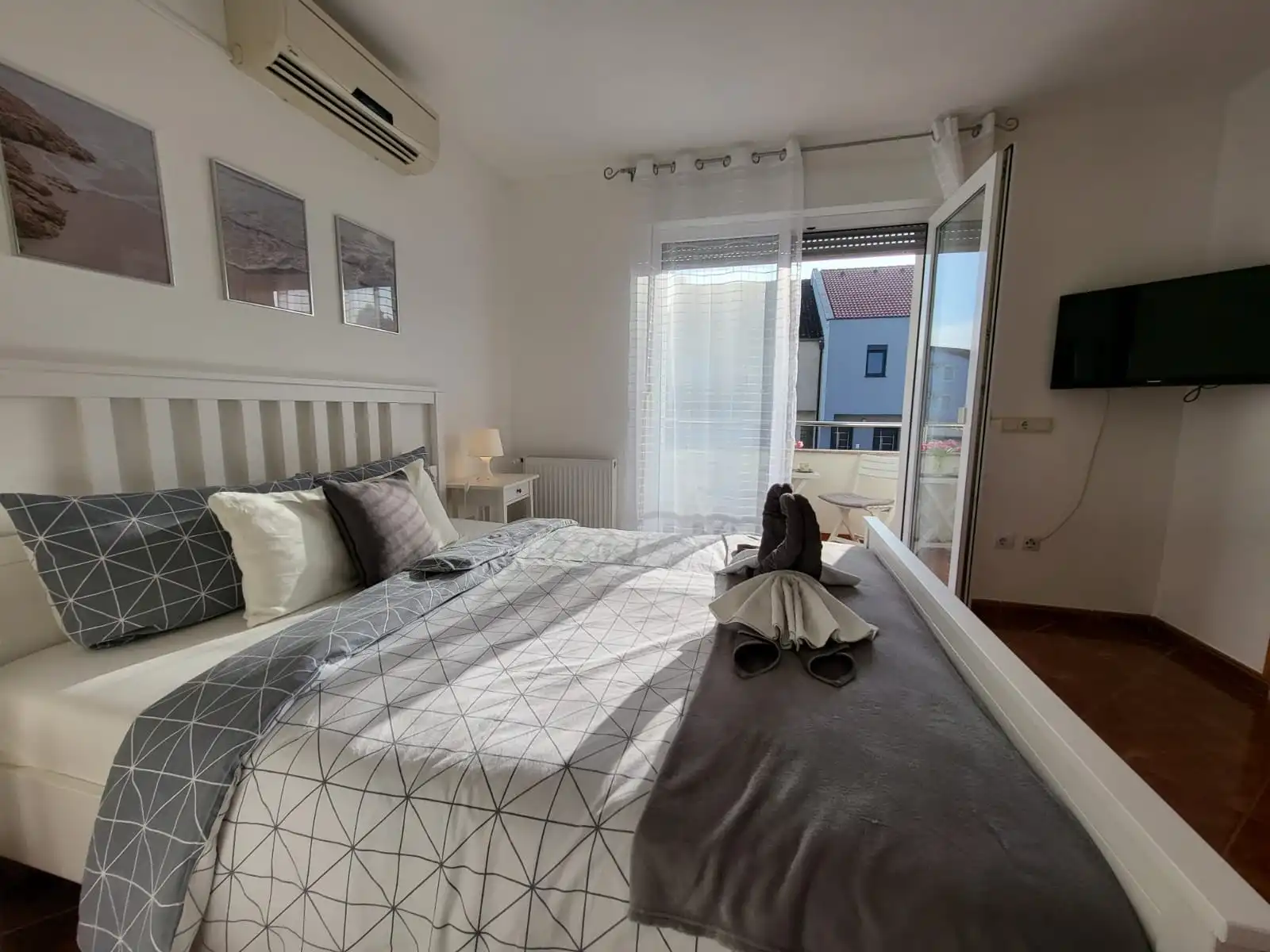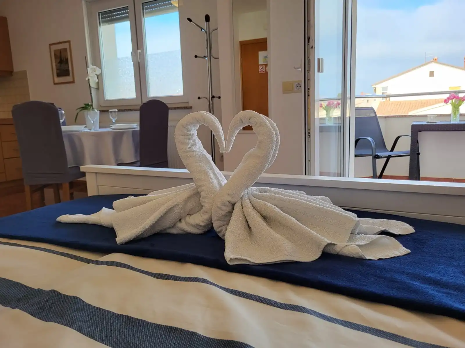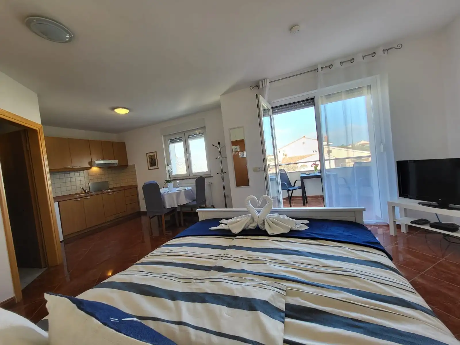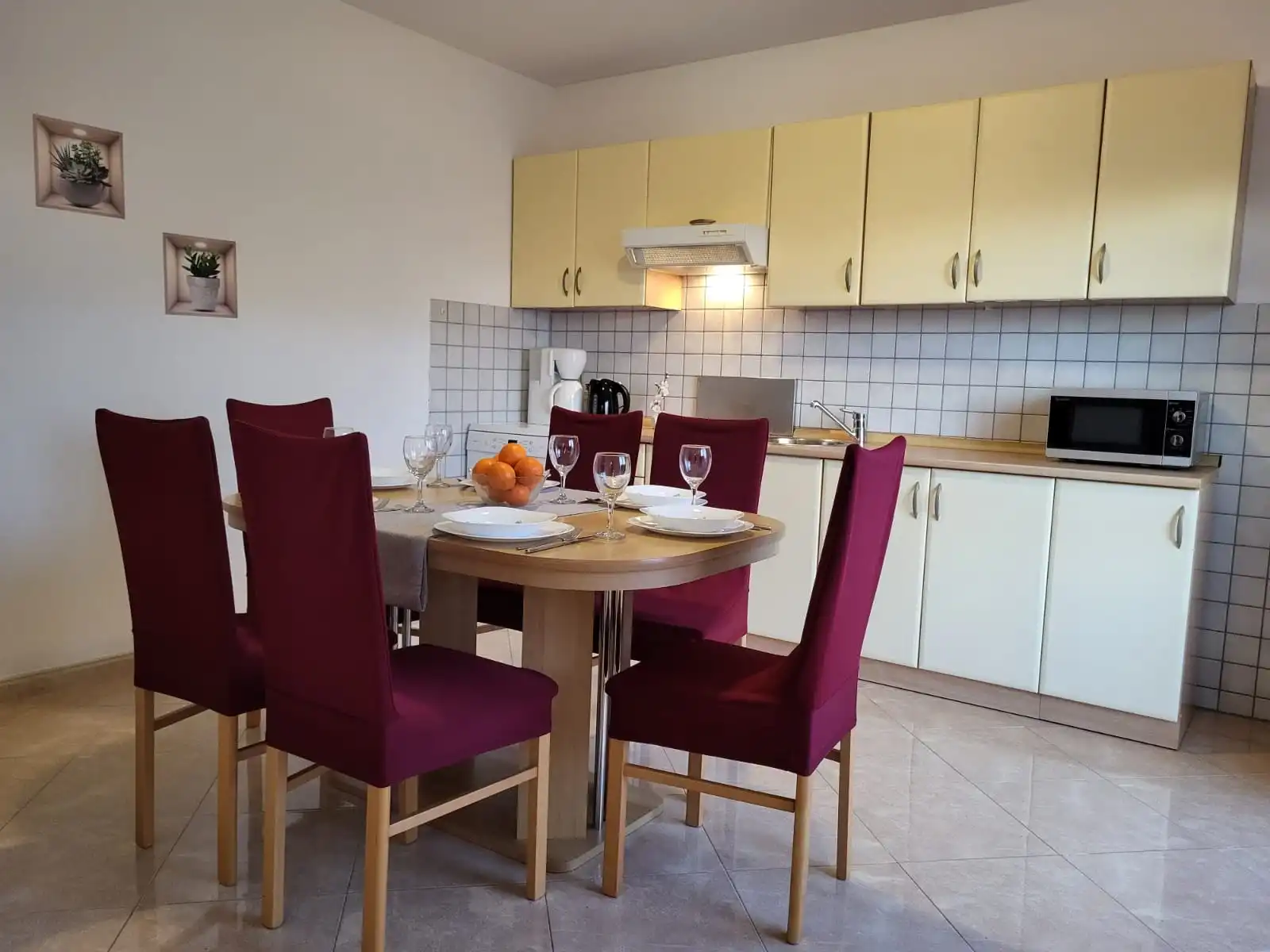 S láskou vedené rodinné apartmány , klasifikované jako 3 hvězdičky, se nacházejí jen 350 m od oblíbené oblázkové pláže se slavným nábřežím a 300 m od centra Fažany. WLAN je samozřejmě zdarma. Všechny apartmány mají klimatizaci, satelitní TV a balkon. Apartmány mají plně vybavenou kuchyň s jídelním koutem a kávovarem. Koupelna je vybavena sprchovým koutem a toaletou. Do národního parku Brijunské ostrovy se dostanete výhradně trajektem z Fažany (trajekt jezdí 11x denně v letní sezóně). V okolí hotelu je mnoho gastronomických nabídek, které podávají tradiční i mezinárodní kuchyni. Velký supermarket (Plodine) je vzdálen pouhých 200 metrů. Pravidelná autobusová zastávka na hlavní autobusové nádraží v Pule, vzdálené 7,5 km, je vzdálená 150 metrů. Letiště Pula je asi 12,5 km od hotelu. Máme dostatek bezplatného parkoviště.