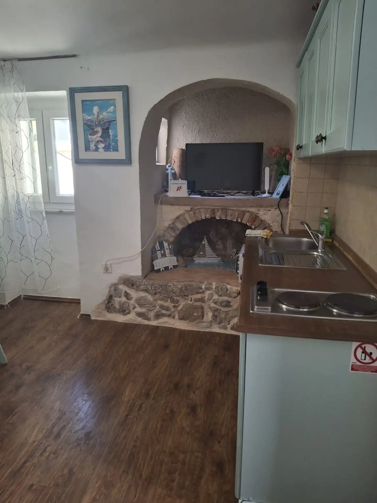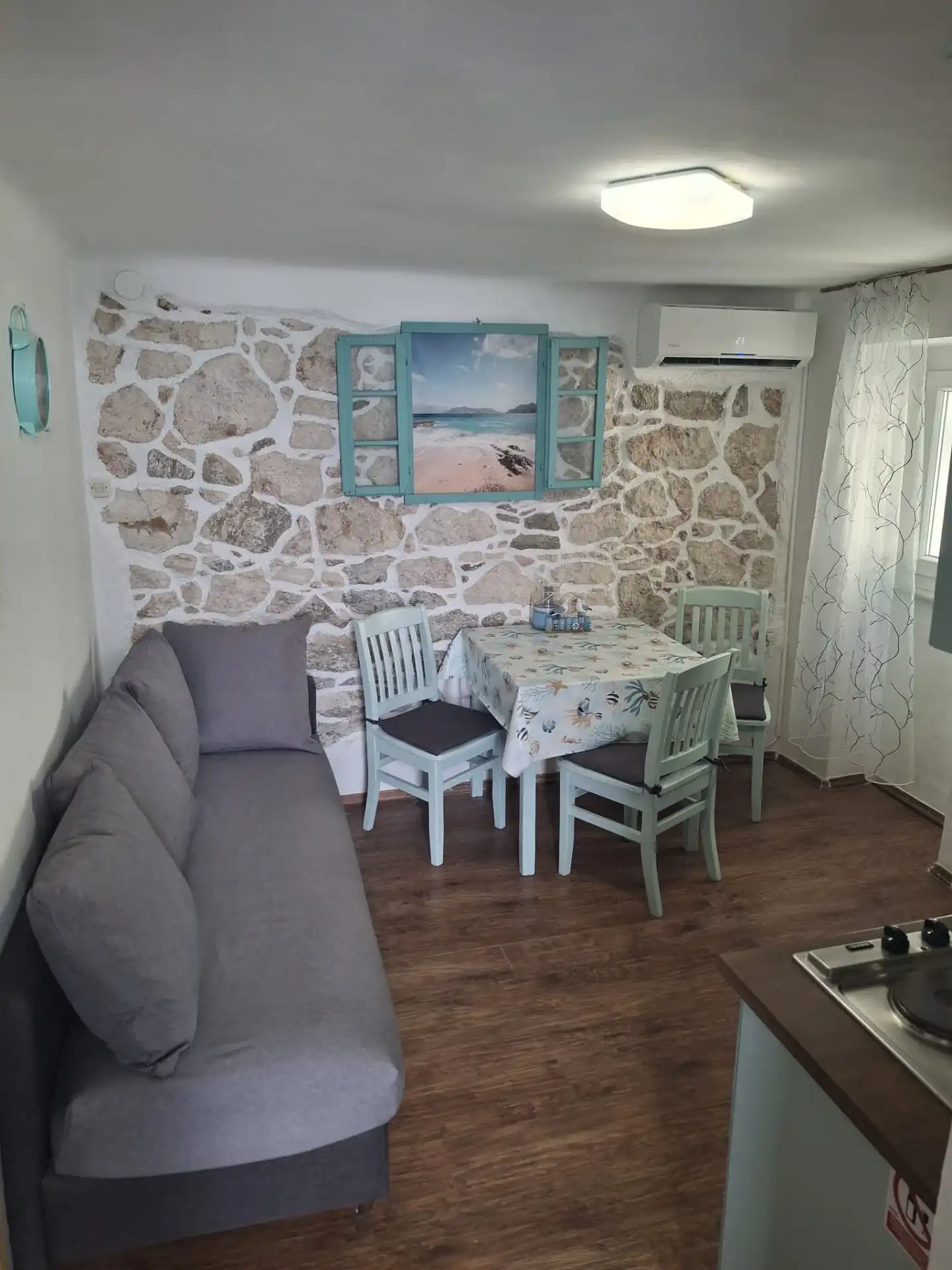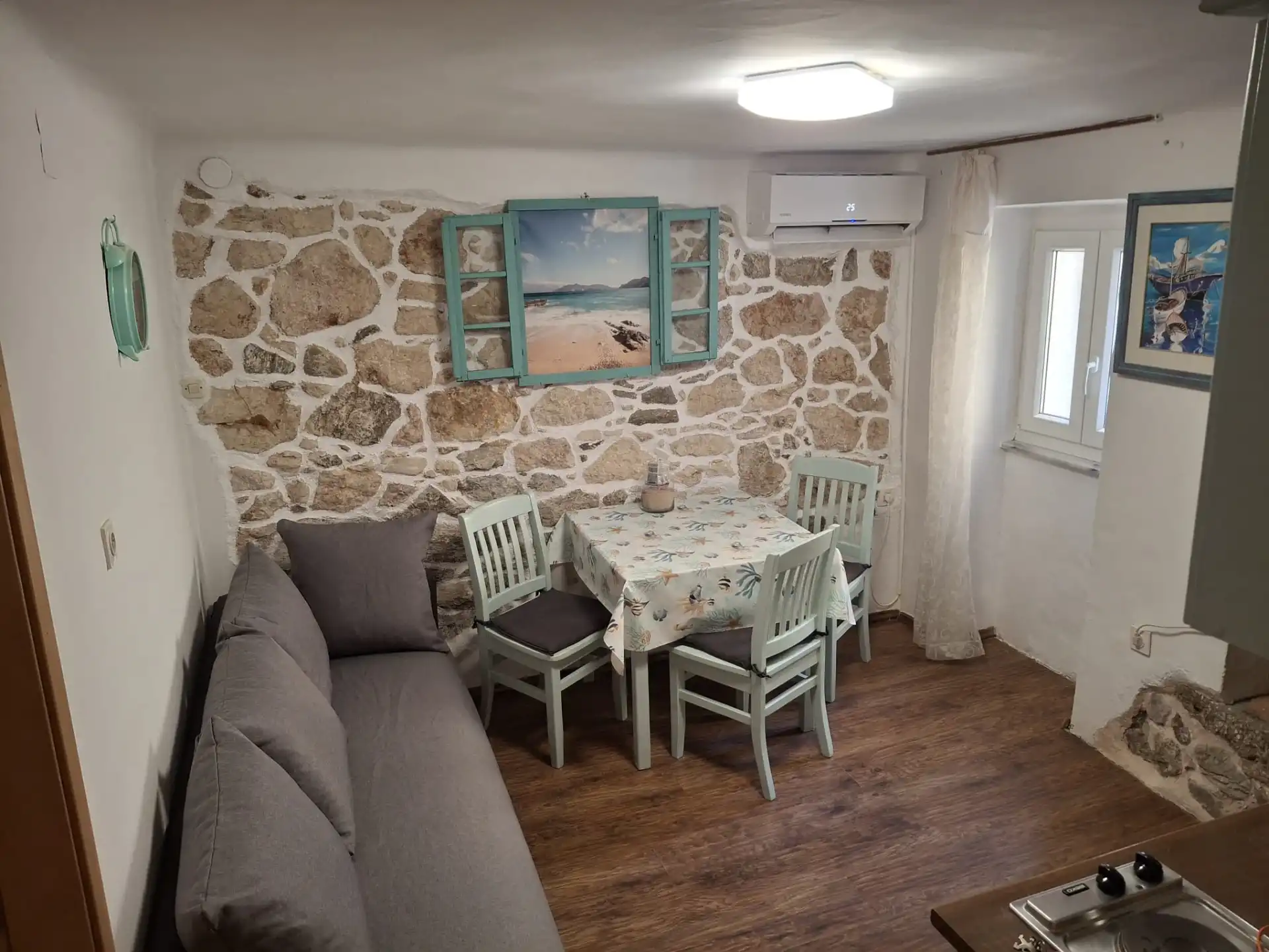 Byt se nachází u moře, pláž je 20m od apartmánu. Byt se nachází ve starém centru a má hlídané parkovací místo. V bytě je kuchyň, jídelní stůl a gauč. Má ložnici s koupelnou, WC. V bytě je Wi-Fi, satelit, TV.