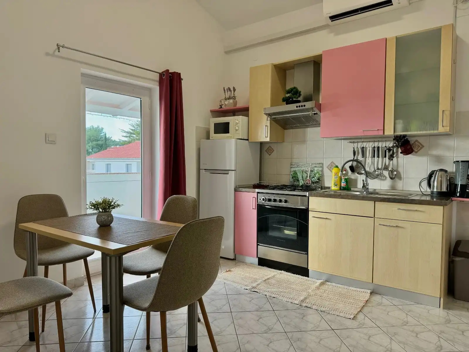 Apartmánový dům Hajl se nachází ve městě Krk, pouhých 400 m od pláže a centra města, ale přesto v klidné oblasti. Objekt je vhodný pro příjemnou rodinnou dovolenou, protože se nachází v nerušné ulici. Nabízíme ubytování v 5 apartmánech, které mohou ubytovat dvě až pět osob. Apartmány jsou plně vybavené a klimatizované, aby zajistily našim hostům pohodlný pobyt. Každý apartmán má vlastní parkovací místo a na zahradě možnost využití grilu. Příplatky (platí se při příjezdu): - Registrační poplatek: 4 EUR na osobu jednou - Přistýlka: 12 EUR na den - Domácí zvířata: 12 EUR na den