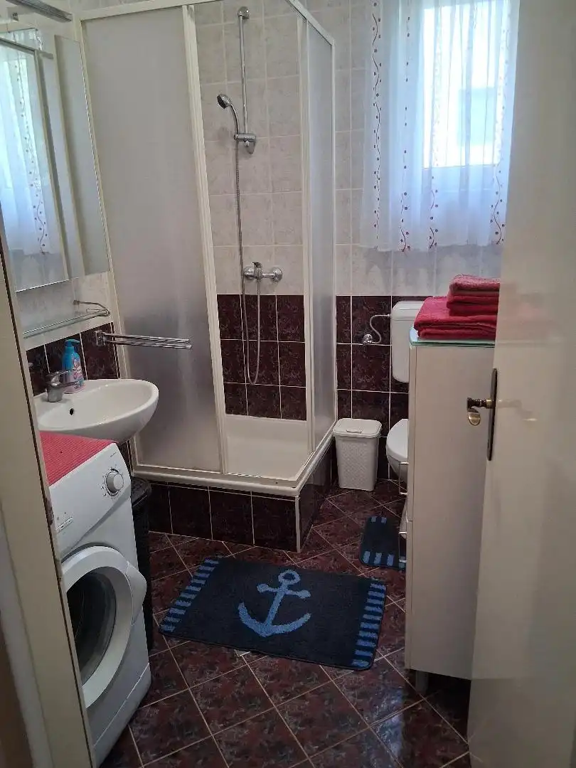 Apartmán Mandre ostrov Pag (Ribarska 27). Náš byt je velký 62 m2. Náš dům je ve druhé řadě u moře. Máme přízemí a první patro. Přízemí využívá moje rodina a první patro je k pronájmu. Apartmán má jeden pokoj s manželskou postelí a druhý pokoj se dvěma samostatnými lůžky. Kuchyň s jídelnou je kompletně vybavená (stůl a 6 židlí) a jde do obývacího pokoje. V obývacím pokoji jsou skříně, gauč, který lze roztáhnout jako postel pro jednu osobu. V obývacím pokoji je také jedno křeslo a stolek. Na terase je stůl, 4 židle. Z terasy je vidět na moře a dva ostrovy. V bytě je také koupelna se sprchovým koutem, WC a WC. Máme parkoviště před domem (uvnitř objektu). Byt je kompletně vybaven vším, co by jedna rodina mohla potřebovat na své dovolené. Máme TV, rádio s CD přehrávačem, kávovar, toustovač, žehličku a fén. Dostanete od nás ložní prádlo a 4 ručníky. V apartmánu se pohodlně ubytuje čtyři až pět osob. Na zadním dvoře najdete gril (gril) a stůl se dvěma lavicemi, které mohou naši hosté využít, když se rozhodnou jíst mimo apartmán v přirozeném prostředí. Vítejte!