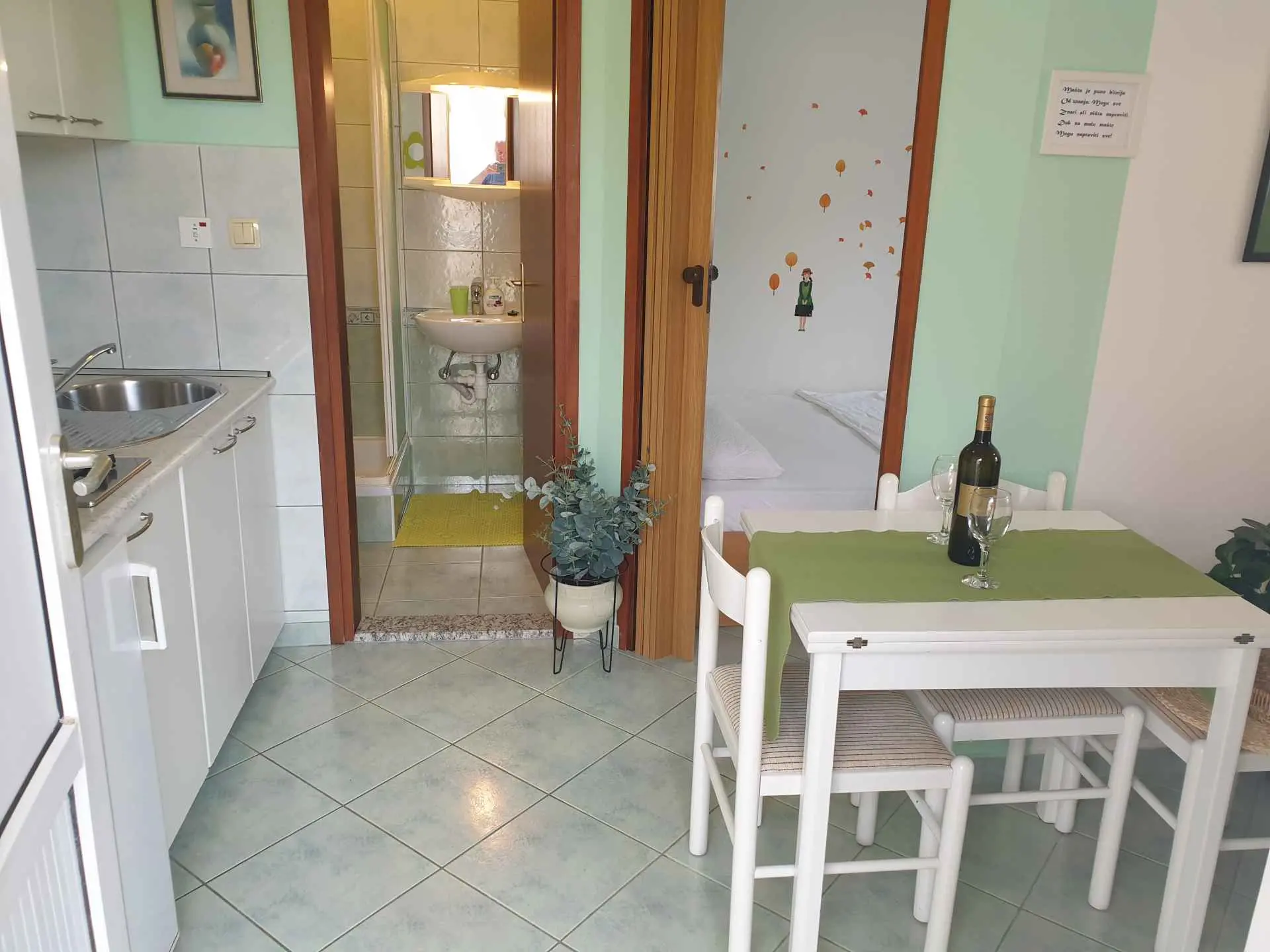 Náš dům má dvě ubytovací jednotky. Apartmán Kaić 1 (2+2) se skládá z plně vybavené kuchyně (lednice s mrazákem, mikrovlnná trouba, varná konvice) se všemi příbory a nádobím. V kuchyni je také jídelna. Apartmán má dvě ložnice, v jednom pokoji je manželská postel, zatímco ve druhém jsou dvě lůžka. Apartmán má TV, WiFi, klimatizaci, velkou terasu s lehátky (20 m2) a výhled na moře. Koupelna je vybavena sprchovým koutem, umyvadlem a toaletou (ručníky, fén). Apartmán Kaić 2 (2+2) se skládá z plně vybavené kuchyně s jídelnou, ve které je rozkládací pohovka (možnost přistýlky). Ložnice s manželskou postelí a samostatným lůžkem. V apartmánu je TV, Wi-Fi, klimatizace, terasa s lehátky. Koupelna je vybavena sprchovým koutem, umyvadlem a toaletou (ručníky, vysoušeč vlasů). Po předchozí dohodě jsou povolena domácí zvířata. Hosté obou apartmánů mají možnost parkování v oploceném a krytém prostoru pro auta naproti našemu objektu (možnost parkování přívěsu pro loď a dalších věcí ve zbývající části téhož dvora). Ve dvoře domu je dětské hřiště. Hosté mají možnost využít plynové grily a grily na dřevěné uhlí.