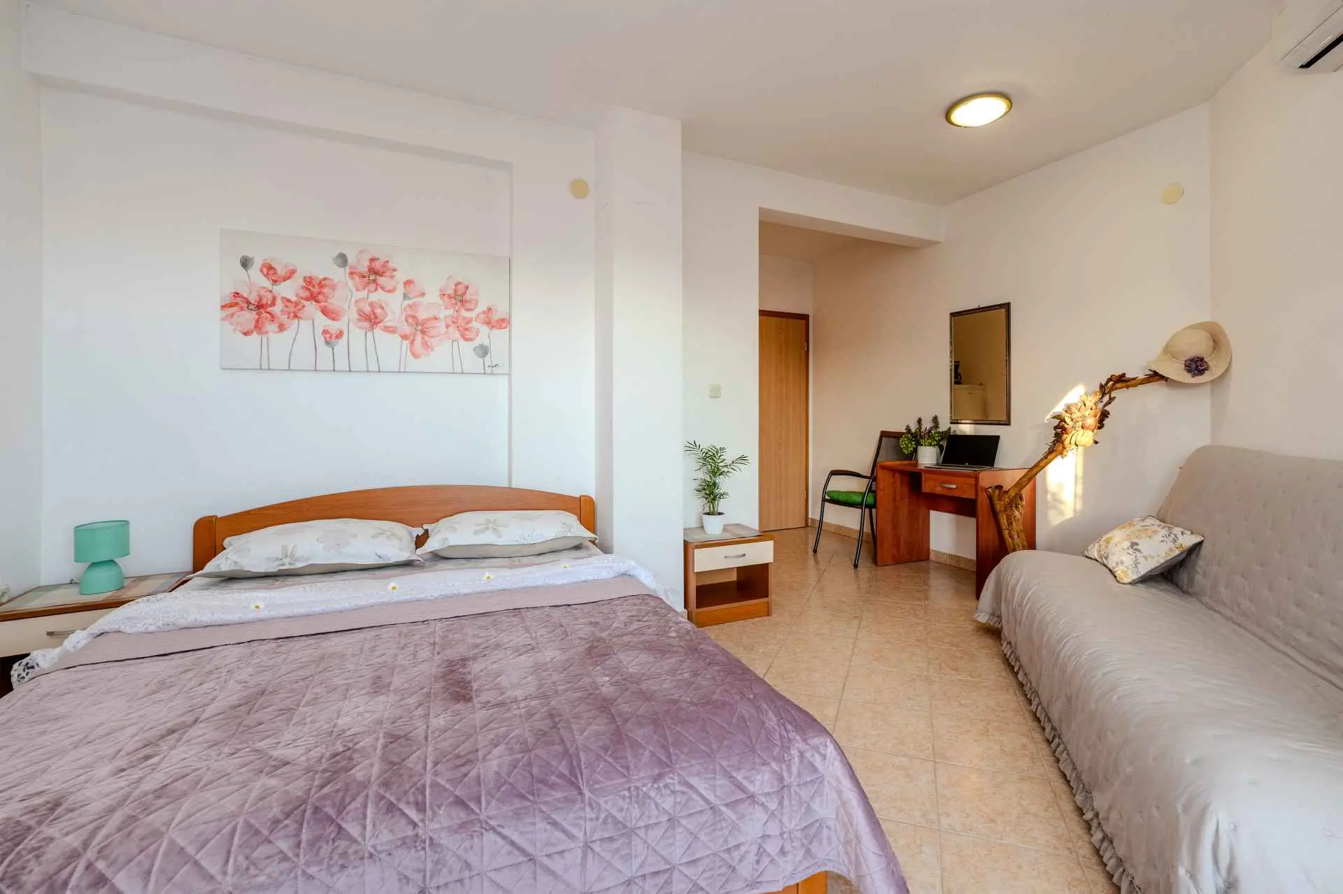 V samém centru Dalmácie a na pobřeží Jaderského moře se nachází krásné město Pakoštane. Nachází se mezi Jaderským mořem a Vranským jezerem, které se vyznačuje bohatým přírodním dědictvím. Krásné písečné pláže, ostrůvky a zátoky jsou to, co dělá z tohoto místa obzvláště atraktivní destinaci. Stejně tak naše tradice, projevy a dalmatské speciality nechávají každého hosta vydechnout. Nabízíme Vám příjemné a klidné ubytování, které je 300m od moře. Půjčovna elektrokol, se kterými můžete projet Vranské jezero a další místa a krajinu. Mezi dalmatské speciality v nabídce patří extra panenský olivový olej, stejně jako četné druhy likérů a krátkých alkoholických nápojů. Naše pohostinnost potěší mnoho hostů, kteří si vše pamatují a rozhodnou se znovu vrátit. Poznámky: Všechny vzdálenosti jsou měřeny v leteckých metrech, televize nejsou tak, jak je na obrázku z důvodu renovací a změn, které budou probíhat od příštího roku (2025)!