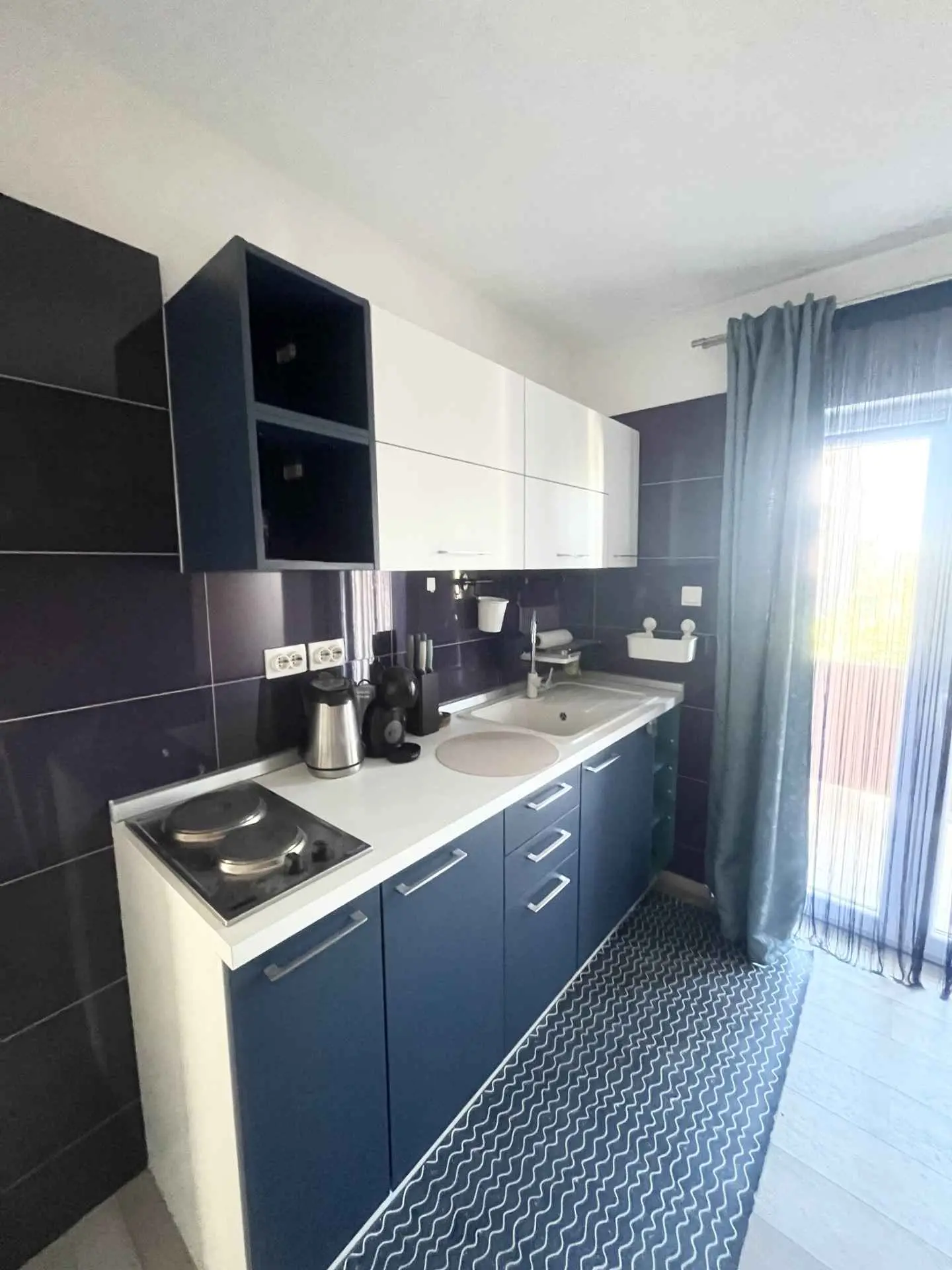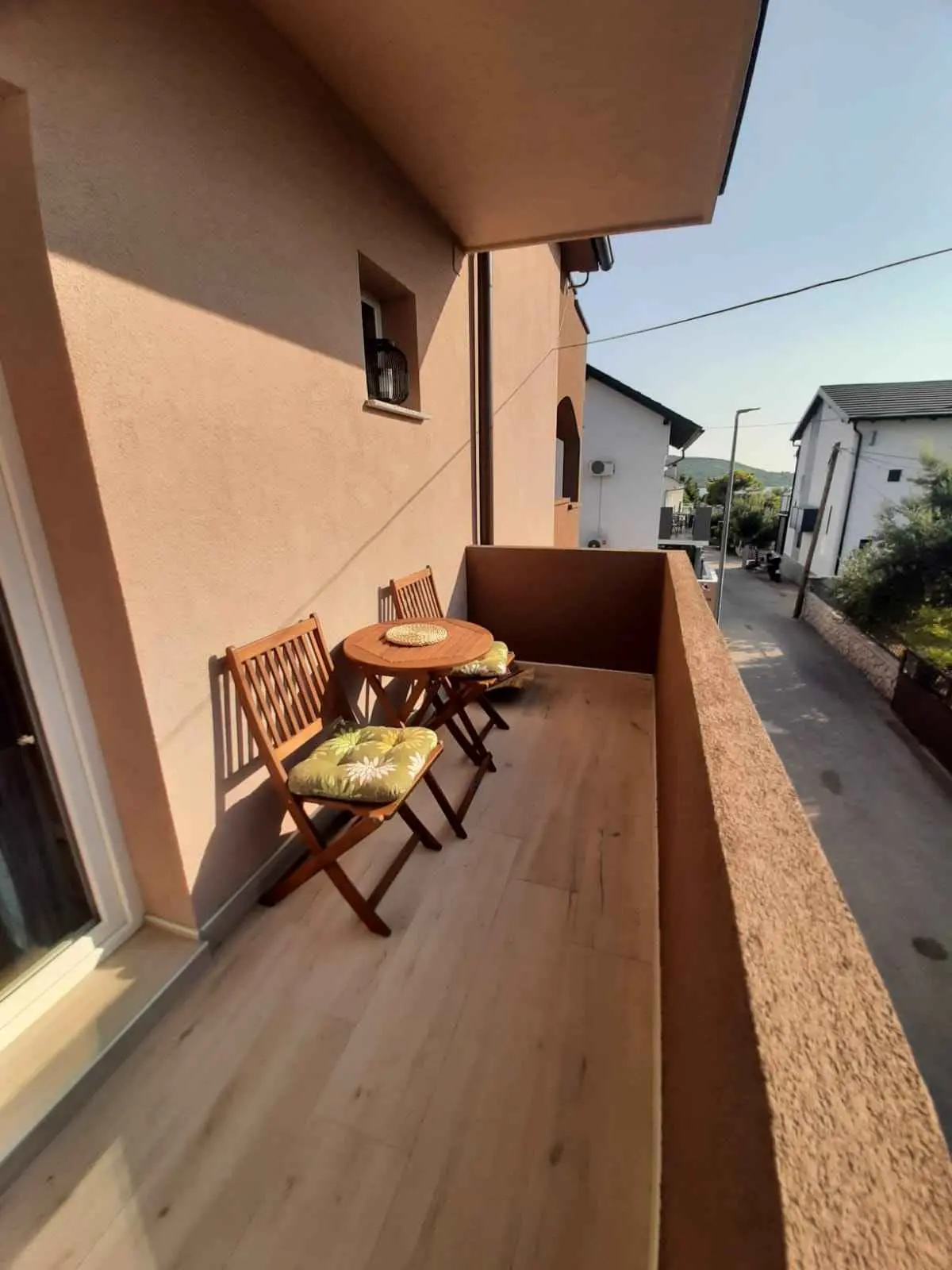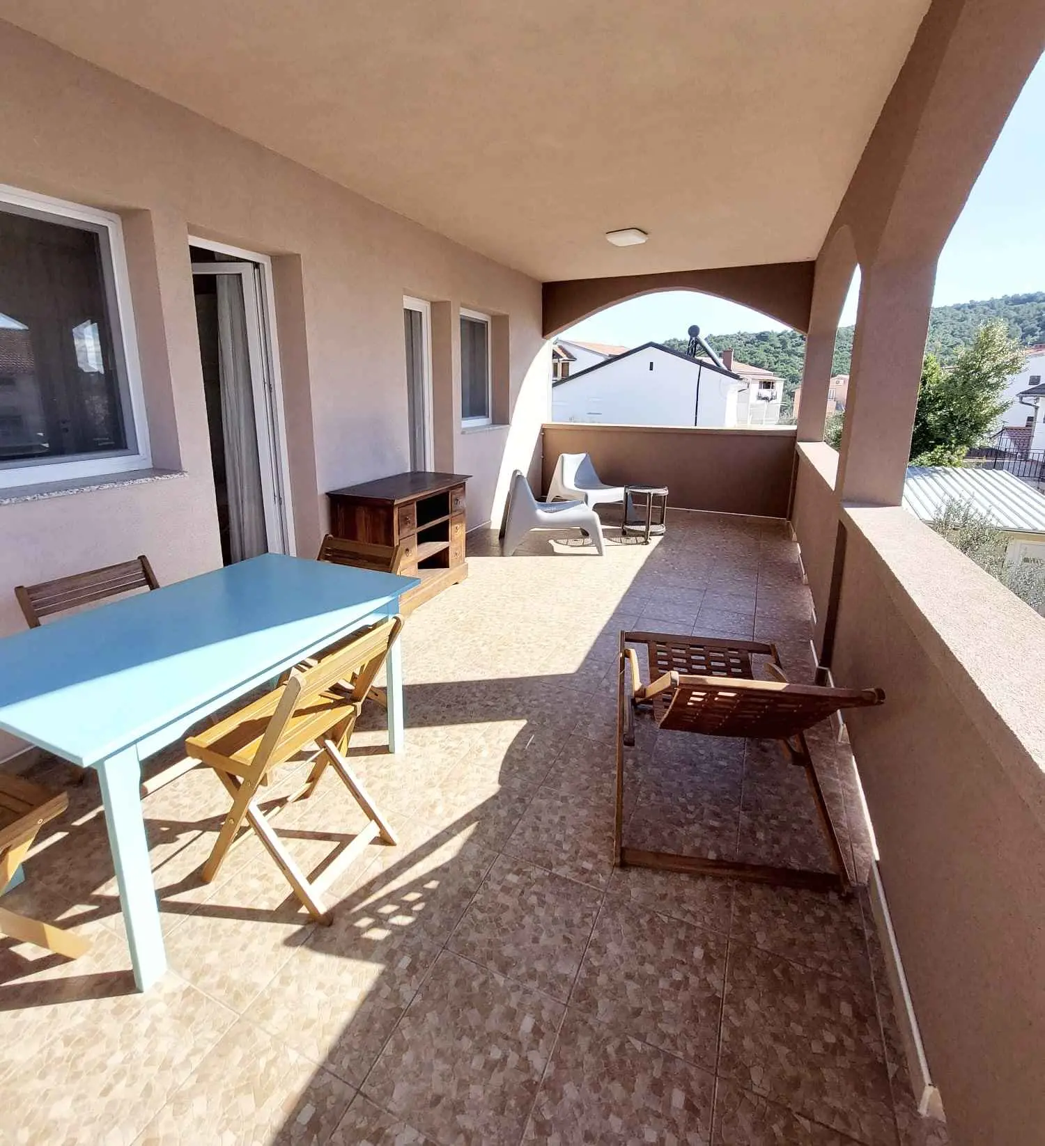 Apartmán se 3 hvězdičkami, pro 2+2 osoby. 42m2 plus terasa 22m2 a balkon 4m2. Obývací pokoj s jídelnou a kuchyní, LCD TV, rozkládací pohovka, velká terasa 22m2, výhled na moře. Ložnice s balkonem, dvě samostatné postele. Vysoké podkroví, klimatizace. Domácí mazlíčci vítáni, po předchozí domluvě. Parkování možné po domluvě a po předchozím upozornění. Vítejte!