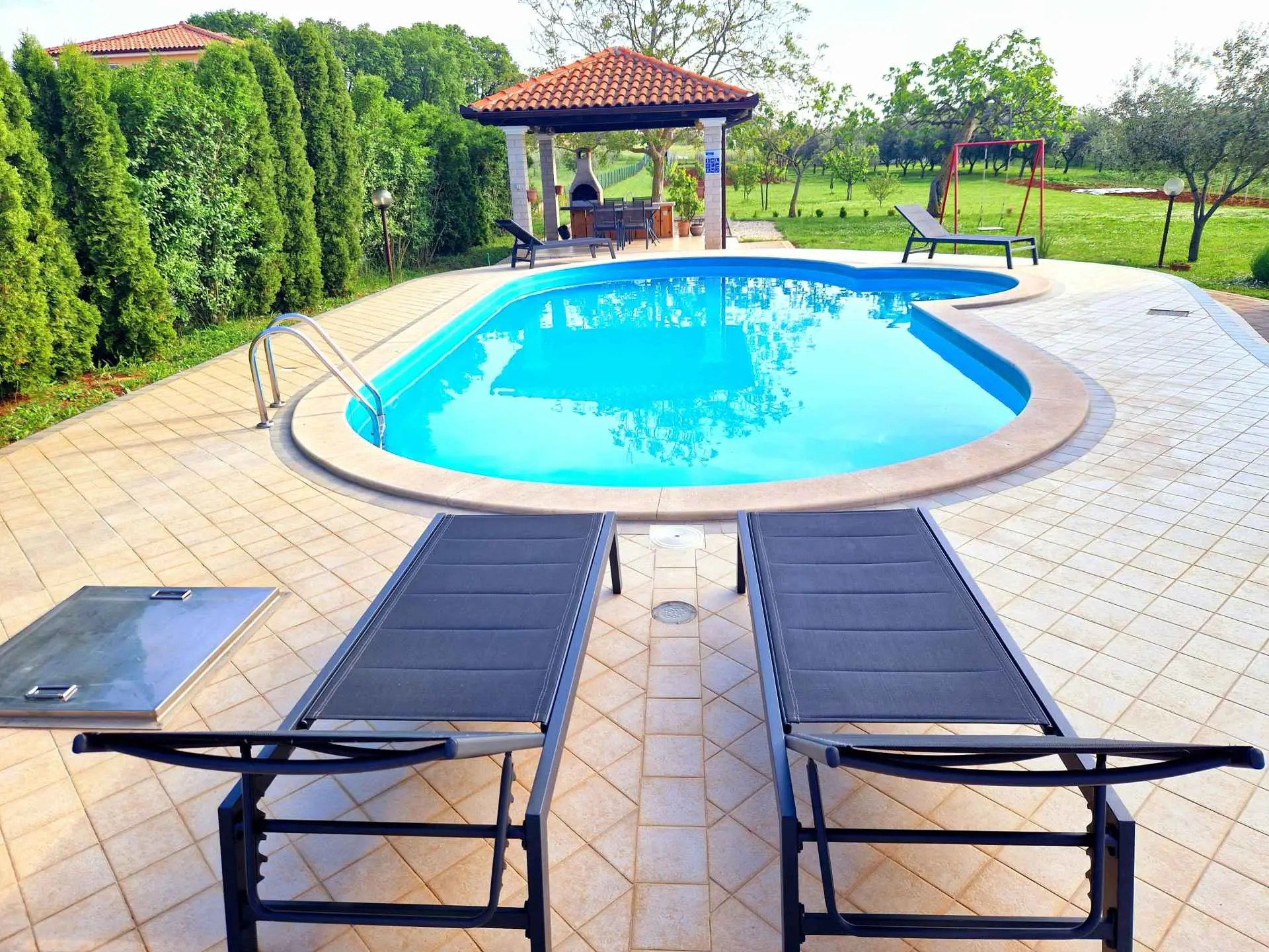 Sladká chata s prostornou zahradou a soukromým bazénem. Dům je vybaven Wi-Fi, klimatizací, TV s netflixem, moskytiérami na všech oknech, třemi terasami pro relaxaci, grilem a na místě je také bezplatné parkoviště. Ubytuje čtyři osoby a obsahuje vše, co potřebujete pro kvalitní a klidnou dovolenou. Nachází se v klidné čtvrti, obklopené přírodou a nabízí autentický venkovský zážitek. Prostor Komfortní prázdninový apartmán s vlastním bazénem, který se nachází pouhých 6 km od moře a pláží a vzdálenost od Puly, největšího města na Istrii, je 7 km. Byt je okouzlující a útulný, má asi 50 m2 a skládá se z jedné dvoulůžkové ložnice, jedné ložnice se 2 samostatnými lůžky, kuchyně s jídelním koutem a koupelny se sprchovým koutem. Byt má prostornou terasu se zahradním nábytkem, kde si můžete vychutnat teplé istrijské klima a relaxovat v tichých večerech. Na zahradě je také další krytá terasa s grilem, kde si naši hosté mohou připravovat lahodné pokrmy z masa nebo ryb. Kuchyň je plně vybavena vším, co potřebujete k vaření, včetně trouby, myčky, kávovaru, mikrovlnné trouby, toustovače, rychlovarné konvice atd.. Byt má vlastní bazén, venkovní gril pro strávení nezapomenutelných letních dnů a večerů a spoustu zeleně prostor vhodný pro děti. K dispozici hostům Hosté mají k dispozici celý dům s prostornou terasou, soukromým parkovištěm a prostorem pro grilování, aby zajistili pohodovou dovolenou. Bazén bude výhradně k dispozici vám a vy se budete moci volně pohybovat po celém okolním oploceném areálu. Okolí Apartmán je samostatně stojící dům nacházející se v malé vesničce Valtura, nemovitost je obehnána kamennou zdí zachovávající její soukromí, na pozemku také bydlí hostitel v samostatném domě. Bazén je k dispozici výhradně hostům a mohou se volně pohybovat v celém okolním oploceném areálu, což zajišťuje pohodový pobyt. V obci se nachází trh s potravinami, zatímco větší supermarkety jsou jen pár kilometrů od ubytování. Valtura je malé místo na Istrijském poloostrově, známé pro své kulturní a historické dědictví sahající až do římských dob. Nachází se jen 2 km od nejcennějšího naleziště Nesactium, které bylo velmi významným městem v době bronzové, a je také jedním z oblíbených míst archeologů. Valtura je ideální destinací pro návštěvníky, kteří hledají dovolenou daleko od davů v turistických centrech, přičemž samotné pobřeží se nachází nedaleko. Je to ideální místo pro ty, kteří chtějí uniknout z města a užít si klid a pohodu. V okolí se hosté mohou věnovat různým sportovním aktivitám, jako je rybaření, cyklistika, golf, kanoistika, jízda na koni, plavání, plachtění, surfování, potápění, tenis, volejbal, vodní lyžování atd.