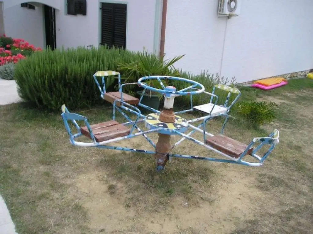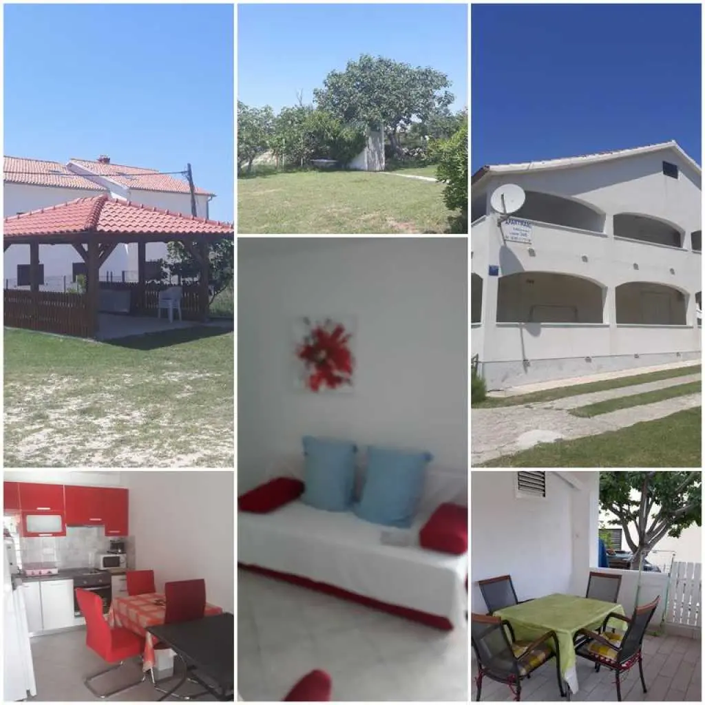 Apartmány jsou umístěny v dvoupatrový dům, který obsahuje 2 byty 65 m2. Každý apartmán je vybaven kuchyní, ložnici, samostatnou koupelnou a velkou terasou. Každý apartmán má velkou terasu, která zvláště vyniknout na podlahu, satelitní TV a klimatizací. Rodinný dům na vyvýšeném a klidném prostředí. Vzdálenost od písečné pláže 1000 do 1200 m, a do restaurací, supermarket, pošta, kostel je 400 m. Dům má velké parkoviště, gril a velké nádvoří s dětským hřištěm, kde si děti mohou hrát a bezpečně. Lopar je obklopen četnými zátokami a 22 písečné pláže a nabízí to nejlepší, co lze opalování, koupání, odpočinek a zotavení. Domácí zvířata nejsou povolena Doufáme, že budeme brzy přivítá vás jako hosty v jednom z našich apartmánů.