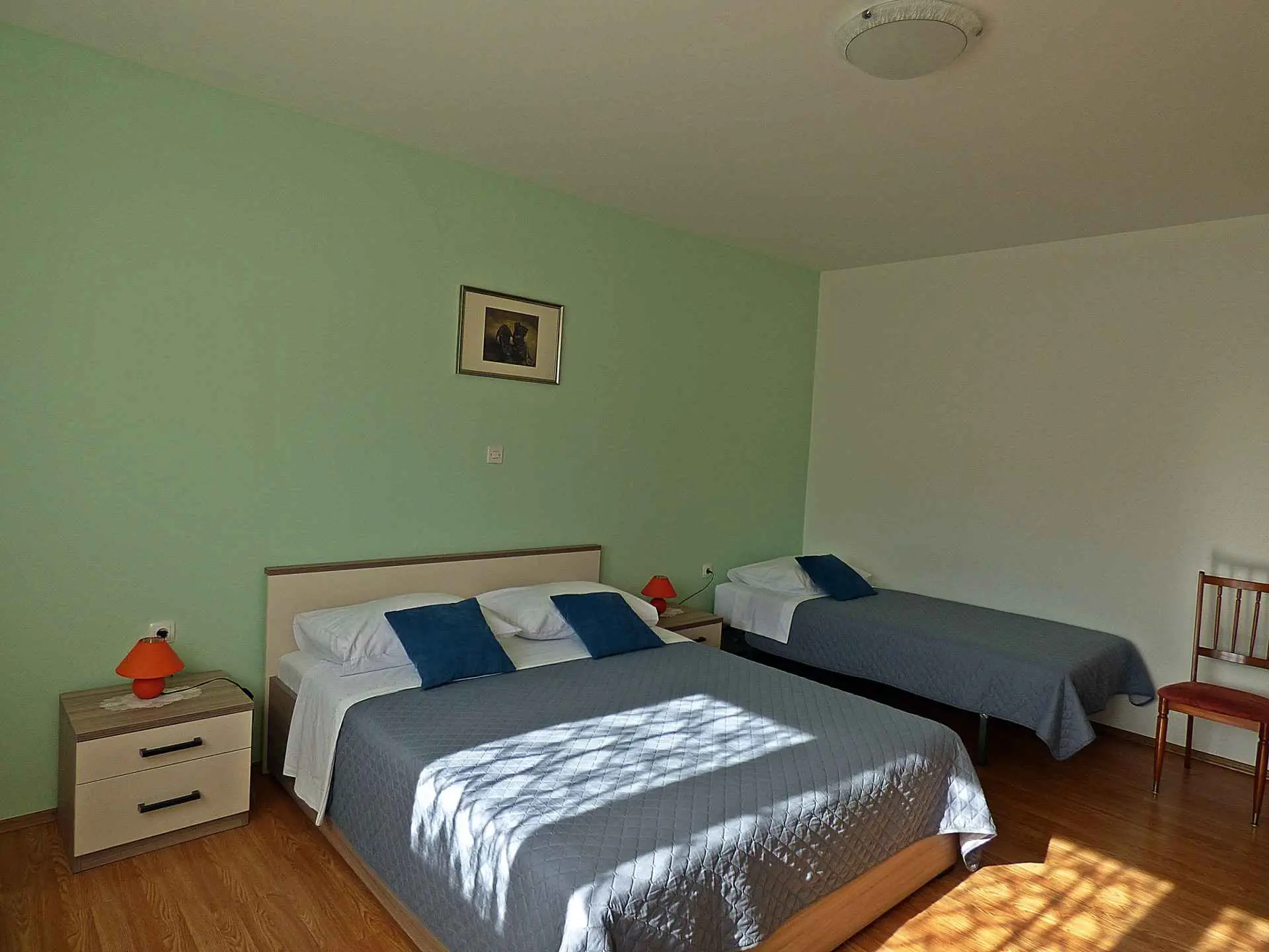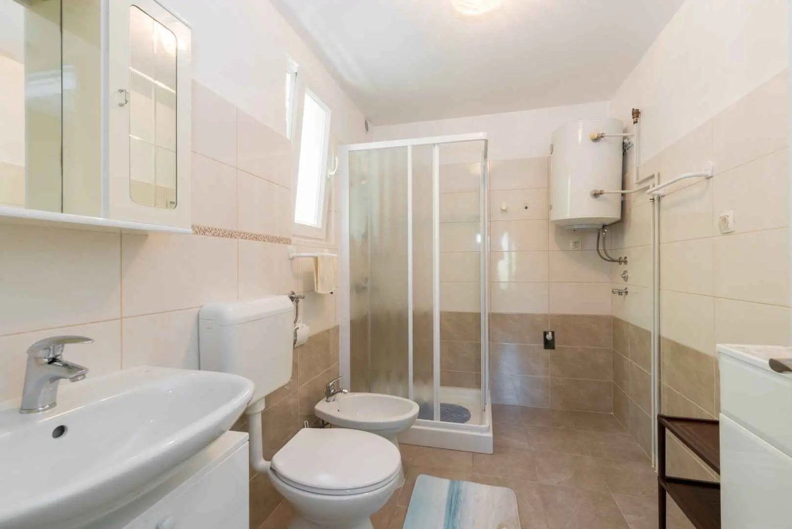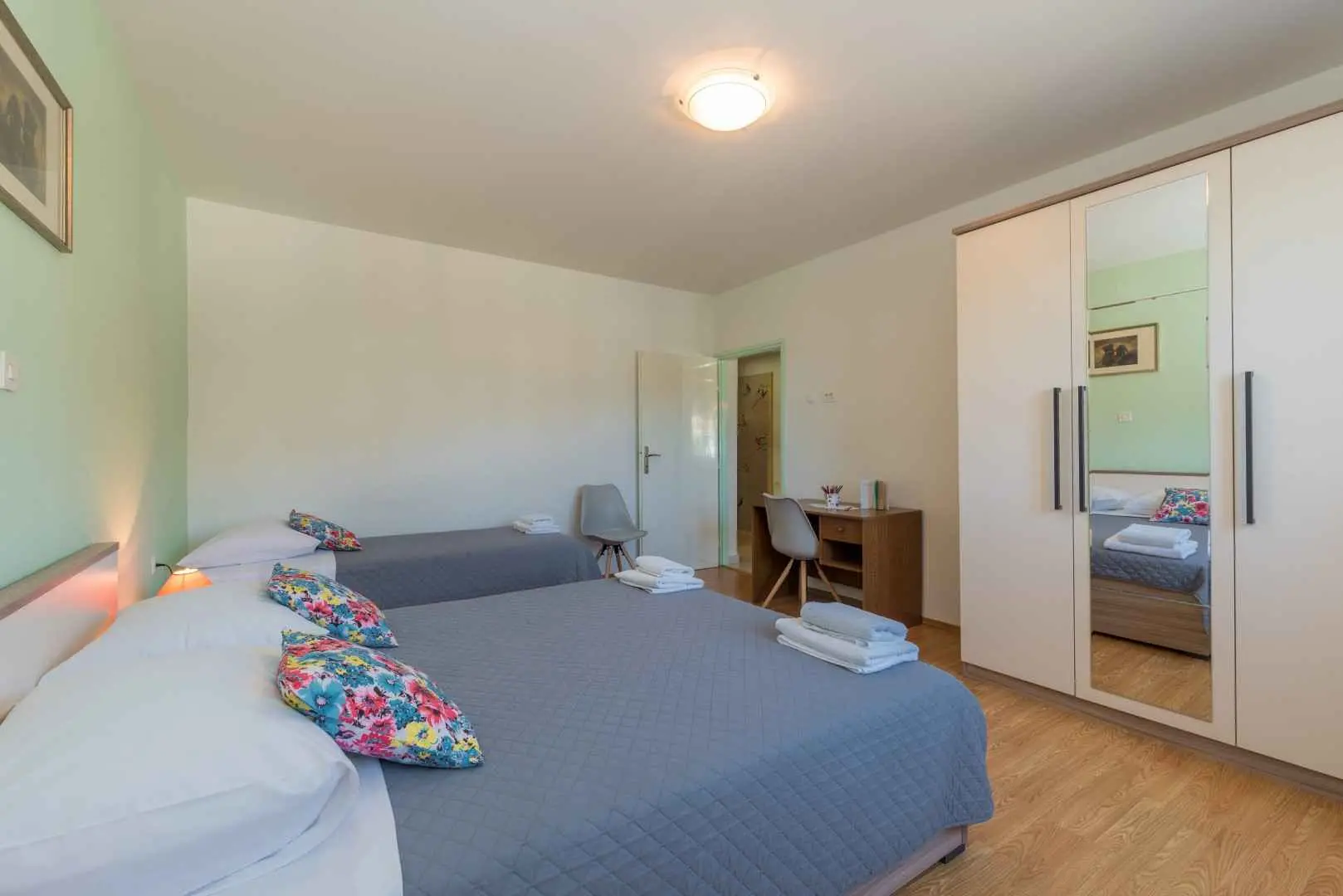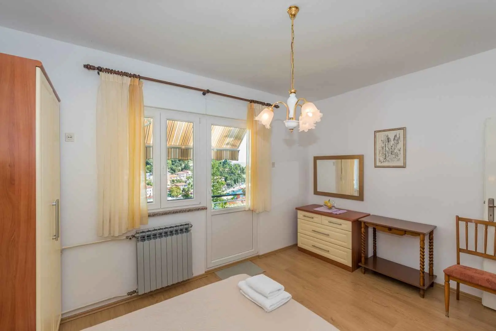 Apartmán Nevenko má dvě ložnice pro 4 osoby. Kuchyň je dobře vybavená, stejně jako koupelna se sprchovým koutem. Z malého balkonu je nádherný výhled na přístav a lodě. V přední části je malá terasa se zahradním nábytkem k posezení či stolování. V bytě je wifi internet. Klimatizace je zpoplatněna € 7,00 za den, pokud ji chcete používat. Vzdálenost do centra je cca 150 m a na první pláž cca 200 m. Parkování je na veřejném parkovišti a je zdarma.