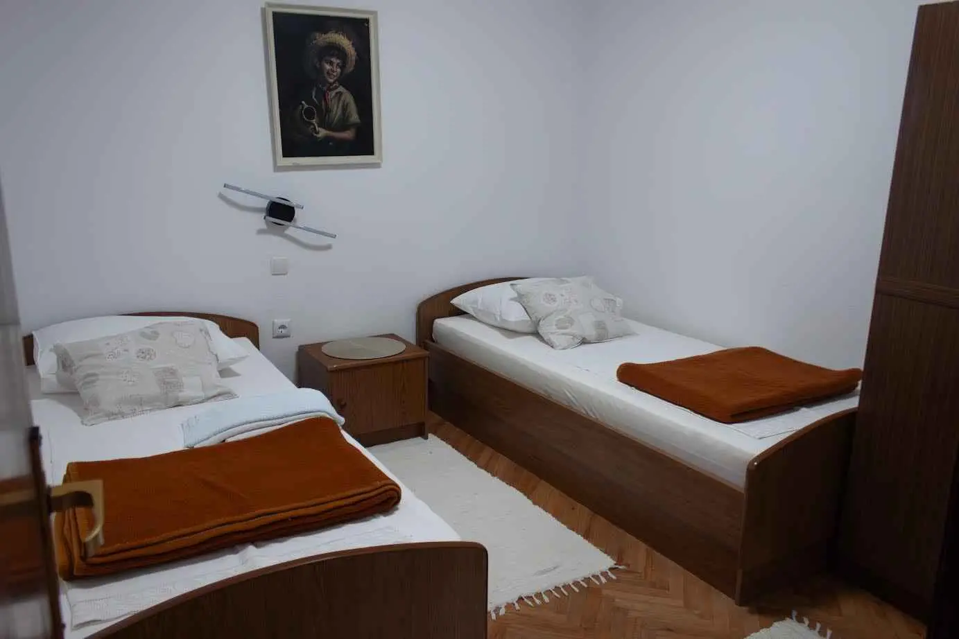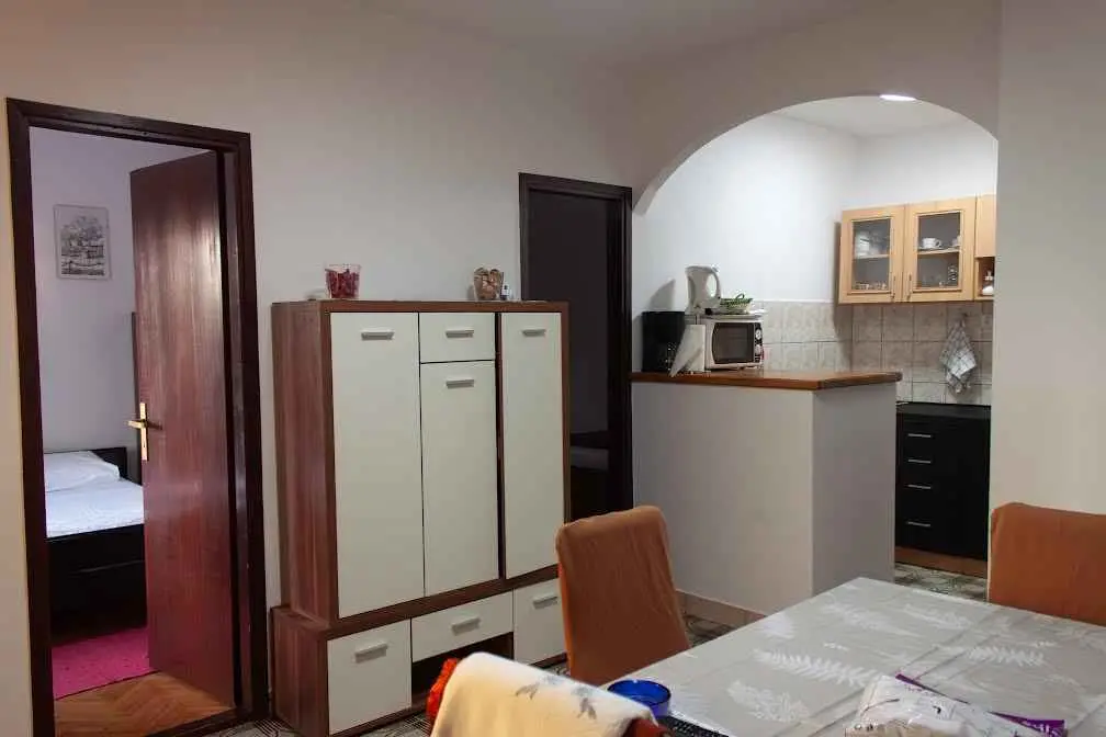 Apartmán se nachází v přízemí rodinného domu v bezprostřední blízkosti moře a centra města. Skládá se ze dvou ložnic, koupelny, kuchyně a jídelny. K dispozici je TV, WiFi, klimatizace, mikrovlnná trouba... Parkování před apartmánem.