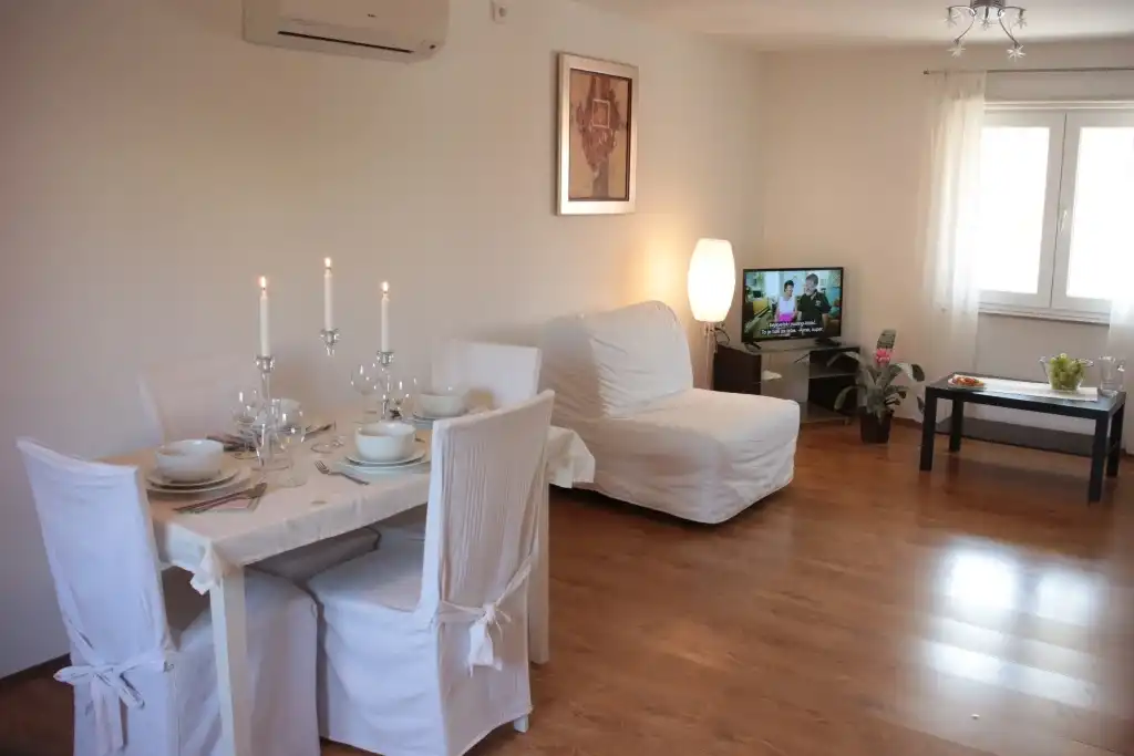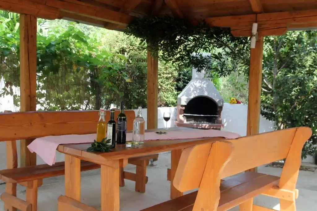 Dům je vzdálený od silnice, nabízí klid a soukromí. Má pouze dva apartmány/4+2, ideální pro větší rodinu nebo skupinu přátel. Velký altán a gril poskytují ideální místo pro posezení. Parkování je zajištěno cca 400 m od apartmánu na placeném parkovišti (dáváme kartu na jedno auto zdarma).