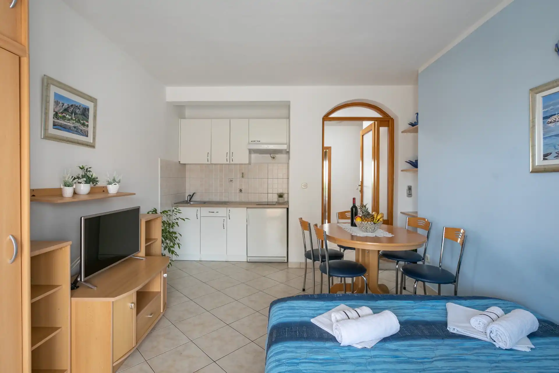 Barba apartmány jsou umístěny v rodinném domě v malé a krásných turistických míst Tučepi, 50 m od moře v blízkosti obchodů, sportovišť, hřišť a restaurací. Tyto apartmány jsou pohodlné a nově zařízené a mají oddělenou ložnici, obývací pokoj, kuchyň, balkon a použití WC. Můžete použít satelitní TV, klimatizace, Wi-Fi a parkování před budovou. Také nabízíme pokoje s využitím kuchyní, klimatizací, Wi-Fi, TV, balkon, terasa a parkoviště. Přijít a strávit svou dovolenou v příjemné atmosféře.