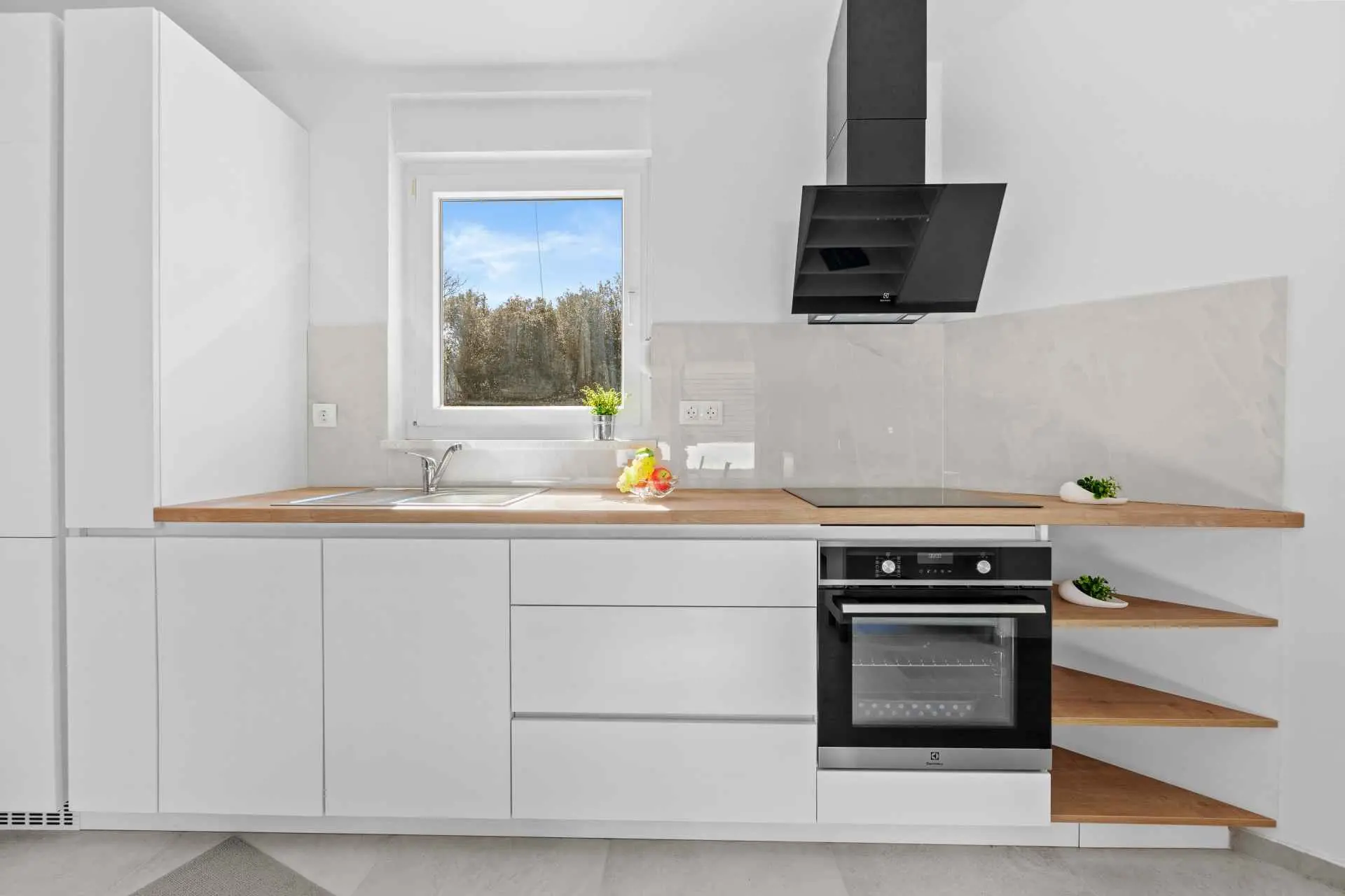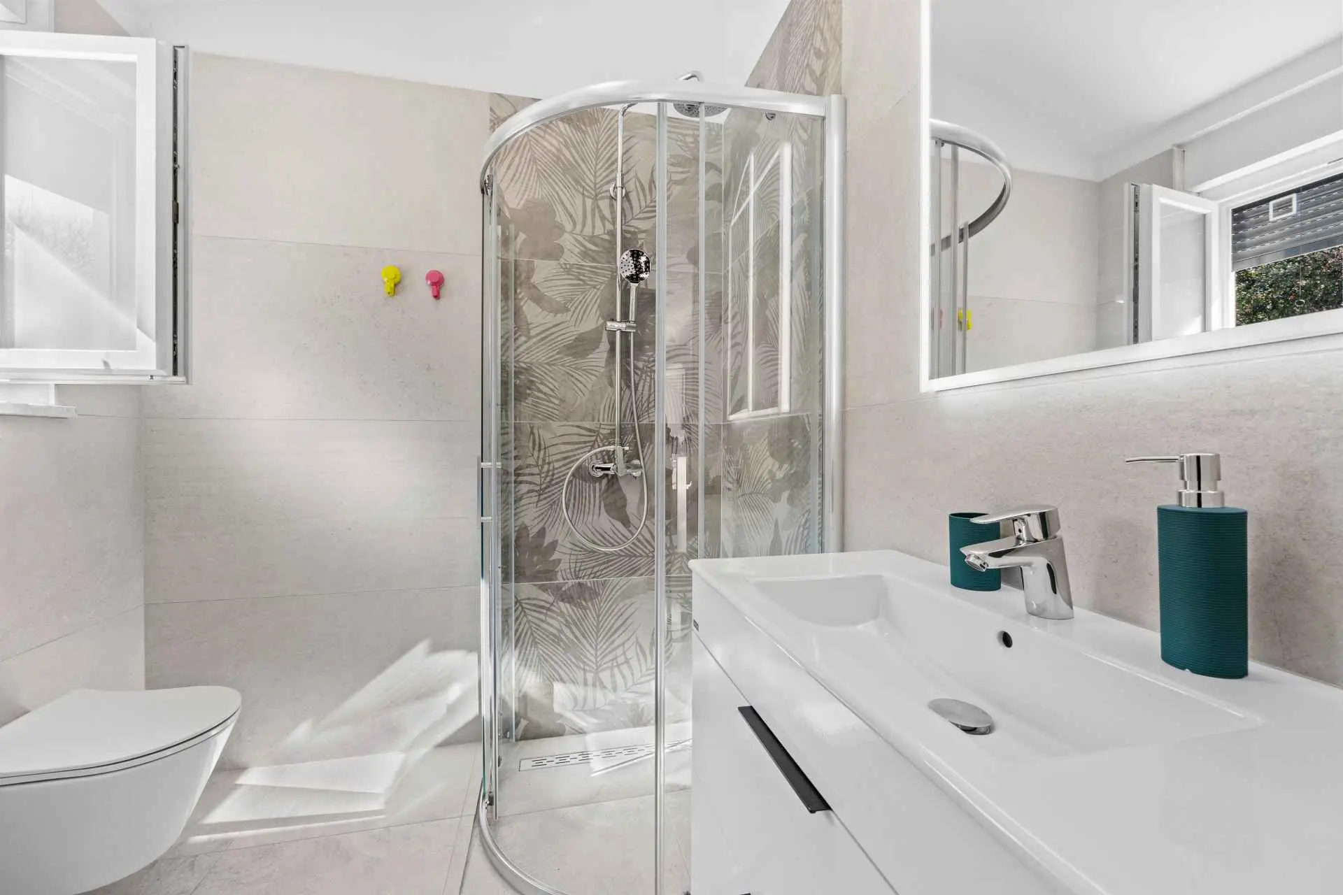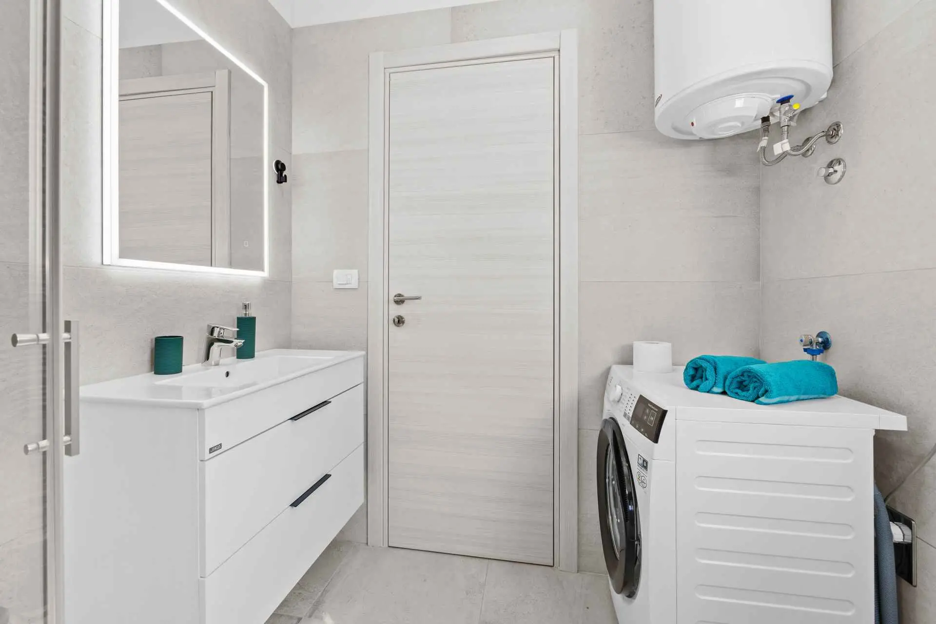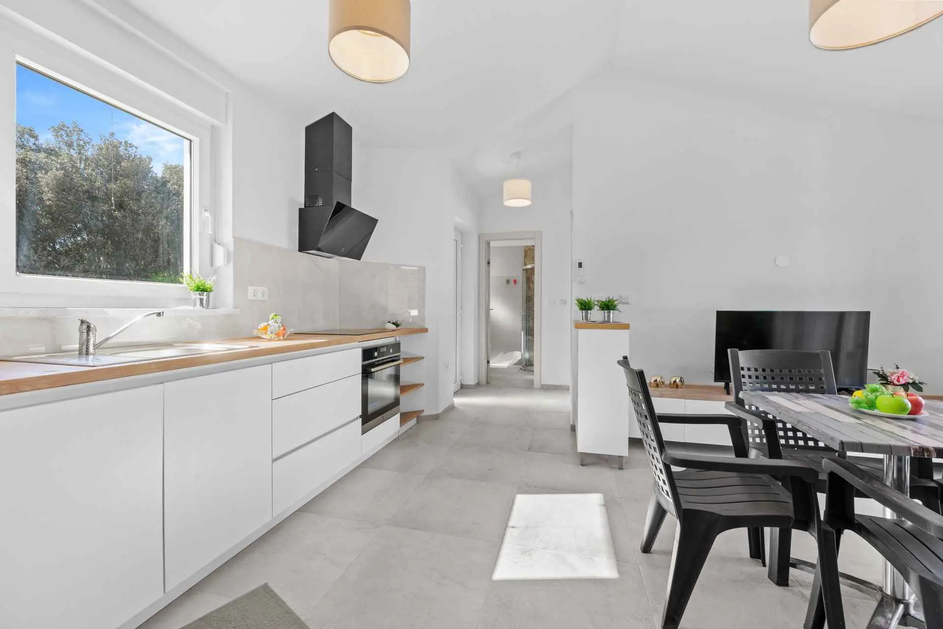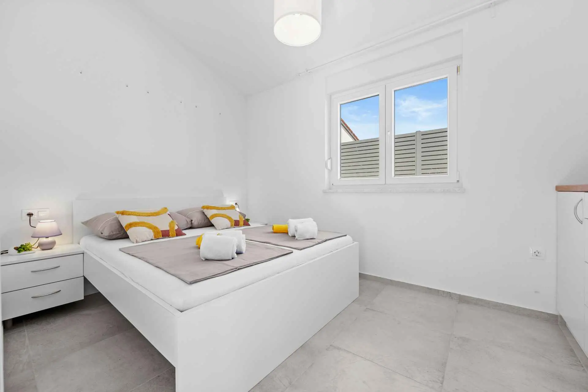 Entdecken Sie ein charmantes Sommerdomizil in Peroj, perfekt für Paare und kleine Familien (zwei Erwachsene und zwei Kinder), die einen ruhigen Küstenurlaub suchen. Dieses kürzlich erbaute, geschmackvoll eingerichtete Apartment bietet komfortable 40 Quadratmeter Wohnfläche und eine großzügige 40 Quadratmeter große Terrasse – viel Platz zum Entspannen und Genießen im Freien. Die Unterkunft verfügt über eine gut ausgestattete amerikanische Küche mit modernen Annehmlichkeiten wie Induktionskochfeld, Backofen, Geschirrspüler, Kühlschrank, Gefrierschrank und allen notwendigen Küchenutensilien. Der Wohnbereich bietet ein bequemes Sofa (ideal für zwei Kinder), einen Esstisch und einen Flachbildfernseher und schafft so eine gemütliche Atmosphäre zum Entspannen nach einem erlebnisreichen Tag. Das Schlafzimmer ist durchdacht eingerichtet und verfügt über ein Kingsize-Bett. Das private Badezimmer mit Dusche sorgt für Komfort und Privatsphäre. Die Klimaanlage hält den Raum an warmen Sommertagen kühl, und kostenloses WLAN sorgt für Online-Verbindung. Outdoor-Fans werden das eingezäunte Gartengrundstück mit Gartenmöbeln zu schätzen wissen – ideal für Mahlzeiten im Freien oder zum Genießen der mediterranen Sonne. Das Anwesen bietet praktische Annehmlichkeiten wie einen Wäscheständer, einen Essbereich im Freien und einen eigenen Parkplatz. Nur 190 Meter von einem Felsstrand und 300 Meter von einem Supermarkt und Restaurant entfernt, bietet dieses Apartment einen idealen Ausgangspunkt für Erkundungstouren in die Umgebung. Besonders Familien werden die Lage schätzen, da lokale Sehenswürdigkeiten und Einrichtungen leicht zu erreichen sind. Haustierbesitzer freuen sich über die Möglichkeit, ein kleines Haustier (gegen Aufpreis) unterzubringen, was die Flexibilität und den Komfort des Hauses erhöht.
