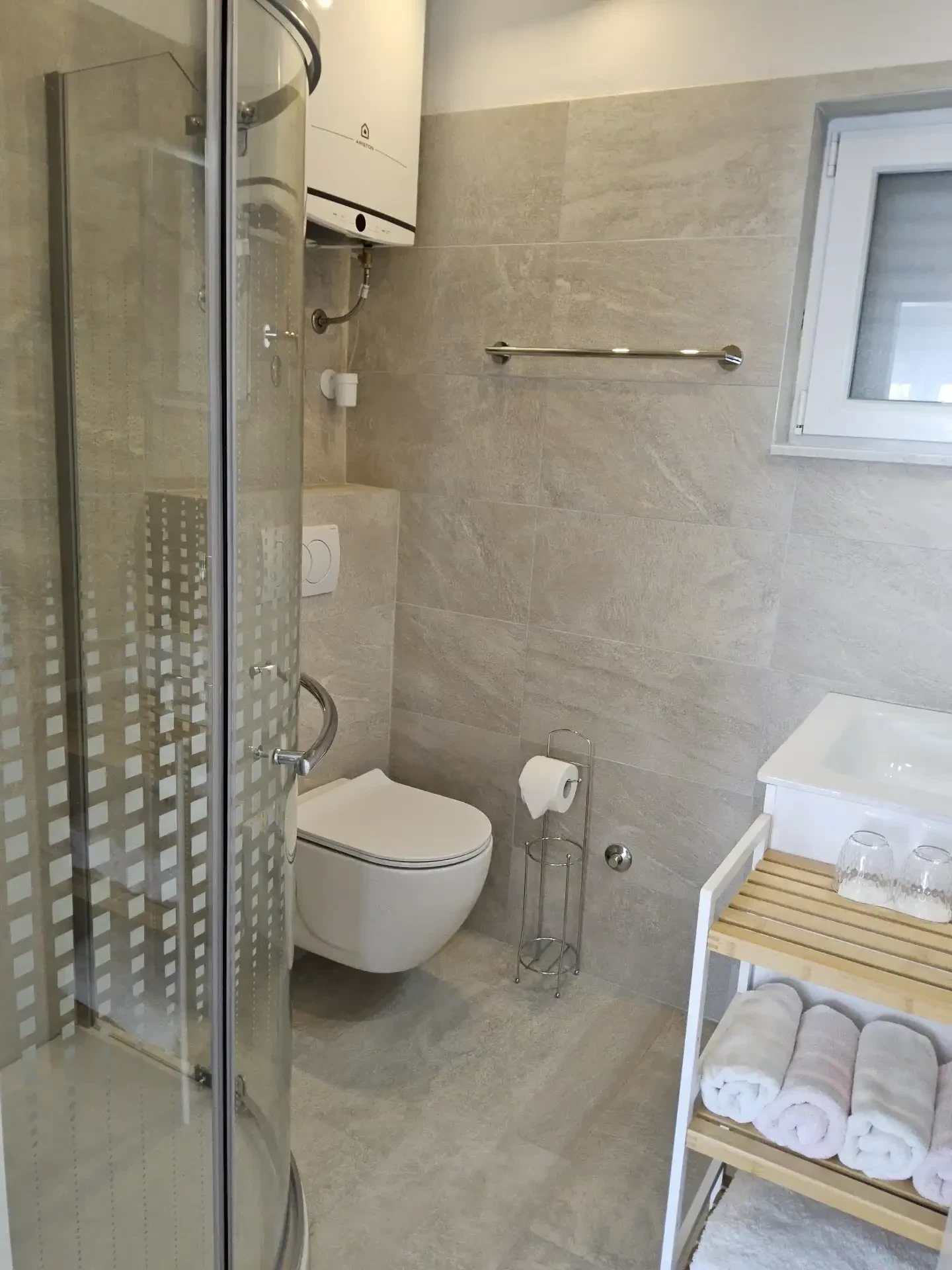 Das Ferienhaus „Adria“ mit drei Zimmern am Meer liegt in der Padrele-Straße im charmanten Städtchen Bibinje bei Zadar. Es bietet zwei Terrassen mit atemberaubendem Meerblick, Blick auf die vorgelagerten Inseln und traumhafte Sonnenuntergänge. Der Strand ist mit Liegestühlen, Sonnenschirmen und einer Außendusche mit Warmwasser ausgestattet und lädt zum ganztägigen Schwimmen und Sonnenbaden ein. Der Strandabschnitt besteht aus Beton und Kieselsteinen und verfügt über einen Bootsanleger mit Abstellmöglichkeiten. Kostenlose Parkplätze, Klimaanlage, WLAN und ein Grillplatz stehen den Gästen zur Verfügung. Das Stadtzentrum mit seinen Geschäften, Bäckereien und Restaurants ist nur 15 Gehminuten entfernt. Die historische Stadt Zadar mit ihren zahlreichen Sehenswürdigkeiten erreichen Sie in nur 15 Autominuten. Das Haus bietet Platz für bis zu vier Gäste und einen Parkplatz für ein Auto mit einer Länge von bis zu fünf Metern. In der Hauptsaison gilt ein Mindestaufenthalt von sieben Nächten.