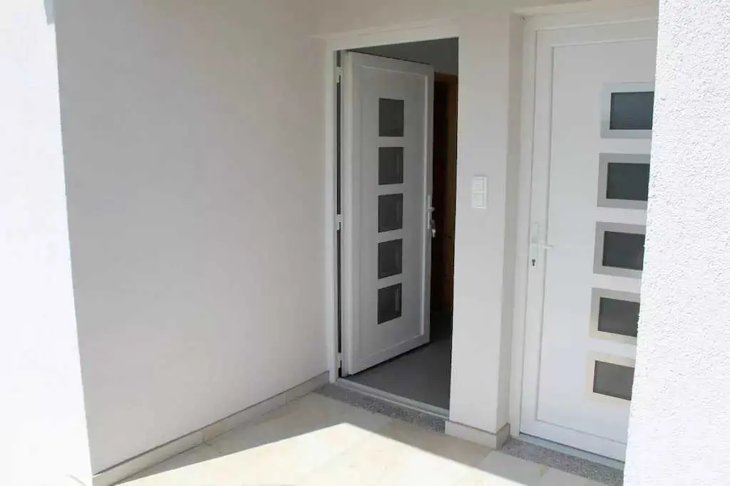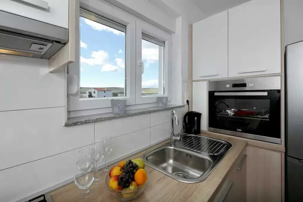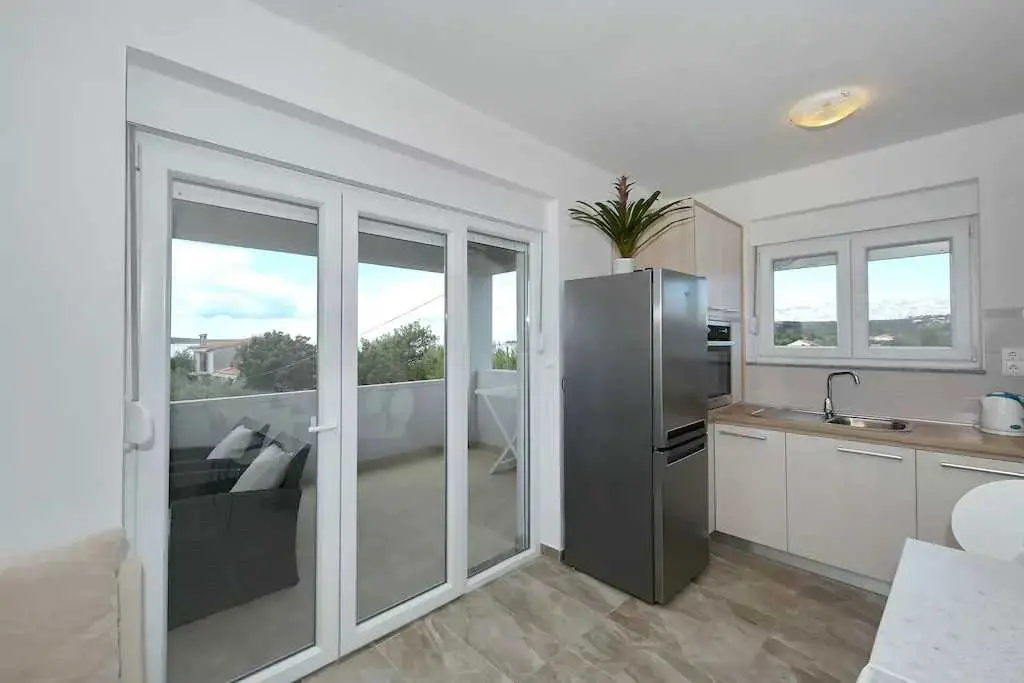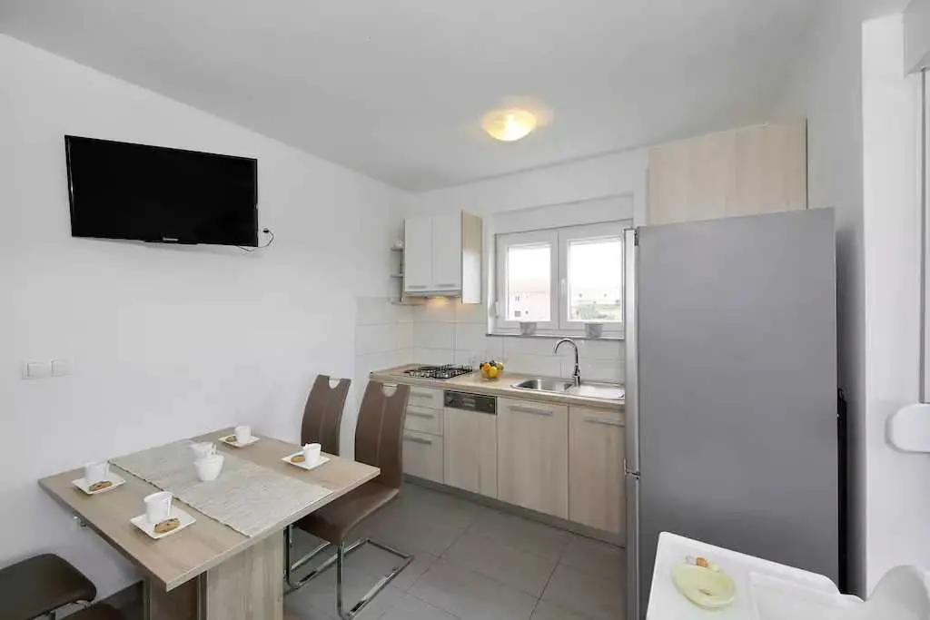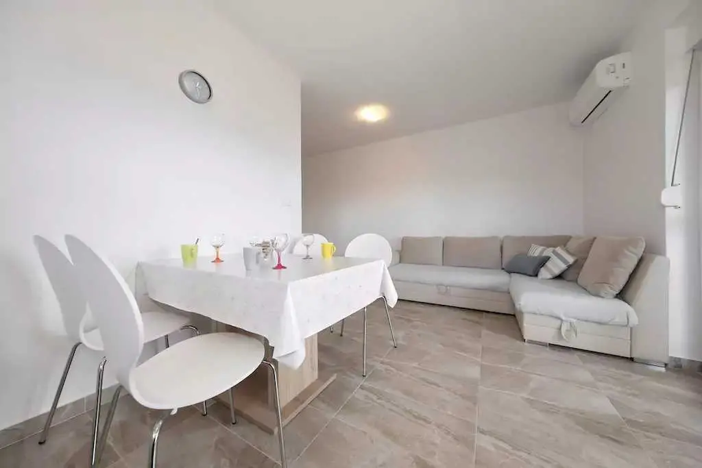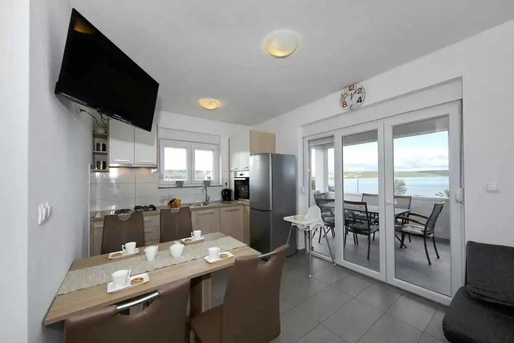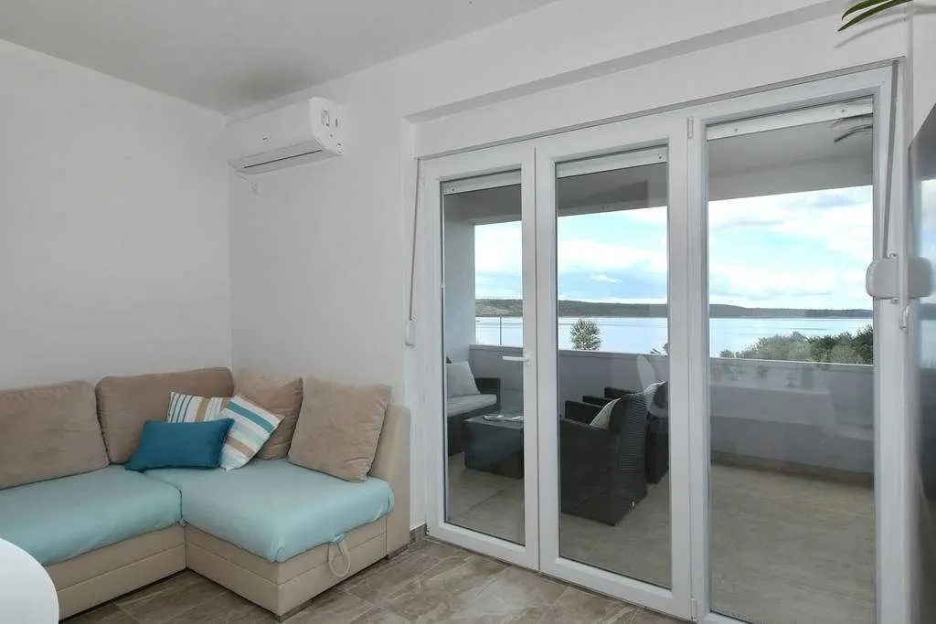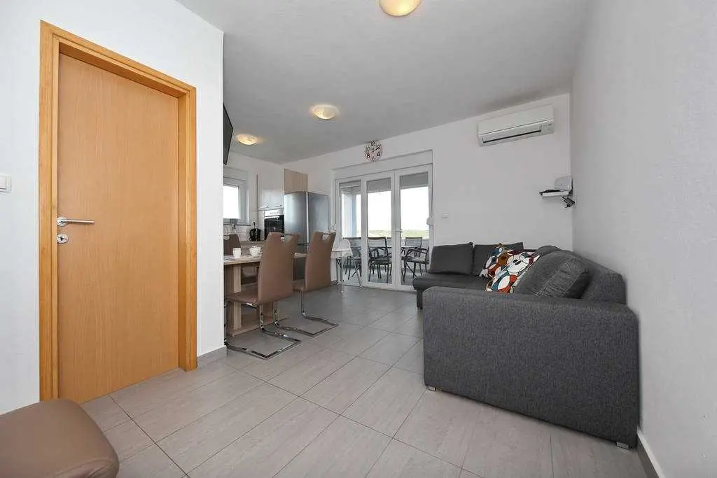 Genießen Sie einen Familienurlaub in unmittelbarer Nähe eines Sandstrandes in der ruhigen dalmatinischen Stadt Ljubač in der Region Zadar! Das Haus mit direktem Meerblick in zwei Wohnungen bietet Unterkunft für 8-10 Personen! Jede Wohneinheit hat eine Fläche von 70 m², besteht aus zwei Schlafzimmern, einer Küche und einem Wohnzimmer sowie einem Badezimmer und bietet Platz für 4-5 Personen. Die Apartments verfügen über kostenfreies WLAN und einen Flachbild-TV. Die Klimaanlage sorgt in den Sommermonaten für einen angenehmen Schlaf. Handtücher, Bettwäsche, eine Mikrowelle und ein Wasserkocher sind vorhanden. Haustiere sind nicht erlaubt. Ein Aufenthaltsraum mit Waschmaschine und kostenfreie Parkplätze gehören zum Angebot. Das nächste Restaurant ist 500 m und das Geschäft 800 m entfernt. Post, Apotheke, Arzt, größeres Tommy-Einkaufszentrum, Bibliothek und Fischmarkt befinden sich im Nachbarort Ražanac. Der Sandstrand neben dem Haus ist die perfekte Wahl für Familien mit kleinen Kindern. Preise pro Wohnung pro Nacht: 01.01. – 30.04.: 50 € 01.09. – 31.05.: 61 € 01.06. – 30.06.: 78 € 01.07. – 19.07.: € 100 20.07. – 20.08.: € 122 21.08 – 31.08.: € 100 01.09. – 30.09: 67 € 01.10. – 31.12.: 50 €