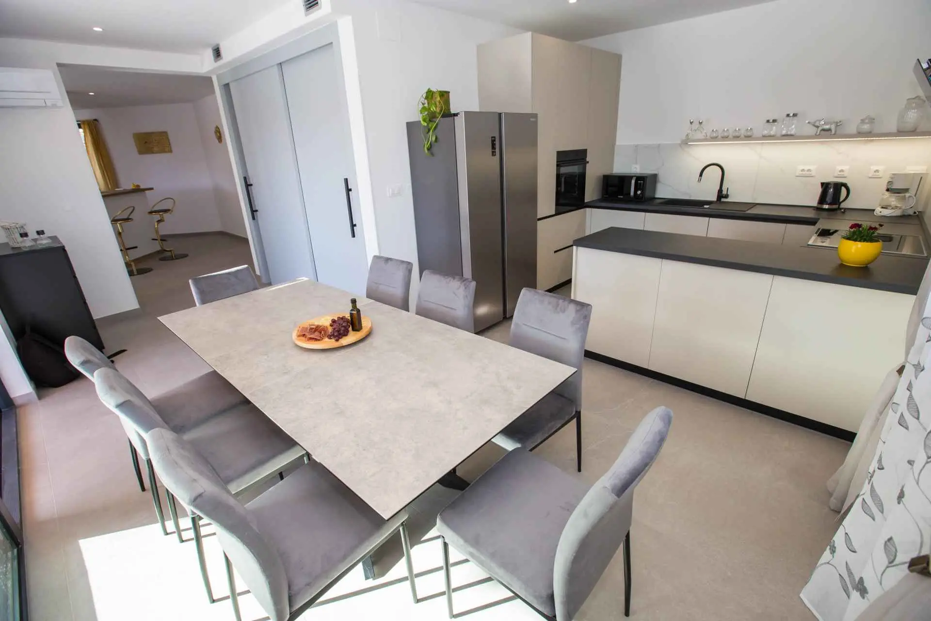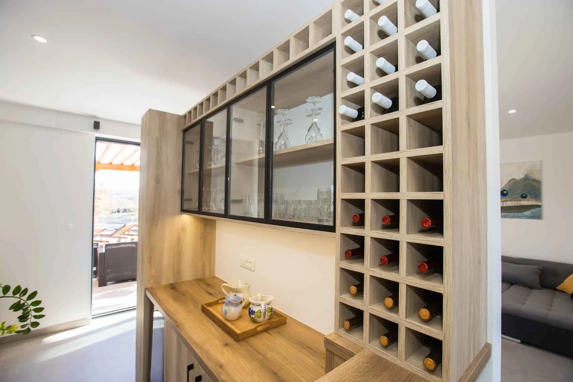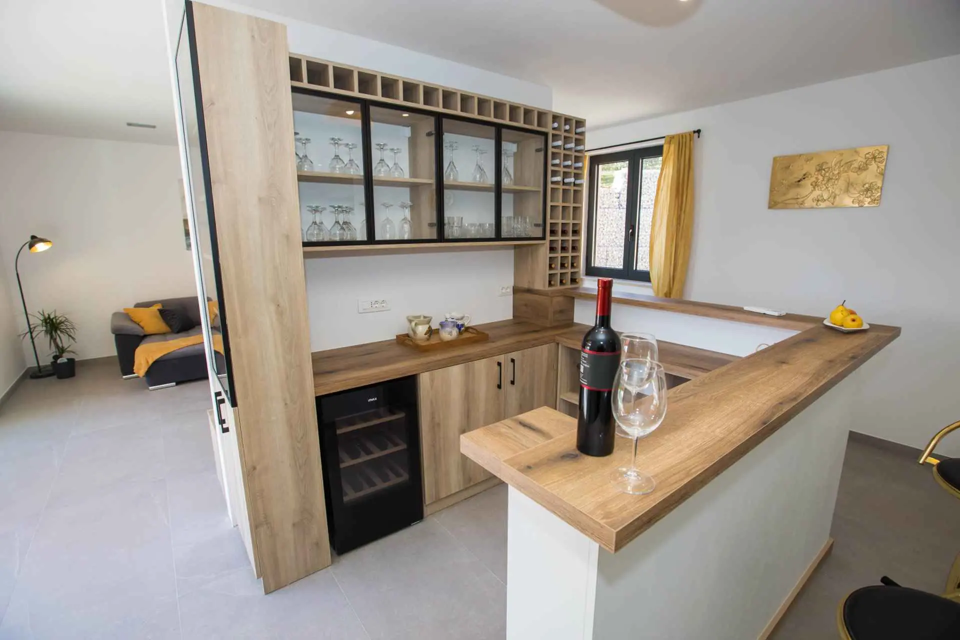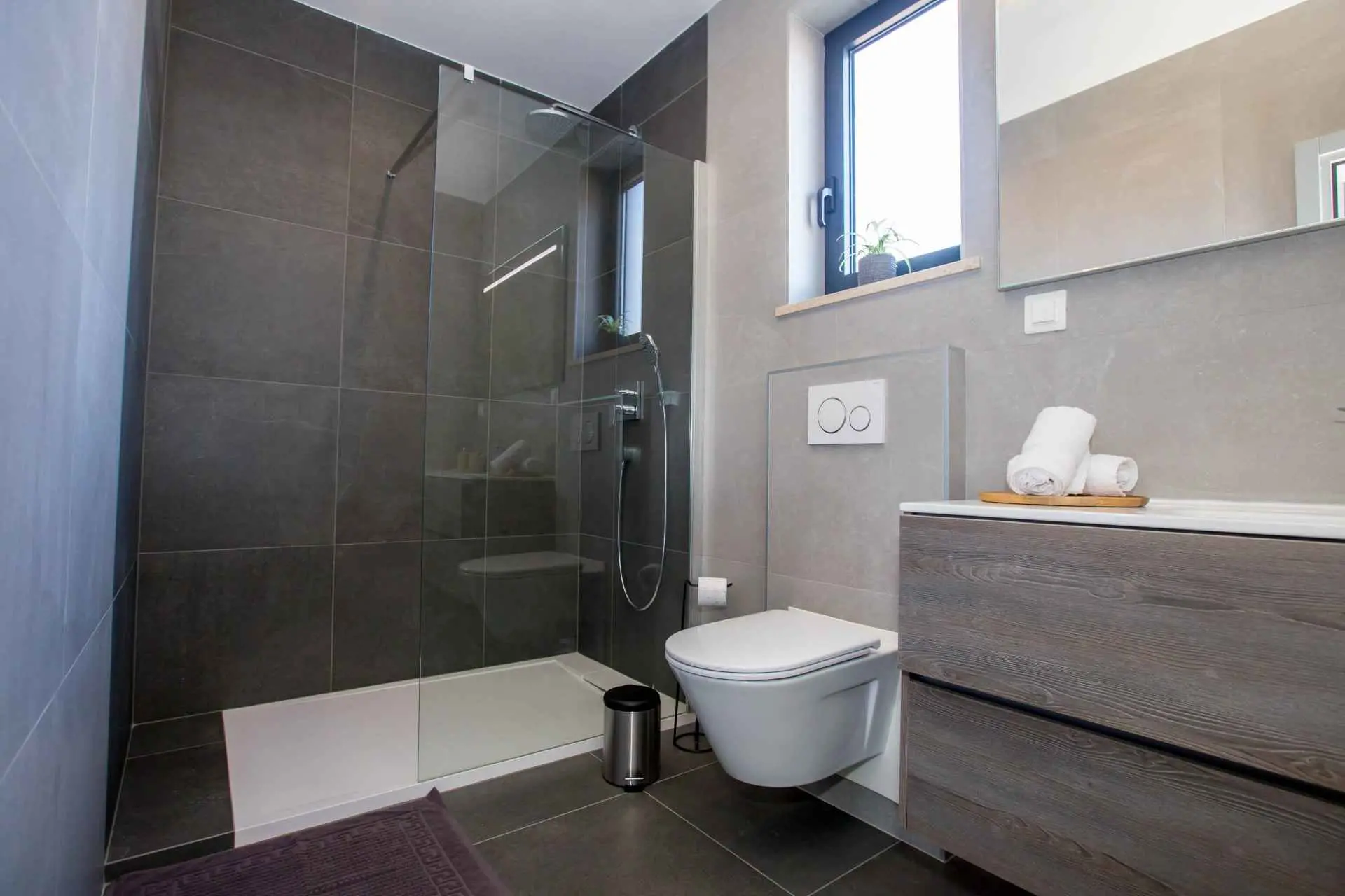 Die Villa Dominika liegt in Zentralistrien, in der Nähe des kleinen Dorfes Pahovići, unweit von Motovun. Sie ist abgeschieden, umgeben von Olivenhainen und Wäldern. Diese attraktive Villa bietet einen herrlichen Blick auf Motovun und das Gebirge Učka. Das Grundstück erstreckt sich über 1000 m², ist komplett eingezäunt und für Haustiere geeignet. Von jeder Ecke der Außenterrasse bietet sich ein unglaublicher Blick auf das umliegende Grün und den Olivenhain, der durch ein Gefühl der Ruhe und Stille ergänzt wird – genau das, was Sie für einen perfekten Urlaub brauchen. Die Umgebung des Hauses bietet Möglichkeiten zum Wandern, Radfahren entlang des berühmten Touristenpfades Parenzana sowie zum Pilze- und Spargelsammeln. Die 250 m² große Wohnfläche umfasst ein geräumiges Wohnzimmer, das in einen Entspannungsbereich und eine Bar mit Weinen lokaler Winzer unterteilt ist. Beide Bereiche des Wohnzimmers öffnen sich zu einer Terrasse, einem Sonnendeck und einem 32 m² großen Infinity-Pool mit herrlichem Blick in die Natur. Der Essbereich, der mit der Küche verbunden ist, führt zu einer großen überdachten Terrasse mit Sitzecke, Essbereich und Außengrill – ideal für geselliges Beisammensein im Freien. Im ersten Stock befinden sich drei Schlafzimmer, jedes mit eigenem Bad für absolute Privatsphäre. Zwei Zimmer sind mit Doppelbetten ausgestattet, das dritte mit zwei Einzelbetten. Eines der Schlafzimmer verfügt über eine Terrasse mit herrlichem Blick auf Motovun und das Učka-Gebirge.