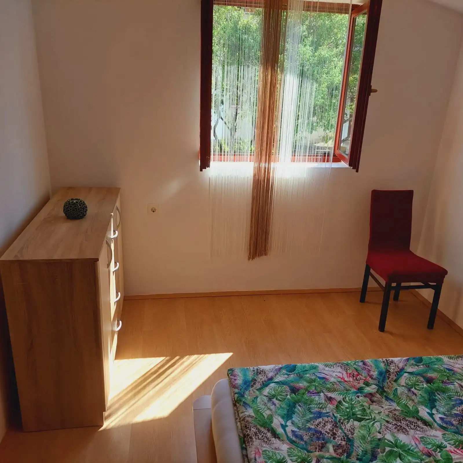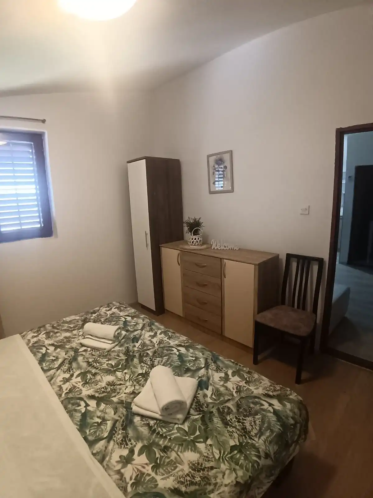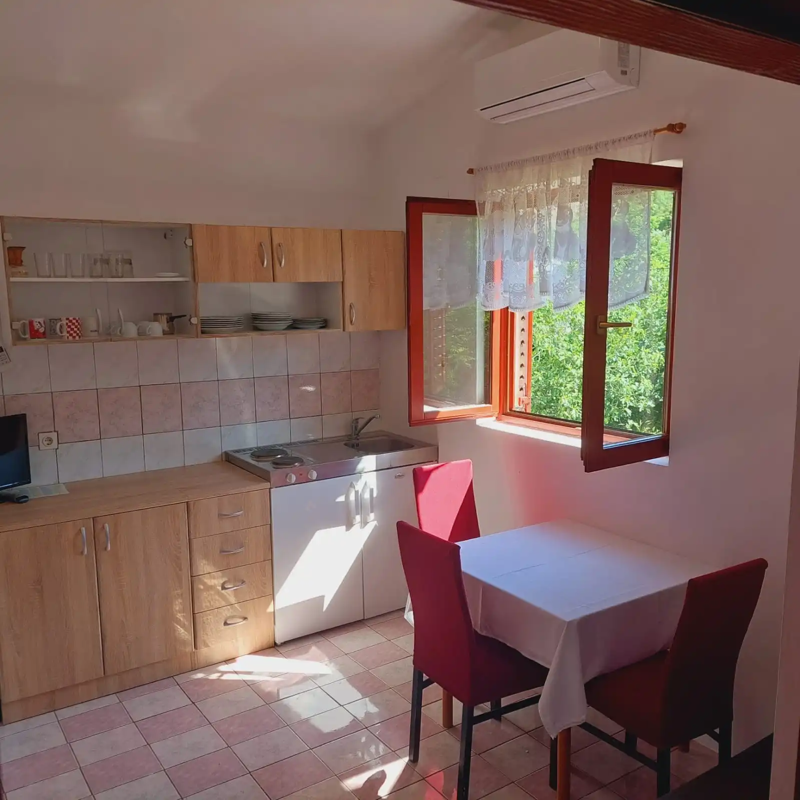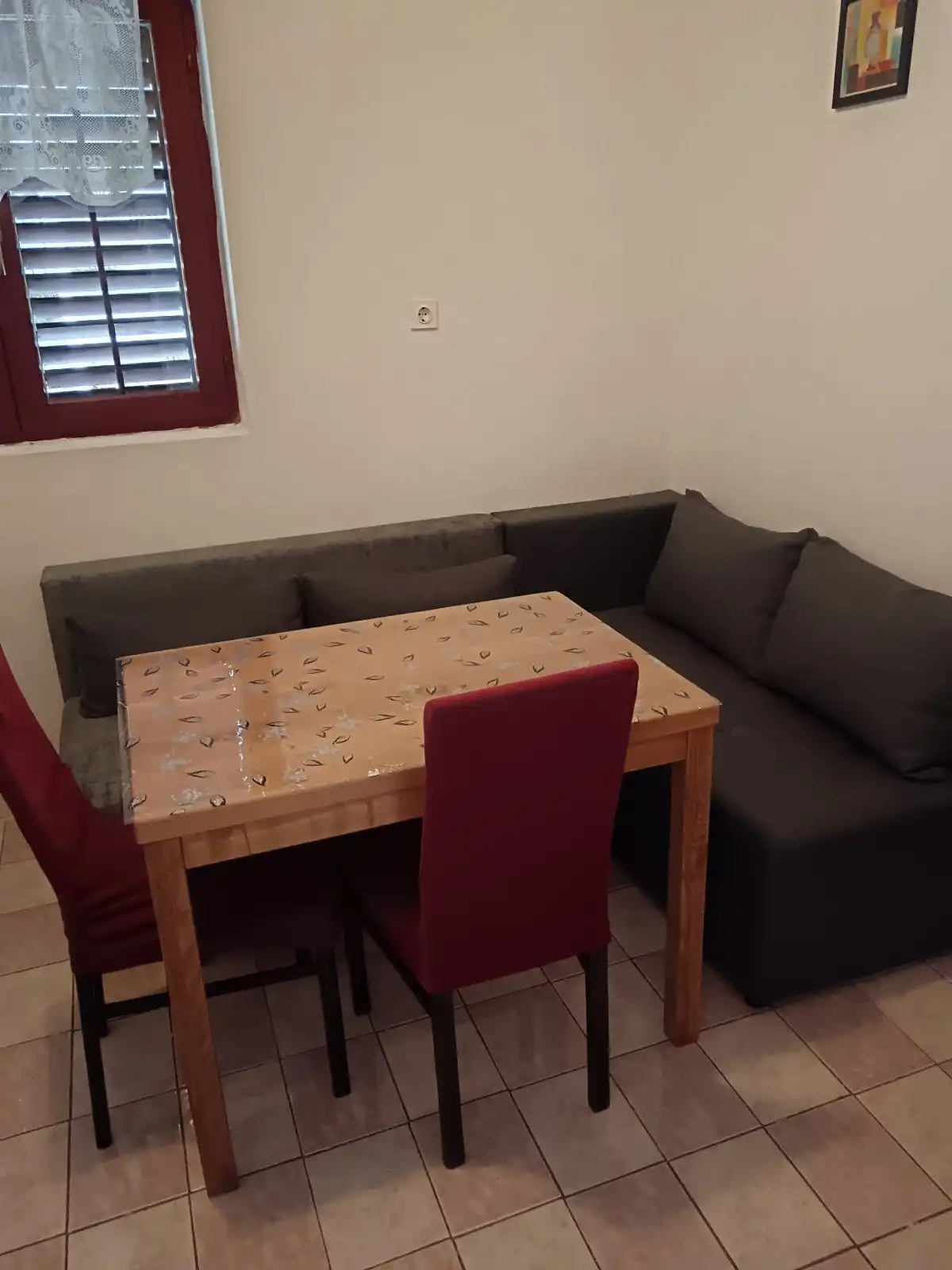 Apartments Tisno – Ein-Zimmer-Apartment (links): Dieses gemütliche Ein-Zimmer-Apartment in Tisno bietet bequem Platz für 2 Erwachsene und 2 Kinder. Es verfügt über eine Küchenzeile mit Herd, Kühlschrank, Gefrierschrank, Wasserkocher und allem notwendigen Geschirr und Besteck. Der Wohnbereich umfasst ein Wohnzimmer mit Flachbildfernseher, bequemer Doppelschlafcouch und Esstisch. Das Schlafzimmer ist mit einem Queensize-Bett für eine erholsame Nacht ausgestattet. Das Badezimmer verfügt über eine Dusche. Apartments Tisno – Ein-Zimmer-Apartment (rechts): Willkommen in unserem Ein-Zimmer-Apartment in Tisno für bis zu 5 Gäste (maximal 2 Erwachsene und 3 Kinder). Das Apartment bietet Meerblick. Im Wohnzimmer befindet sich eine Doppelschlafcouch mit Flachbildfernseher, im Schlafzimmer ein Kingsize-Bett. Die Küchenzeile ist mit Esstisch, Herd, Mikrowelle, Kühlschrank, Gefrierschrank, Wasserkocher und allem benötigten Geschirr und Besteck ausgestattet. Das private Badezimmer verfügt über eine Dusche. WLAN sorgt für beste Konnektivität und eine Klimaanlage für angenehme Temperaturen in den wärmeren Monaten. Bitte beachten Sie, dass Veranstaltungen nicht gestattet sind, Haustiere nicht erlaubt sind und das Rauchen verboten ist. Für die Erkundung der wunderschönen Umgebung empfehlen wir ein Auto. Kinder sind herzlich willkommen. Bügeleisen und Bügelbrett stehen auf Anfrage kostenlos zur Verfügung. Balkon, Außendusche und Grillplatz werden von beiden Wohneinheiten gemeinsam genutzt. Die Unterkunft befindet sich in einer familienfreundlichen, ländlichen Gegend, nur 5 km vom Supermarkt Djelo und dem Restaurant Gina, 6 km vom Strand Vortex Beach und der Vortex Beach Bar sowie 8 km vom Busbahnhof Pirovac entfernt. Abenteuerlustige erreichen den Nationalpark Krka und den Vrana-See nach 32 km und den Wasserpark Dalmaland nach 26 km. Das nächste Krankenhaus ist 24 km entfernt und der Flughafen Zadar ist ca. 64 km von Ihrer Unterkunft entfernt.