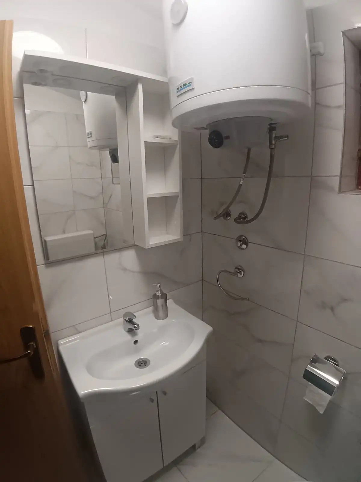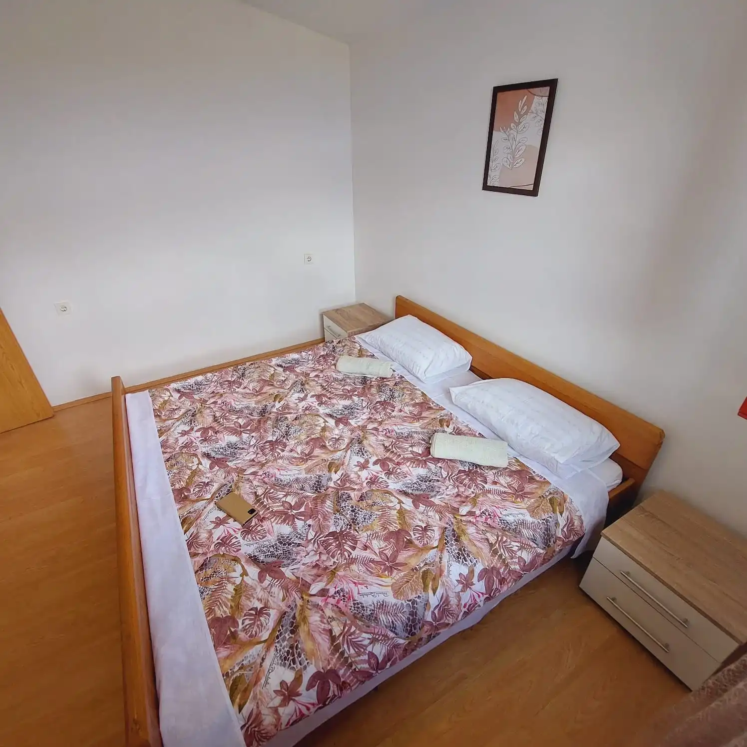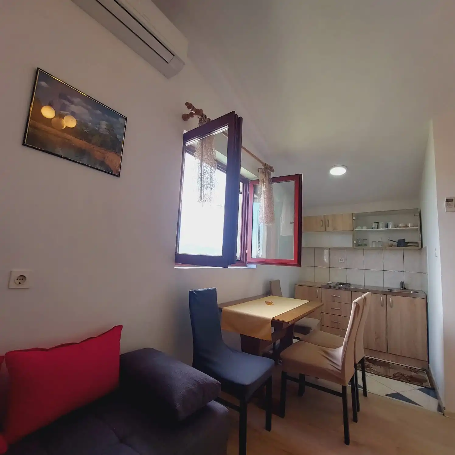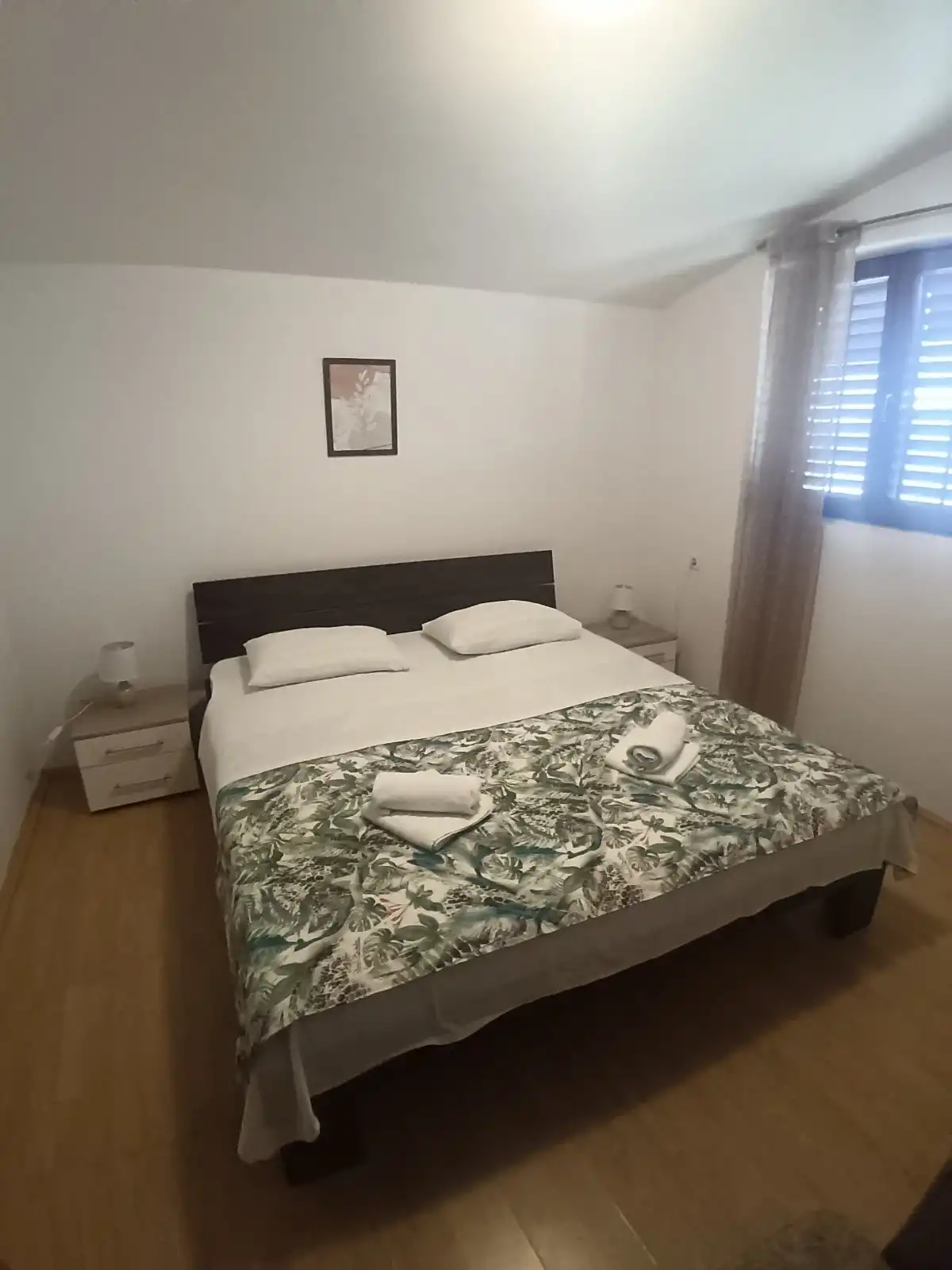 Apartments Tisno – Ein-Zimmer-Apartment (links): Dieses gemütliche Ein-Zimmer-Apartment in Tisno bietet bequem Platz für 2 Erwachsene und 2 Kinder. Es verfügt über eine Küchenzeile mit Herd, Kühlschrank, Gefrierschrank, Wasserkocher und allem notwendigen Geschirr und Besteck. Der Wohnbereich umfasst ein Wohnzimmer mit Flachbildfernseher, bequemer Doppelschlafcouch und Esstisch. Das Schlafzimmer ist mit einem Queensize-Bett für eine erholsame Nacht ausgestattet. Das Badezimmer verfügt über eine Dusche. Apartments Tisno – Ein-Zimmer-Apartment (rechts): Willkommen in unserem Ein-Zimmer-Apartment in Tisno für bis zu 5 Gäste (maximal 2 Erwachsene und 3 Kinder). Das Apartment bietet Meerblick. Im Wohnzimmer befindet sich eine Doppelschlafcouch mit Flachbildfernseher, im Schlafzimmer ein Kingsize-Bett. Die Küchenzeile ist mit Esstisch, Herd, Mikrowelle, Kühlschrank, Gefrierschrank, Wasserkocher und allem benötigten Geschirr und Besteck ausgestattet. Das private Badezimmer verfügt über eine Dusche. WLAN sorgt für beste Konnektivität und eine Klimaanlage für angenehme Temperaturen in den wärmeren Monaten. Bitte beachten Sie, dass Veranstaltungen nicht gestattet sind, Haustiere nicht erlaubt sind und das Rauchen verboten ist. Für die Erkundung der wunderschönen Umgebung empfehlen wir ein Auto. Kinder sind herzlich willkommen. Bügeleisen und Bügelbrett stehen auf Anfrage kostenlos zur Verfügung. Balkon, Außendusche und Grillplatz werden von beiden Wohneinheiten gemeinsam genutzt. Die Unterkunft befindet sich in einer familienfreundlichen, ländlichen Gegend, nur 5 km vom Supermarkt Djelo und dem Restaurant Gina, 6 km vom Strand Vortex Beach und der Vortex Beach Bar sowie 8 km vom Busbahnhof Pirovac entfernt. Abenteuerlustige erreichen den Nationalpark Krka und den Vrana-See nach 32 km und den Wasserpark Dalmaland nach 26 km. Das nächste Krankenhaus ist 24 km entfernt und der Flughafen Zadar ist ca. 64 km von Ihrer Unterkunft entfernt.