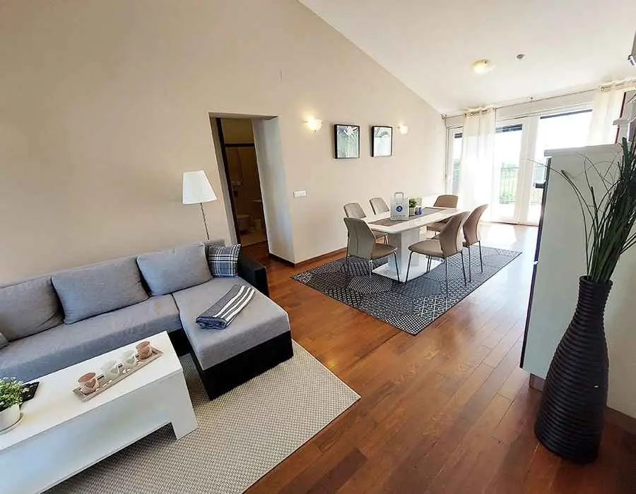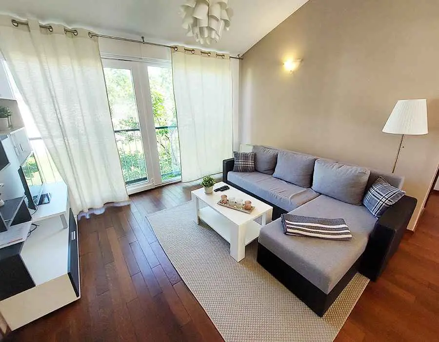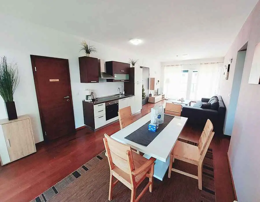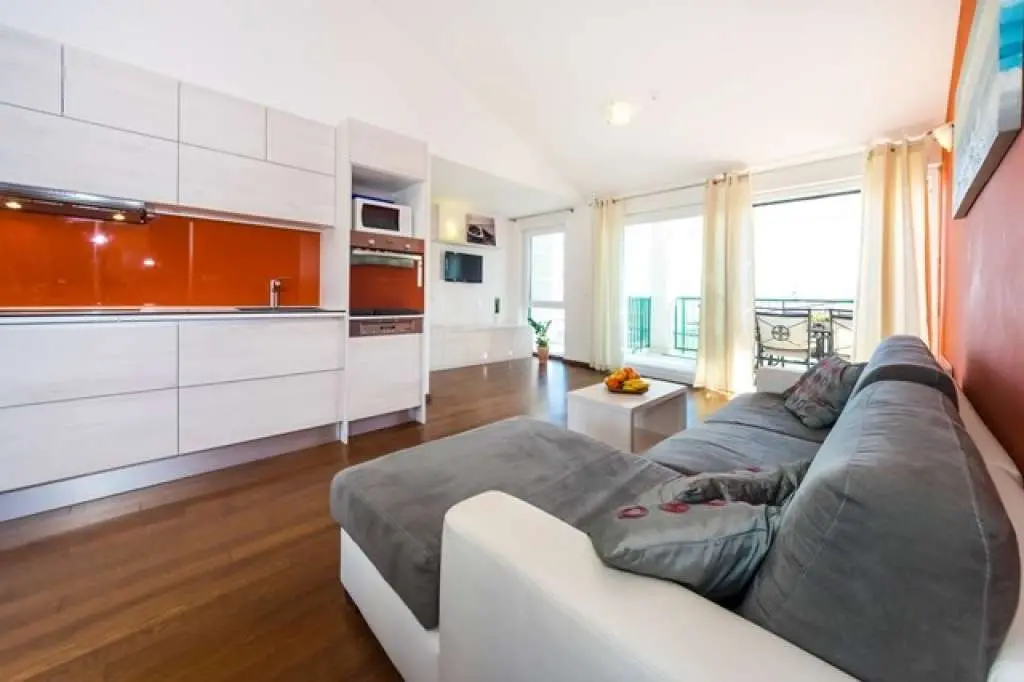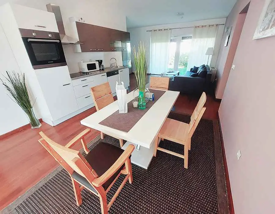 Komplett, modern und neu eingerichtete Ferienwohnungen. Die Wohnungen verfügen über Meerblick und auf dem Sandstrand. Die Wohnungen hat Einbauschränke, moderne große Küche mit kompletter Geschirr, Backofen und Geschirrspüler, Badezimmer mit Dusche, WC, Waschbecken und Waschmaschine, Kühlschrank mit Gefrierfach, großen Tisch im Esszimmer mit Stühlen, Sitzecke im Wohnzimmer mit TV und Satellit, die eine große Terrasse. Zwei Schlafzimmer mit Zugang zur Terrasse. Auf der Terrasse gibt es einen großen Tisch mit sechs Stühlen und den ganzen Tag und Nacht Sie die schöne Aussicht auf das Meer genießen können.