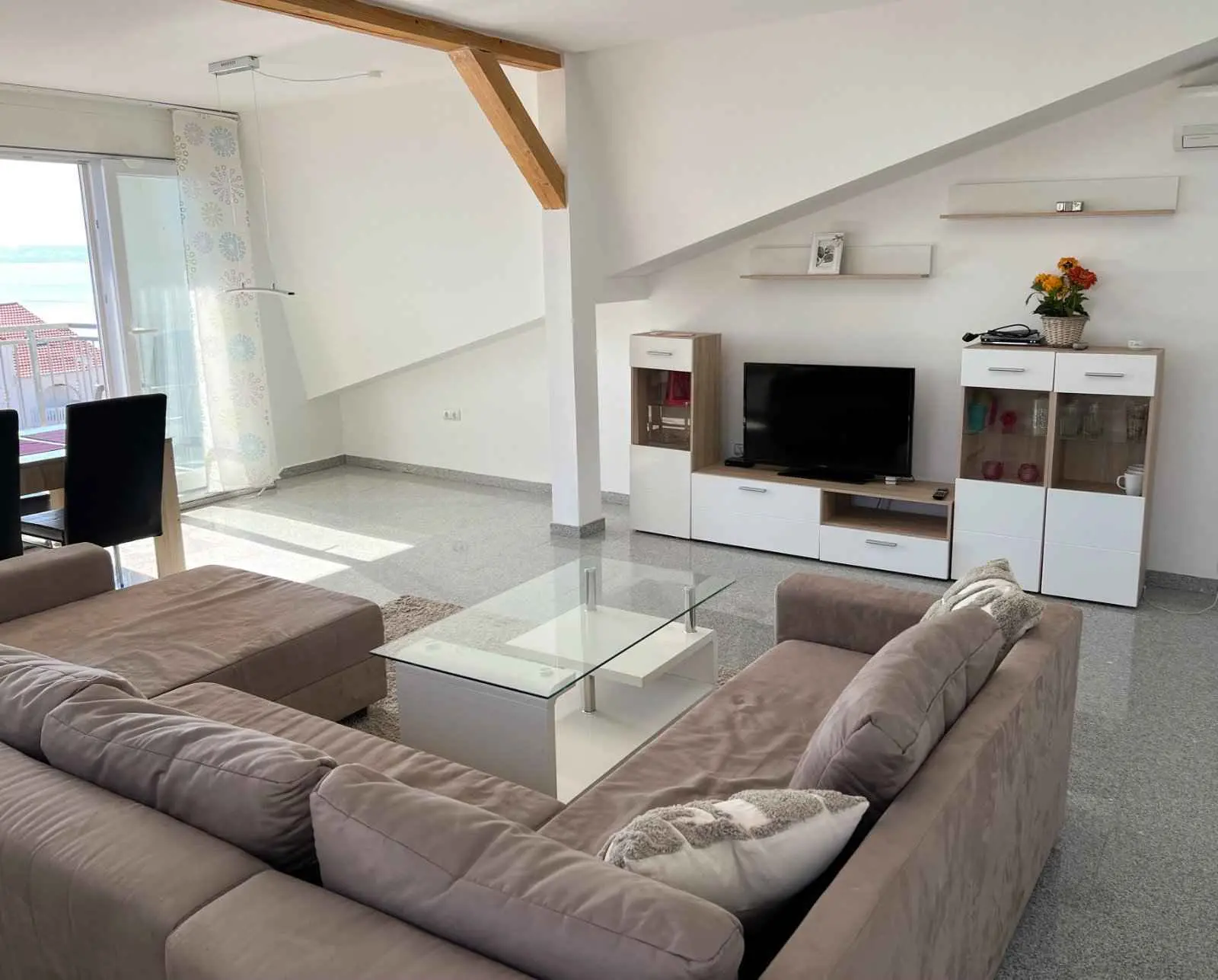 Ein-Zimmer-Apartment VAL mit Panoramablick auf das Meer, nur 300 m vom Strand und der Promenade entfernt. Das Apartment VAL befindet sich im Dachgeschoss eines Einfamilienhauses. Klimaanlage. Parken auf der Straße vor dem Haus. Haustiere erlaubt. WLAN und TV. Rauchen ist im Apartment nicht gestattet. Das 50 m² große Apartment mit 2 Balkonen, einem Schlafzimmer, Badezimmer, Küche, Essbereich und Wohnzimmer bietet Platz für maximal 4 Personen. Das Schlafzimmer hat ein Doppelbett und das Wohnzimmer ein Eckschlafsofa für zwei Personen. Die Küche ist komplett mit Utensilien zum Kochen, Servieren und Essen ausgestattet. Eine Waschmaschine ist vorhanden. Bettwäsche und Handtücher sind im Angebot enthalten. In einem der schönsten Teile von Novi Vinodolski befindet sich das Apartment Elena. 200 m vom Strand und ebenso weit vom Restaurant und der Promenade entfernt. Das 41 m² große Apartment mit Terrasse befindet sich im Erdgeschoss eines Einfamilienhauses. Obwohl es im Erdgeschoss liegt, bietet es einen teilweisen Meerblick. Parkplätze stehen im Hof des Hauses zur Verfügung. Klimaanlage, WLAN und TV. Rauchen ist in der Wohnung nicht gestattet. Es gibt ein Schlafzimmer mit Doppelbett, ein Badezimmer, eine Küche mit Essbereich und Schlafsofa sowie eine Terrasse für maximal 4 Personen. Die Küche ist komplett ausgestattet mit Koch-, Servier- und Essgeschirr. Es gibt eine Waschmaschine und einen Geschirrspüler. Bettwäsche und Handtücher sind im Preis inbegriffen.
