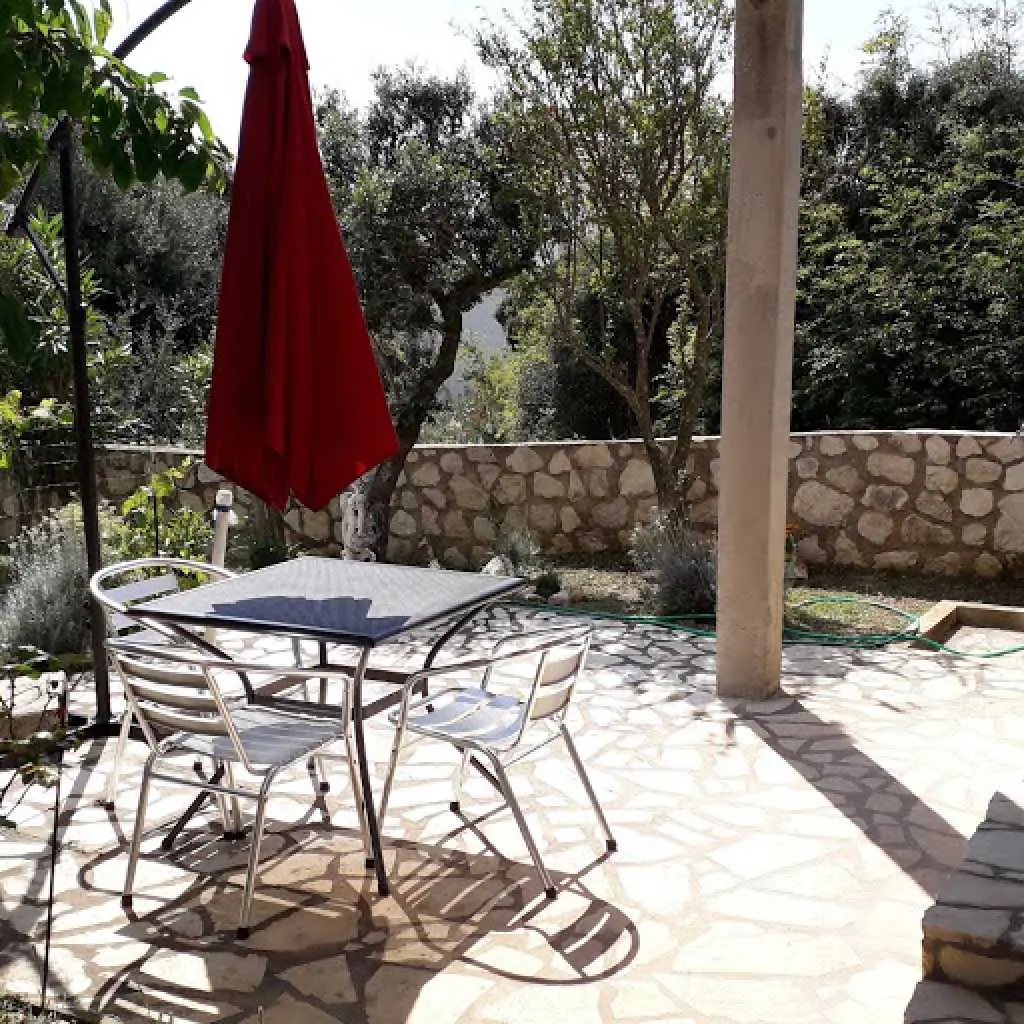 Bungalow in Potocnica, 9 km von Novalja, mit zwei Apartment / Studio, in allen 3 Betten, Sat-TV, Klimaanlage, Terrasse, mediterraner Garten, Ruhe und Einsamkeit