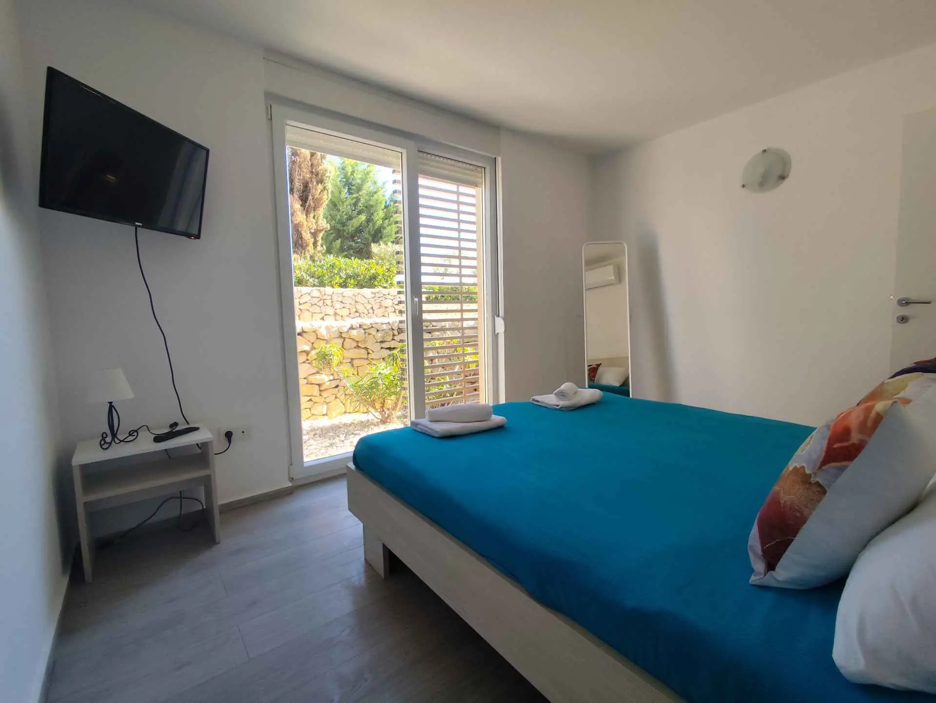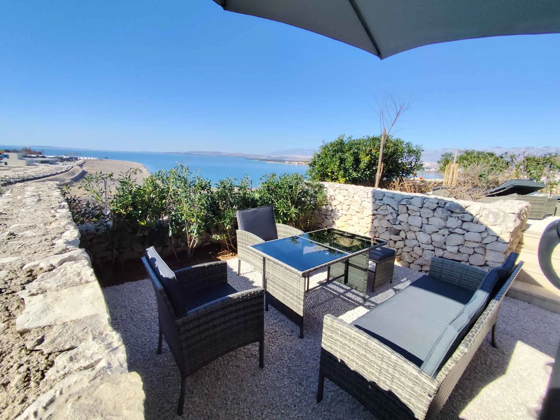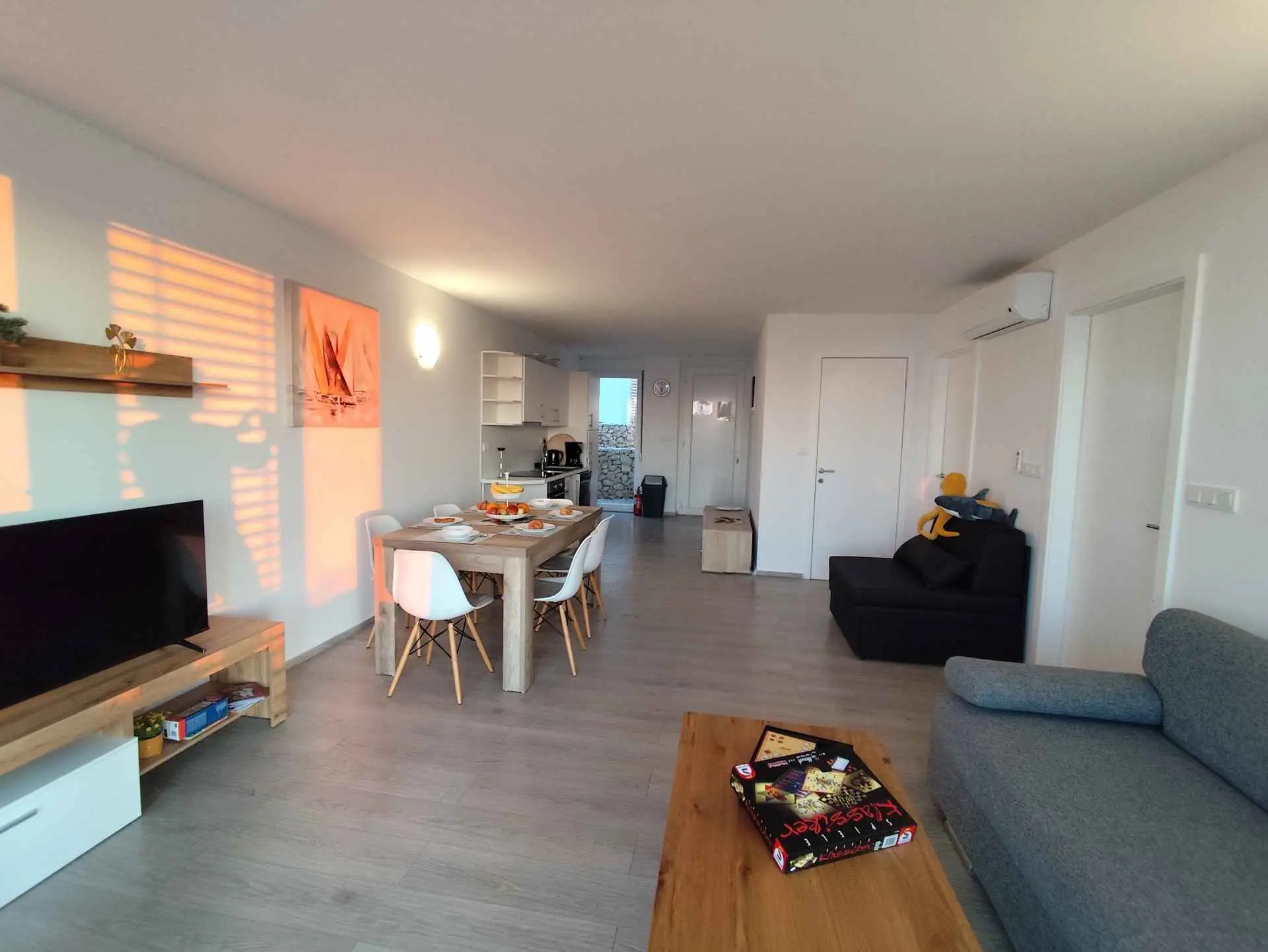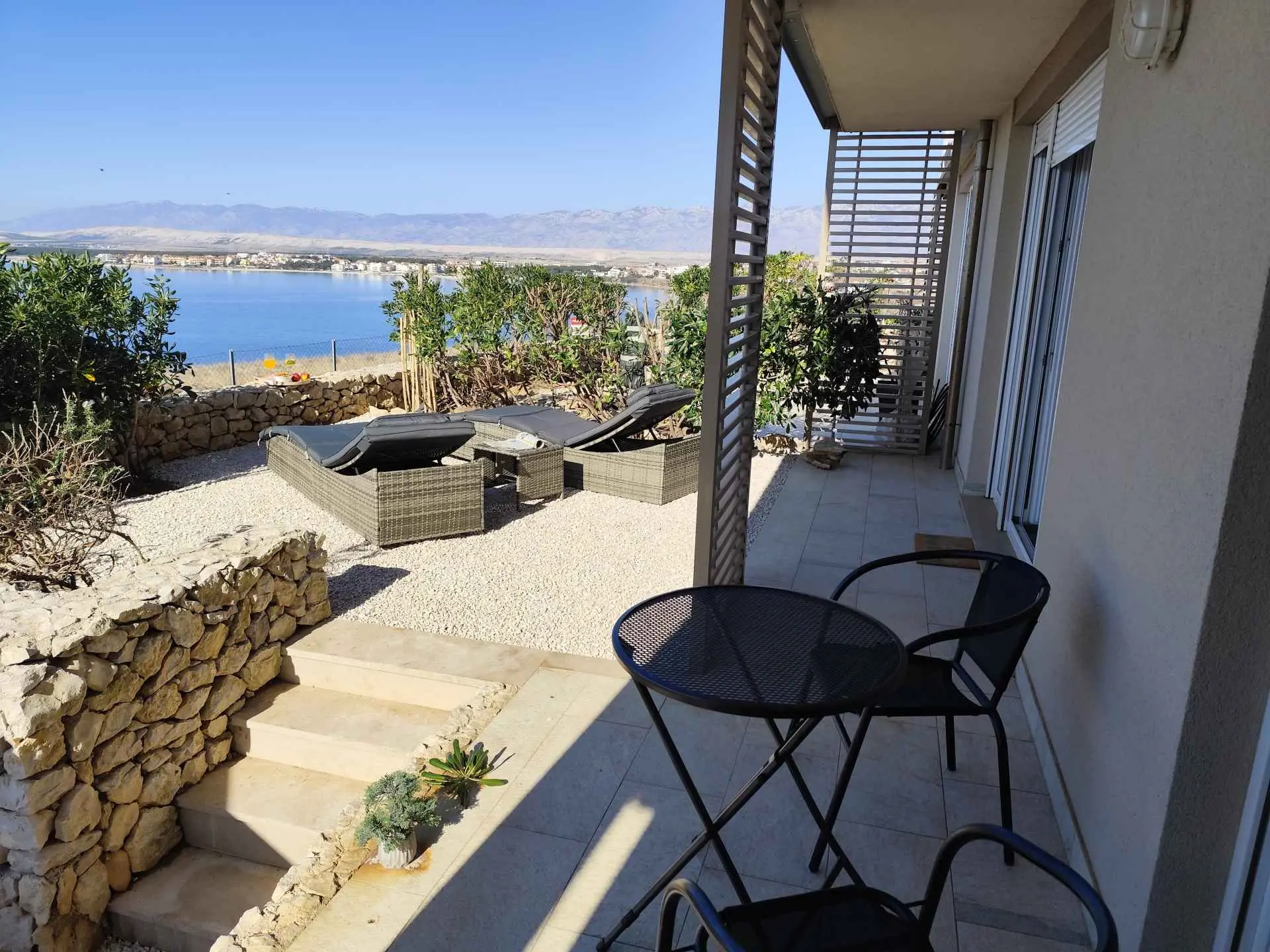Das Apartment MORE I MIR befindet sich in einem ruhigen Teil von Povljana auf der Halbinsel Rastavac, nur 150 m vom Meer und dem Sandstrand Trokut entfernt. Das Apartment befindet sich im Erdgeschoss und ist komplett ausgestattet mit allem, was Sie für einen angenehmen Urlaub benötigen. Es verfügt über zwei Schlafzimmer mit zwei eigenen Badezimmern, ein Wohnzimmer und eine Küche. Im Wohnzimmer sind zusätzliche Schlafplätze möglich (Ausziehsofa und Sessel). Das Apartment ist komplett ausgestattet mit Küchengeräten, drei Klimaanlagen und drei Fernsehern. Den Apartmentgästen stehen kostenlose Parkplätze und Internetzugang, ein Swimmingpool, ein Grillplatz, eine Außendusche und ein Gemeinschaftsraum für Spiele (Schlitten, Tischtennis usw.) zur Verfügung. Das Apartment verfügt über eine private Terrasse und einen Garten mit Sonnenliegen und einem Sofa mit Meerblick in der ersten Reihe. Ein Campingplatz, eine Bäckerei, ein Geschäft und ein Restaurant befinden sich in unmittelbarer Nähe. Povljana bietet mit seinen wunderschönen Sand- und Kiesstränden und dem klaren, flachen Meer einen hochwertigen Urlaub für Familien. Das Zentrum ist 3,6 km entfernt.