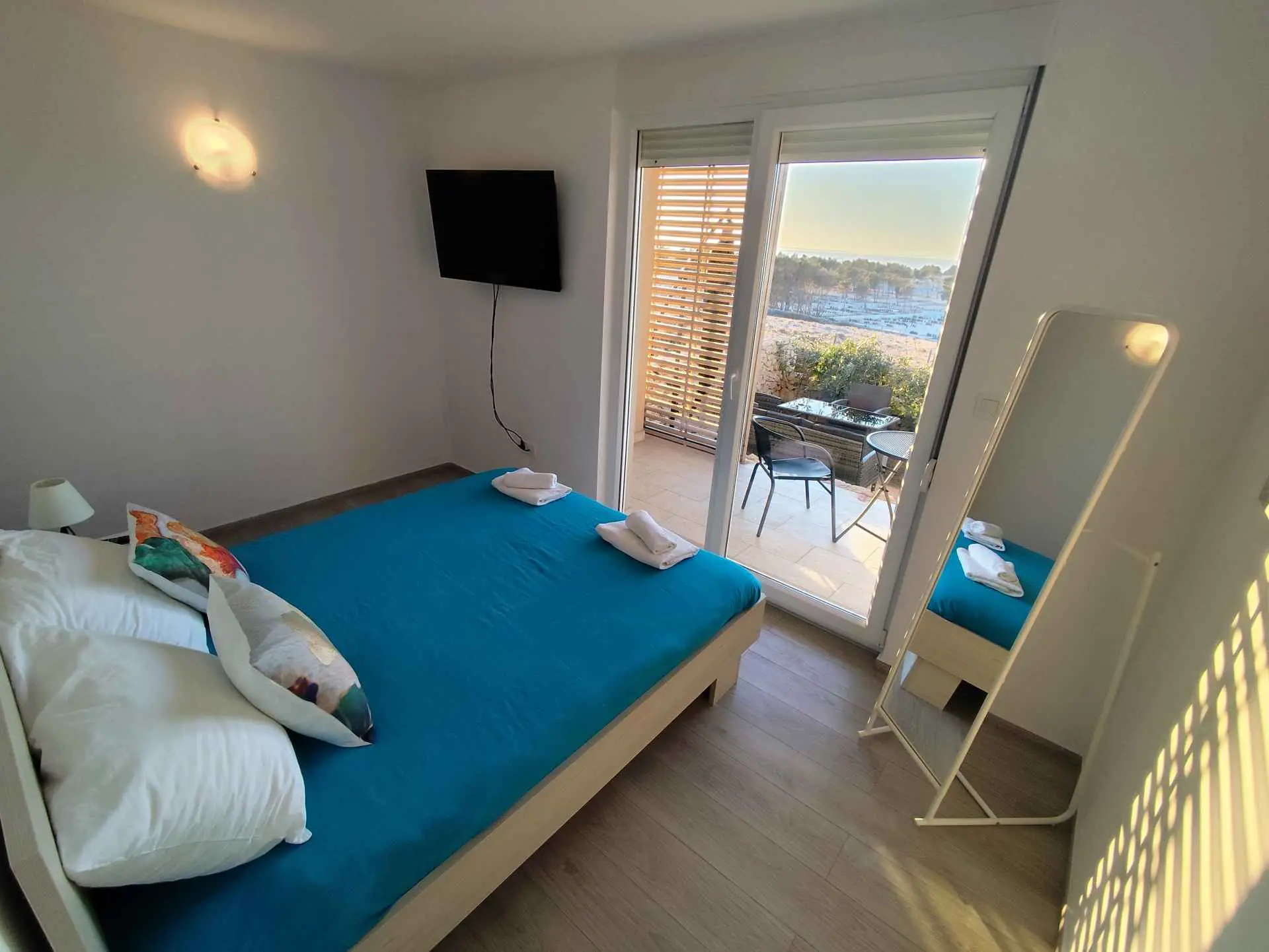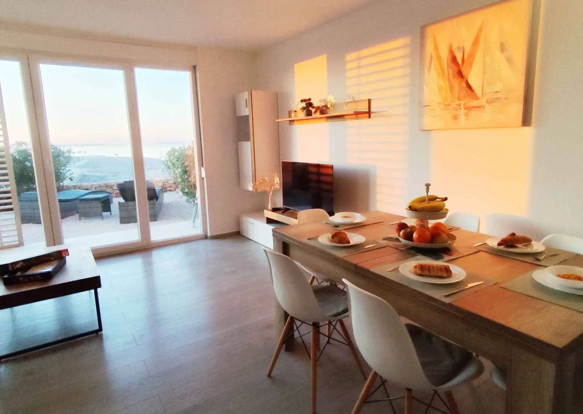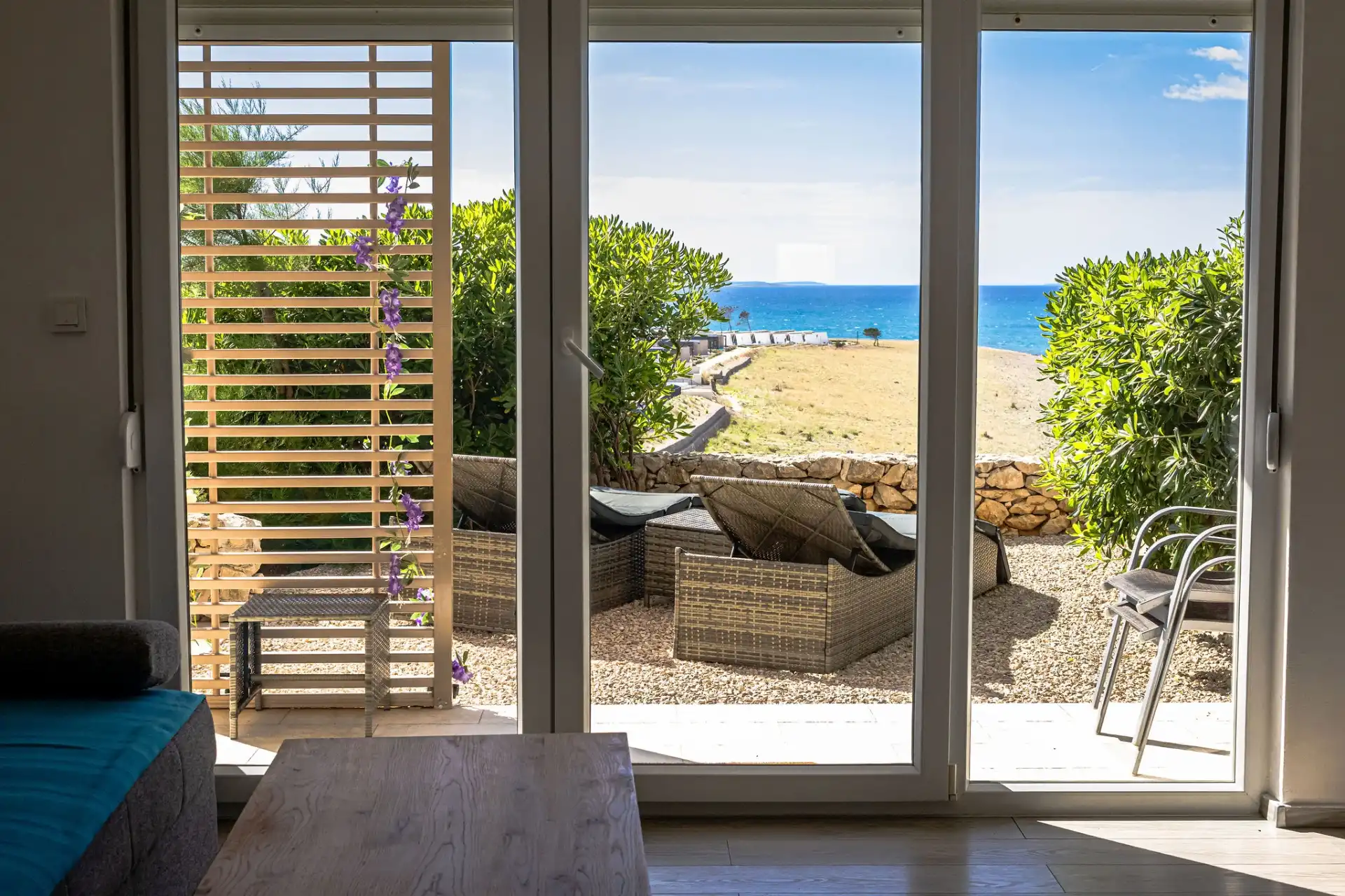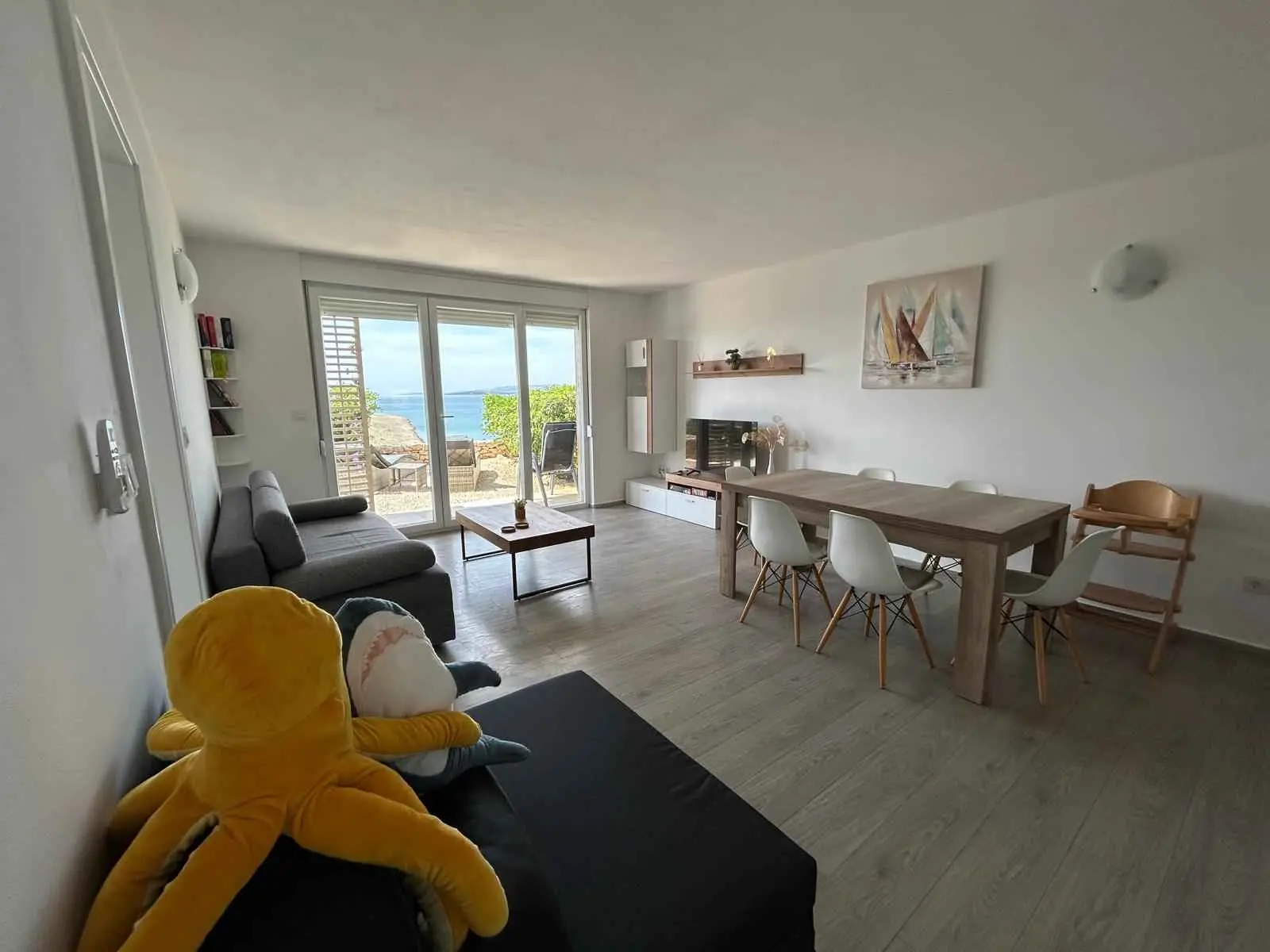Das Apartment MORE I MIR befindet sich in einem ruhigen Teil von Povljana auf der Halbinsel Rastavac, nur 150 m vom Meer und dem Sandstrand Trokut entfernt. Das Apartment befindet sich im Erdgeschoss und ist komplett ausgestattet mit allem, was Sie für einen angenehmen Urlaub benötigen. Es verfügt über zwei Schlafzimmer mit zwei eigenen Badezimmern, ein Wohnzimmer und eine Küche. Im Wohnzimmer sind zusätzliche Schlafplätze möglich (Ausziehsofa und Sessel). Das Apartment ist komplett ausgestattet mit Küchengeräten, drei Klimaanlagen und drei Fernsehern. Den Apartmentgästen stehen kostenlose Parkplätze und Internetzugang, ein Swimmingpool, ein Grillplatz, eine Außendusche und ein Gemeinschaftsraum für Spiele (Schlitten, Tischtennis usw.) zur Verfügung. Das Apartment verfügt über eine private Terrasse und einen Garten mit Sonnenliegen und einem Sofa mit Meerblick in der ersten Reihe. Ein Campingplatz, eine Bäckerei, ein Geschäft und ein Restaurant befinden sich in unmittelbarer Nähe. Povljana bietet mit seinen wunderschönen Sand- und Kiesstränden und dem klaren, flachen Meer einen hochwertigen Urlaub für Familien. Das Zentrum ist 3,6 km entfernt.