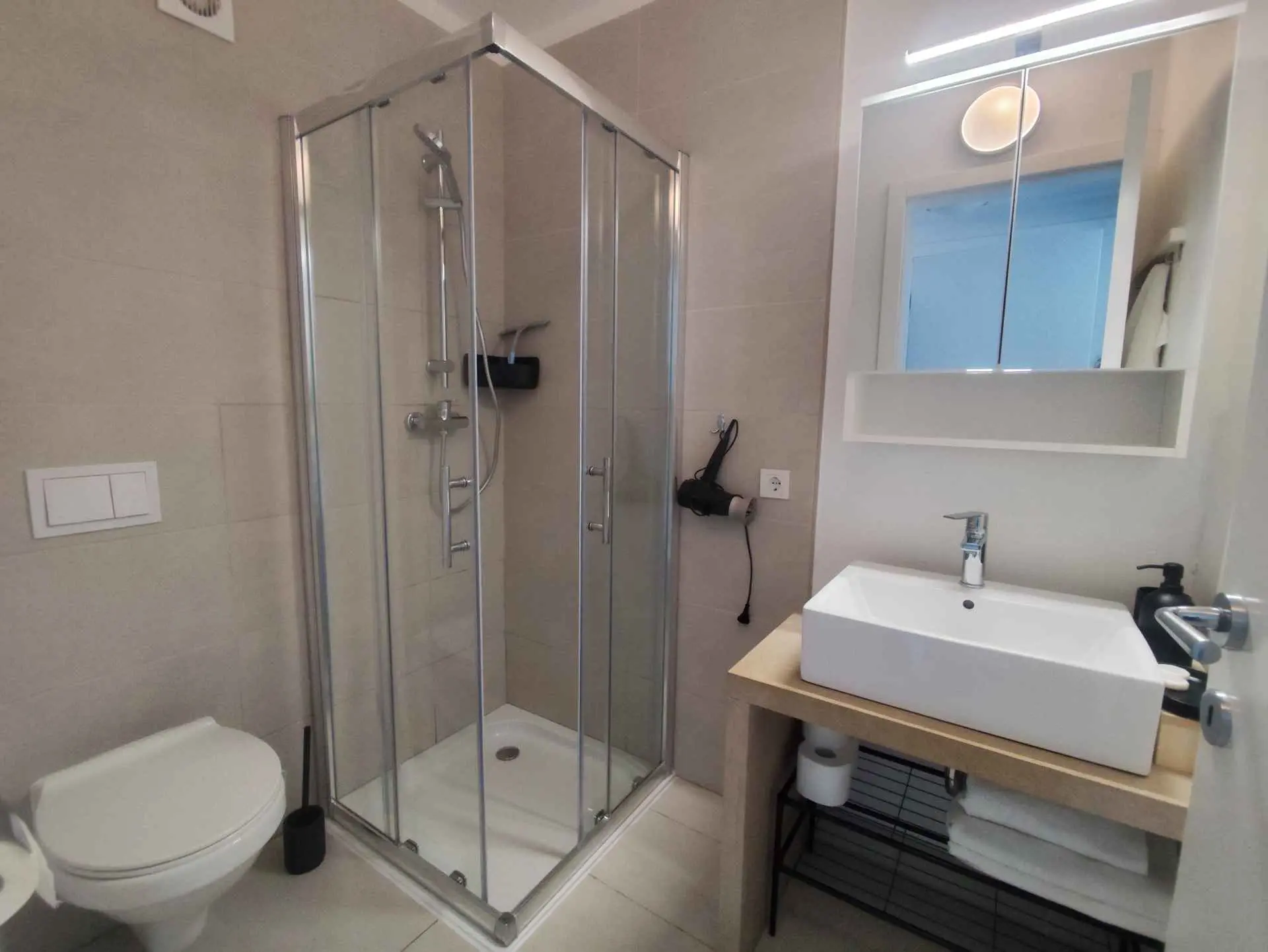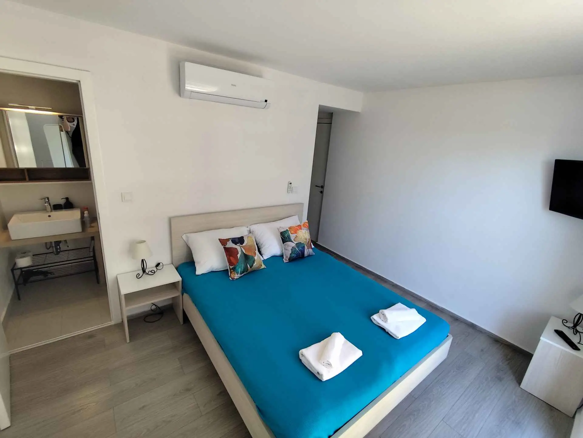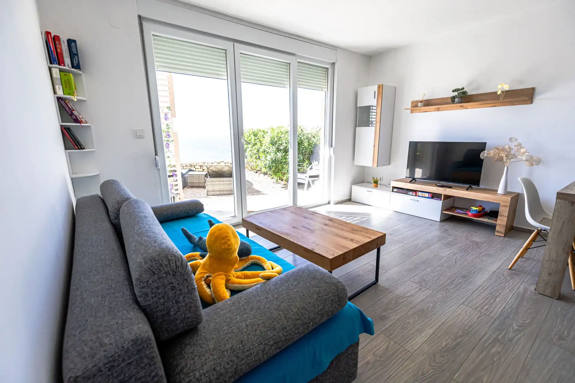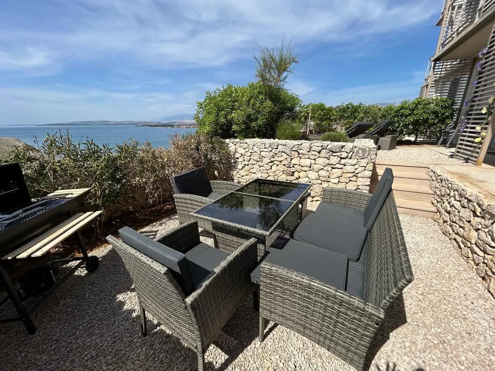 Das Apartment MORE I MIR befindet sich in einem ruhigen Teil von Povljana auf der Halbinsel Rastavac, nur 150 m vom Meer und dem Sandstrand Trokut entfernt. Das Apartment befindet sich im Erdgeschoss und ist komplett ausgestattet mit allem, was Sie für einen angenehmen Urlaub benötigen. Es verfügt über zwei Schlafzimmer mit zwei eigenen Badezimmern, ein Wohnzimmer und eine Küche. Im Wohnzimmer sind zusätzliche Schlafplätze möglich (Ausziehsofa und Sessel). Das Apartment ist komplett ausgestattet mit Küchengeräten, drei Klimaanlagen und drei Fernsehern. Den Apartmentgästen stehen kostenlose Parkplätze und Internetzugang, ein Swimmingpool, ein Grillplatz, eine Außendusche und ein Gemeinschaftsraum für Spiele (Schlitten, Tischtennis usw.) zur Verfügung. Das Apartment verfügt über eine private Terrasse und einen Garten mit Sonnenliegen und einem Sofa mit Meerblick in der ersten Reihe. Ein Campingplatz, eine Bäckerei, ein Geschäft und ein Restaurant befinden sich in unmittelbarer Nähe. Povljana bietet mit seinen wunderschönen Sand- und Kiesstränden und dem klaren, flachen Meer einen hochwertigen Urlaub für Familien. Das Zentrum ist 3,6 km entfernt.