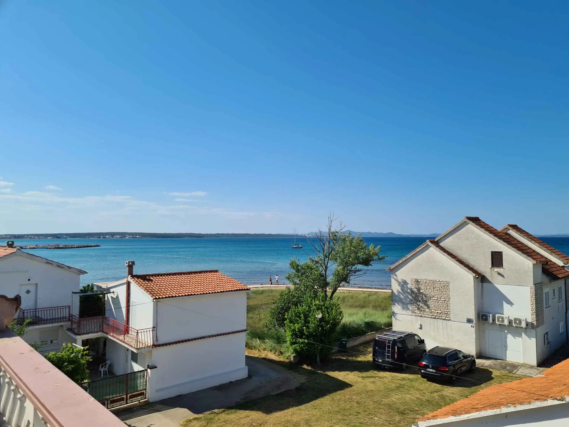 Die Unterkunft Apartments Marica befindet sich in Privlaka, Škrapavac, in unmittelbarer Nähe des Meeres, des Strandes und der Promenade am Meer. Wir bieten drei Wohnungen an. Die Wohnung im Erdgeschoss und die Wohnung im ersten Stock sind in Aussehen und Raumaufteilung nahezu identisch. Sie bestehen aus einem Eingangsbereich mit Küche und einem Wohnzimmer mit ausziehbarem Sofa, dann einem Schlafzimmer und einem Badezimmer. Die Wohnung im Dachgeschoss verfügt über drei Schlafzimmer, ein Badezimmer und eine Küche mit Esszimmer und Wohnzimmer. Alle Wohnungen verfügen über einen Balkon oder eine Terrasse und die Wohnungen im Dachgeschoss bieten einen schönen Blick auf das Meer. Zusätzlich zu der unten aufgeführten Ausstattung der Apartments können alle Gäste der Apartments eine Außendusche, einen Grill und einen Platz im Freien zum geselligen Beisammensein nutzen. Alle Wohnungen verfügen über Klimaanlage und WLAN. Zu jeder Wohnung gehört ein Parkplatz innerhalb der Unterkunft. Der Ort selbst ist ruhig und zeichnet sich durch Sandstrände, einen sandigen Meeresboden und ein langes Flachwasser aus, was ihn perfekt für einen Urlaub mit Kindern macht. Im Ort gibt es mehrere Cafés und Restaurants, in denen Sie den Blick auf das Meer genießen können. Und falls Sie Lust auf etwas Lebendigkeit haben, finden Sie in der Nähe die Insel Vir, auf der verschiedene Konzerte angeboten werden, die Stadt Nin mit ihrem historischen und kulturellen Erbe und natürlich die Stadt Zadar.