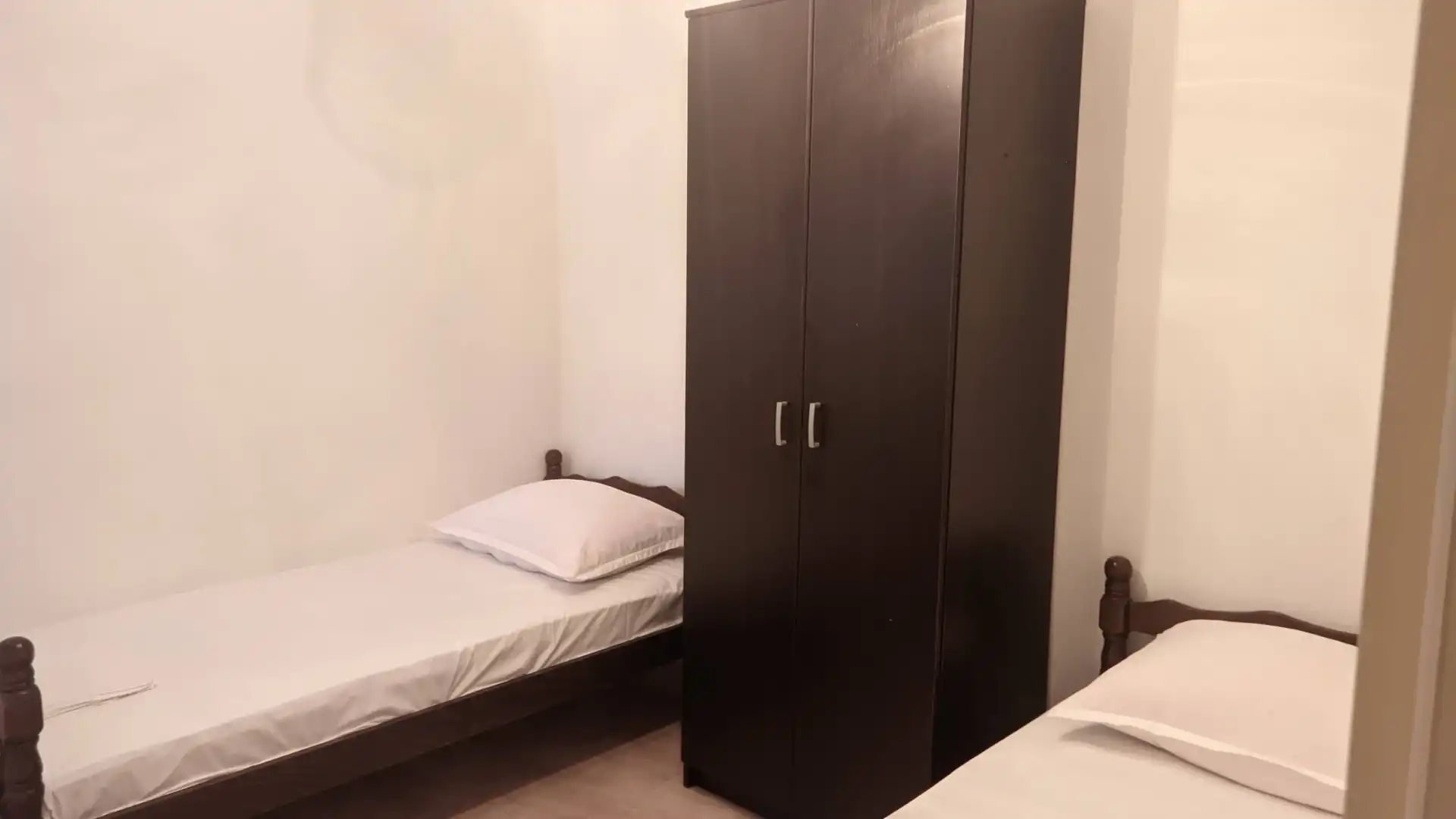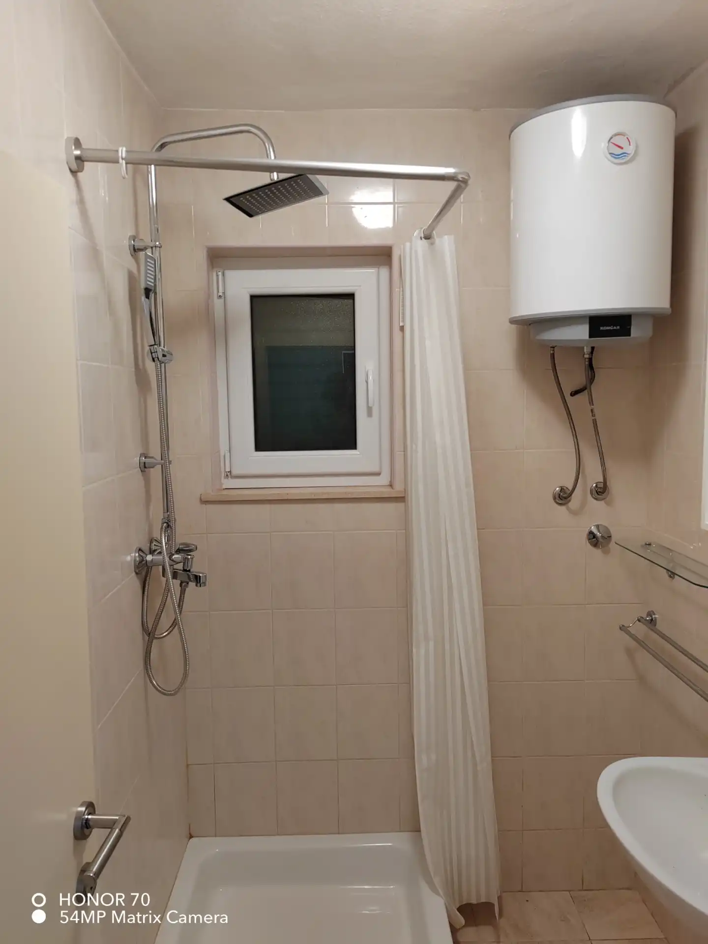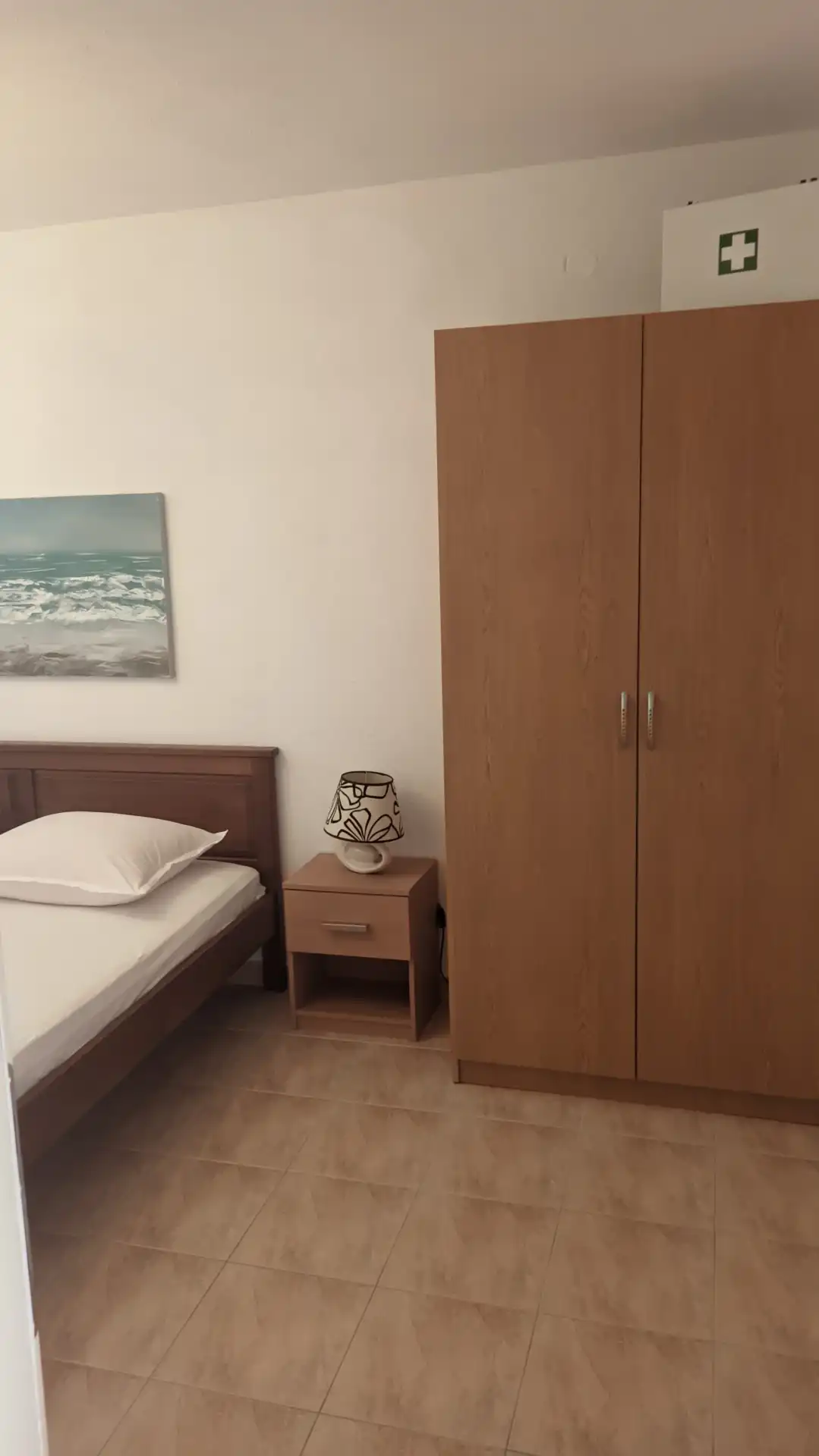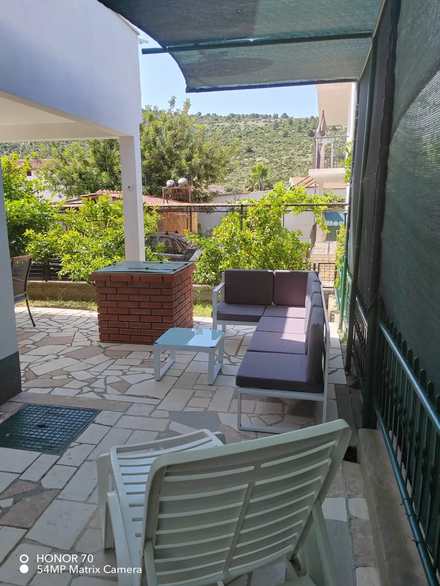 Rogoznica, Unterkunft in einem Einfamilienhaus im Stadtteil Stupin-Čeline II, nur 80 m vom Sandstrand entfernt. Die Wohnung befindet sich im Erdgeschoss und besteht aus zwei Schlafzimmern mit je zwei Betten (eines davon mit Doppelbett), einem Wohnzimmer mit zwei Zustellbetten, Sat-TV, WLAN, Bad und WC sowie einer Küche (Elektroherd, zwei Kühlschränke mit Gefrierfach). Terrasse und Kamin im Garten. Überdachter Parkplatz im Innenhof. Zimmertyp: 2 Schlafzimmer, max. Belegung: 4 Personen
