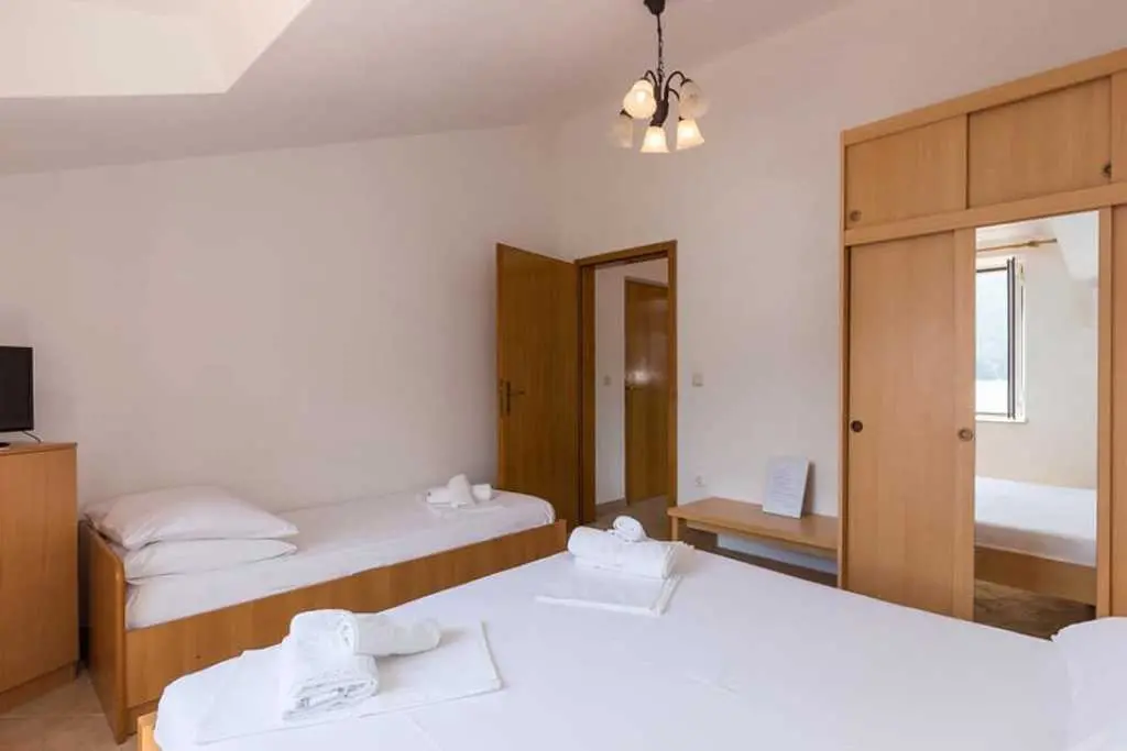 Unser Haus befindet sich 20 m vom Meer entfernt und verfügt über 4 Suiten und 2 Zimmer. Apartment 1 verfügt über ein Schlafzimmer mit Doppelbett, Küche, wo es ein Etagenbett, ein WC und eine große Terrasse mit Blick auf das Meer. Zimmer 2 hat ein Doppelbett und eine Toilette. Apartment 3 verfügt über ein Schlafzimmer mit Doppelbett und Zustellbett, Küche und WC. Wohnung 4 verfügt über ein Schlafzimmer mit Doppelbett und Zustellbett, Küche mit Sofa-Bett und eine Toilette. ROOM 5 hat ein Doppelbett und eine Toilette. Wohnung 6 ist das gleiche wie das Appartement 4. Das Haus verfügt über 3 große Terrassen, Grill, Außendusche, Liegeplätze und Wi-Fi. Für alles andere sind wir zu Ihrer Verfügung. Willkommen von der Familie Kovacevic