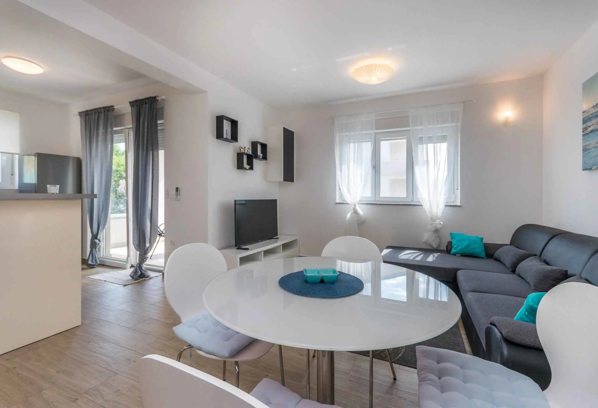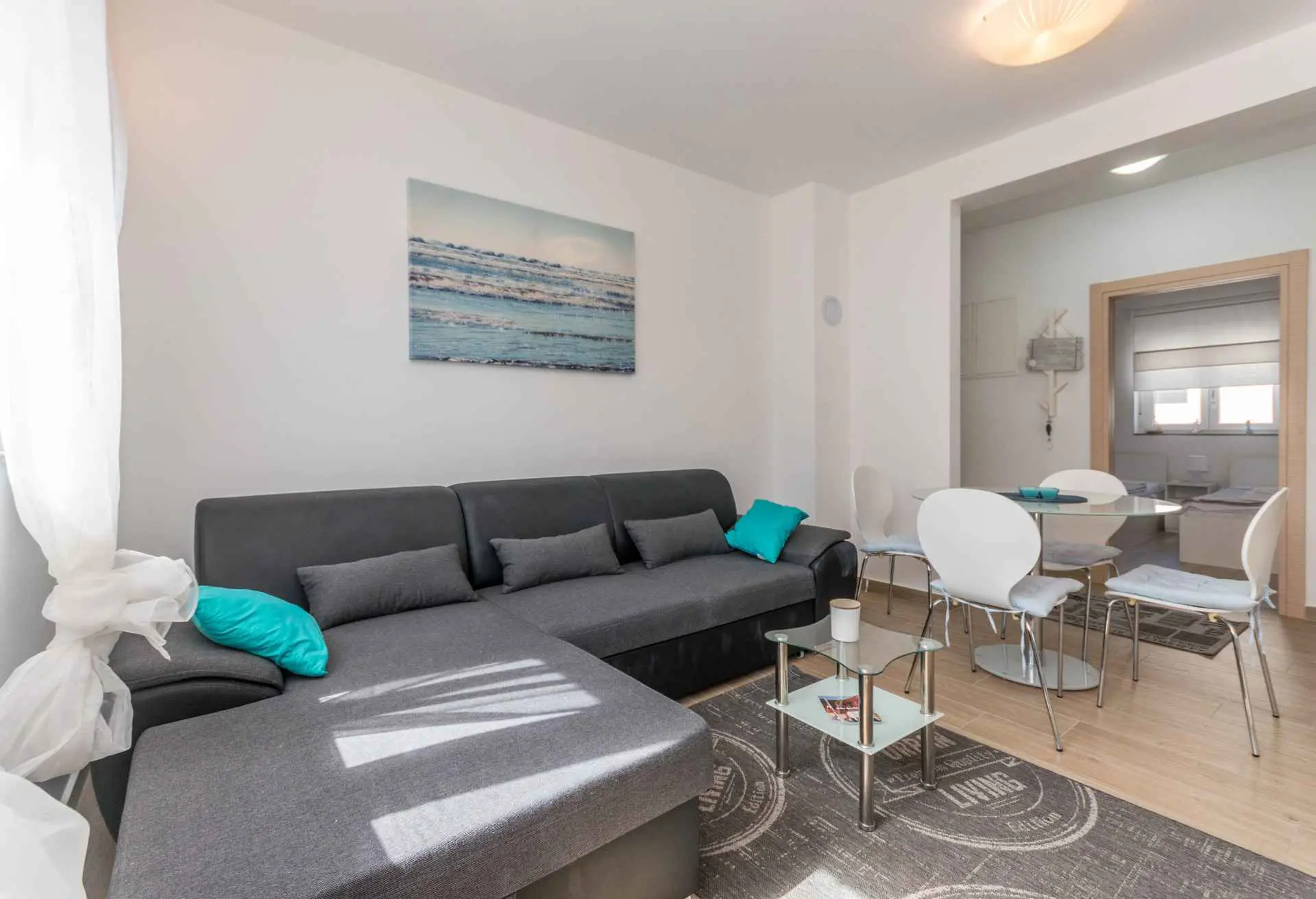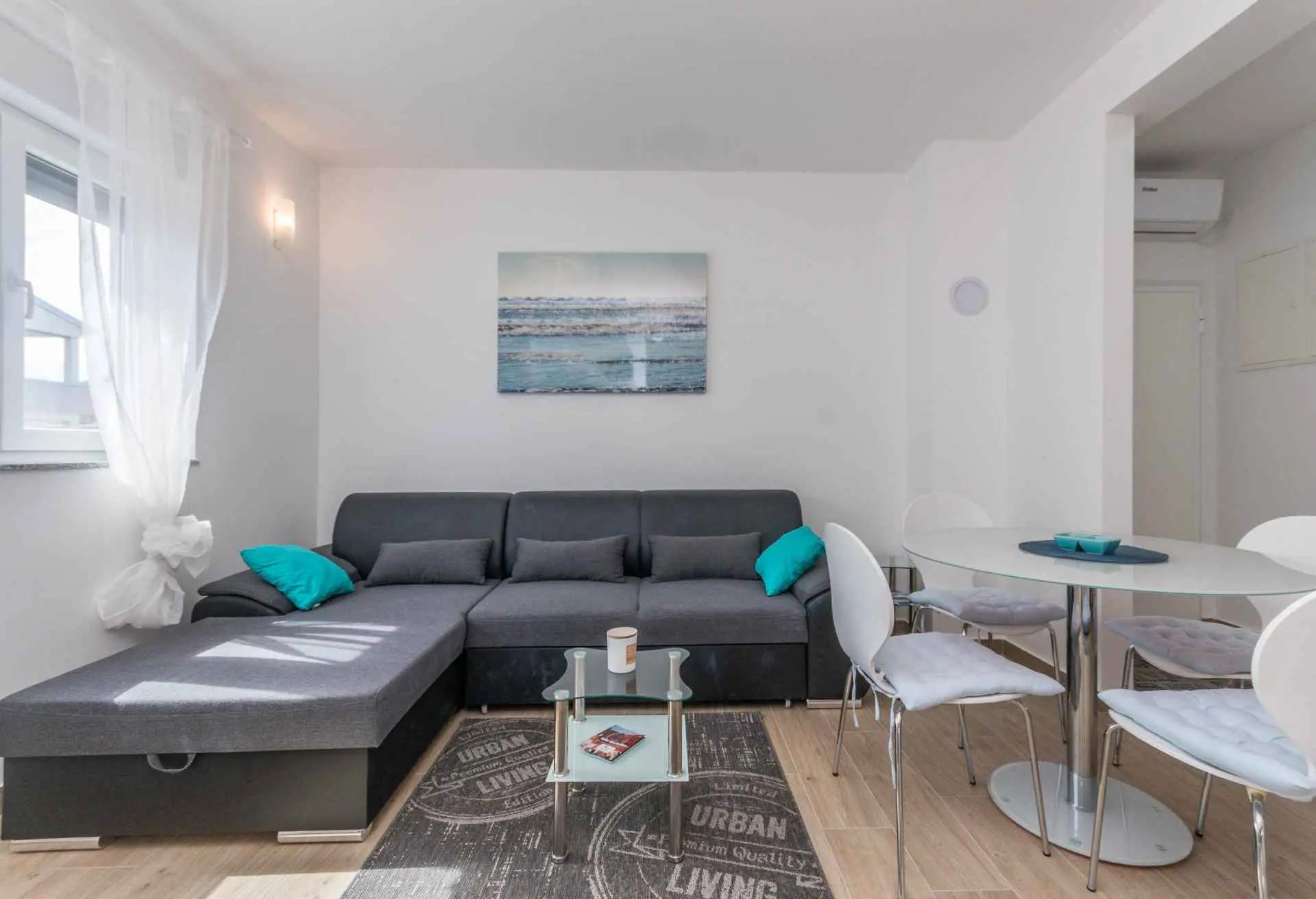 Komfort, Einfachheit, Bequemlichkeit, Nähe zum türkisfarbenen Meer und zum blauen Himmel. Leidenschaft für Mitteldalmatien und die Nähe zu Zadar, Biograd und den schönen Inseln in der Nähe ... Momente, in denen ich mich mit der Familie ausruhen oder ein Buch lesen kann, bereichern mein Leben. Deshalb habe ich beschlossen, meine Leidenschaft für das Meer durch den Tourismus zu teilen. Willkommen in den Türkis Apartments! Das Gebäude wurde als Haus mit 6 Wohnungen gebaut, die als unabhängige Einheiten (Wohnungen) mit separatem Eingang innerhalb eines gemeinsamen Treppenhauses errichtet wurden. Das Apartment Türkis 1 ist für Familien mit Kindern geeignet, da es auf 58 m2 über 2 Schlafzimmer, eine komfortable Küche und ein offenes Wohnzimmer verfügt. Die Küche verfügt über einen Geschirrspüler, eine Mikrowelle, eine Kaffeemaschine, einen großen Kühlschrank mit Gefrierfach, einen Elektroherd mit Backofen und ein Cerankochfeld. Im Wohnzimmer gibt es einen 52-Zoll-Fernseher und kostenfreies WLAN. Neben dem Wohnzimmer gibt es eine große Terrasse und einen Garten mit Grill. Das Badezimmer bietet eine Waschmaschine, einen Haartrockner, Handtücher und grundlegende Hygieneprodukte. Die Wohnung ist 50 m vom Strand mit kleinen Steinen und der Küste entfernt, 100 m vom Stadtzentrum und anderen Einrichtungen.
