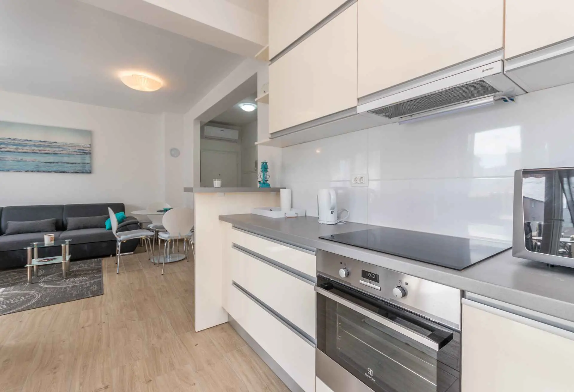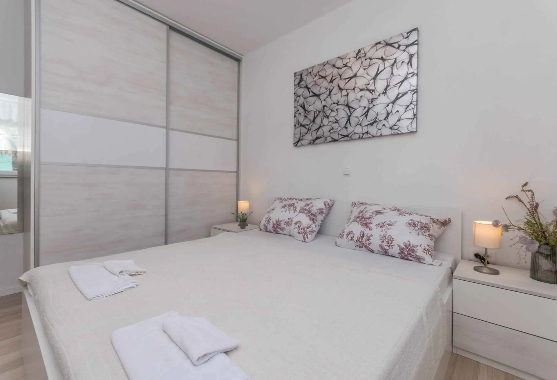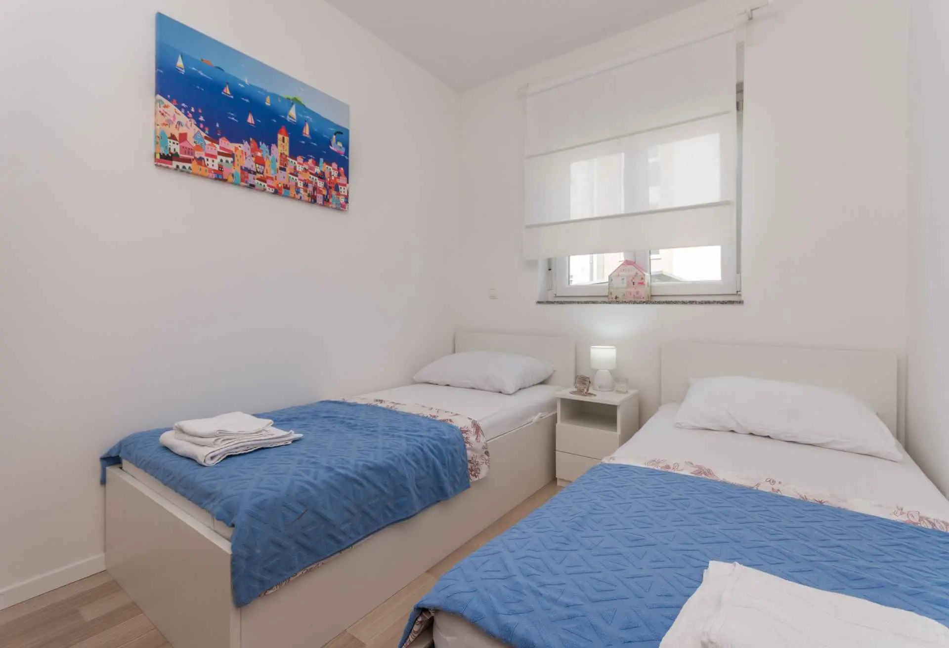 Komfort, Einfachheit, Bequemlichkeit, Nähe zum türkisfarbenen Meer und zum blauen Himmel. Leidenschaft für Mitteldalmatien und die Nähe zu Zadar, Biograd und den schönen Inseln in der Nähe ... Momente, in denen ich mich mit der Familie ausruhen oder ein Buch lesen kann, bereichern mein Leben. Deshalb habe ich beschlossen, meine Leidenschaft für das Meer durch den Tourismus zu teilen. Willkommen in den Türkis Apartments! Das Gebäude wurde als Haus mit 6 Wohnungen gebaut, die als unabhängige Einheiten (Wohnungen) mit separatem Eingang innerhalb eines gemeinsamen Treppenhauses errichtet wurden. Das Apartment Türkis 1 ist für Familien mit Kindern geeignet, da es auf 58 m2 über 2 Schlafzimmer, eine komfortable Küche und ein offenes Wohnzimmer verfügt. Die Küche verfügt über einen Geschirrspüler, eine Mikrowelle, eine Kaffeemaschine, einen großen Kühlschrank mit Gefrierfach, einen Elektroherd mit Backofen und ein Cerankochfeld. Im Wohnzimmer gibt es einen 52-Zoll-Fernseher und kostenfreies WLAN. Neben dem Wohnzimmer gibt es eine große Terrasse und einen Garten mit Grill. Das Badezimmer bietet eine Waschmaschine, einen Haartrockner, Handtücher und grundlegende Hygieneprodukte. Die Wohnung ist 50 m vom Strand mit kleinen Steinen und der Küste entfernt, 100 m vom Stadtzentrum und anderen Einrichtungen.