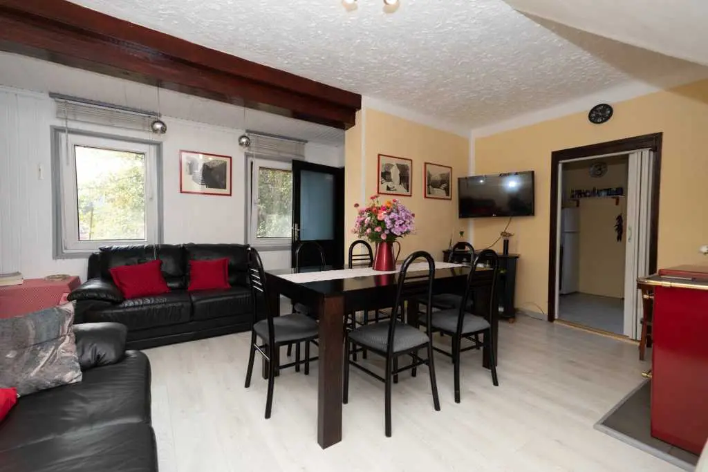 Wohnung Anika ist im Hochland Dorf Moravice liegt 70 km vom Fluss und 70 km von Zagreb, in der Nähe der Stadt Vrbovsko. Es liegt im Herzen von Gorski Kotar entfernt und bietet komfortable Unterkunft für Familien mit vielen Einrichtungen. Frische Bergluft, grüne Natur und das Rauschen des Flusses Dobra direkt in die Wohnung fließt, bietet Ruhe und Erholung, die für einen guten Urlaub. Morgenkaffee mit Schwarzstörche und Enten, die im Fluss schwimmen entspannen und erfreuen Freunde der Natur. Die Wohnung verfügt über 4 geschmackvoll eingerichtete Schlafzimmer mit Doppelbetten, und ggf. Kinderbett / Zusatzbett, Wohnzimmer, Esszimmer, Bad mit Dusche und ein zusätzliches separates WC. Die Küche ist funktional mit allen modernen Geräten (Geschirrspüler, Mikrowelle, Kaffeemaschine, Gasherd, Kühlschrank mit Gefrierfach) ausgestattet. Schön geschlossene Umgebung mit vorgefertigten Pool, Kamin und Holz und Gas und traditionellen Becken eingerichtet, die Promenade entlang des Flusses. Sportmöglichkeiten stehen den Gästen (Fahrräder, Badminton). Im Winter ist die Wohnung beheizt traditionell Holz. Waschmaschine Gästen zur Verfügung. Haustiere erlaubt nur kleine Rassen.