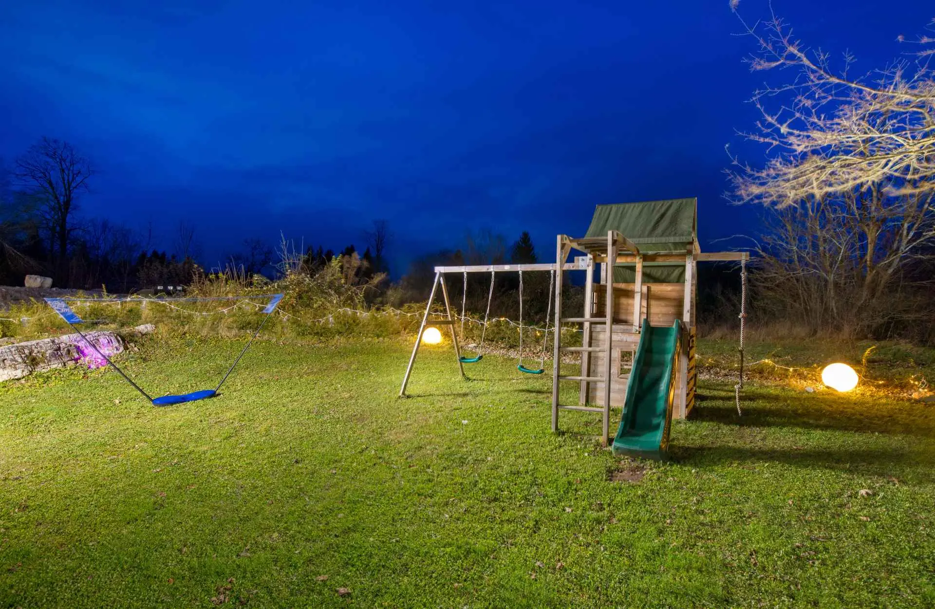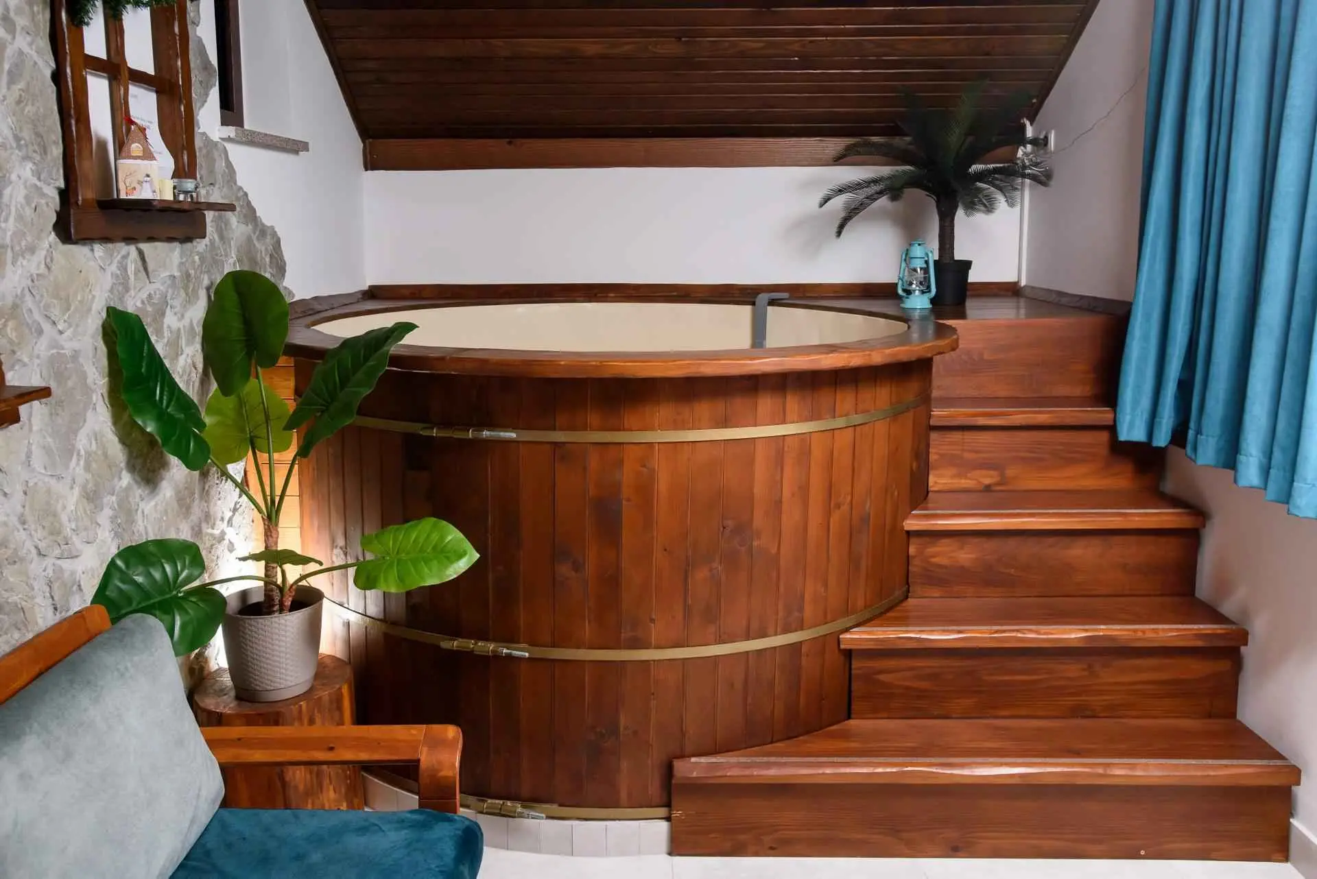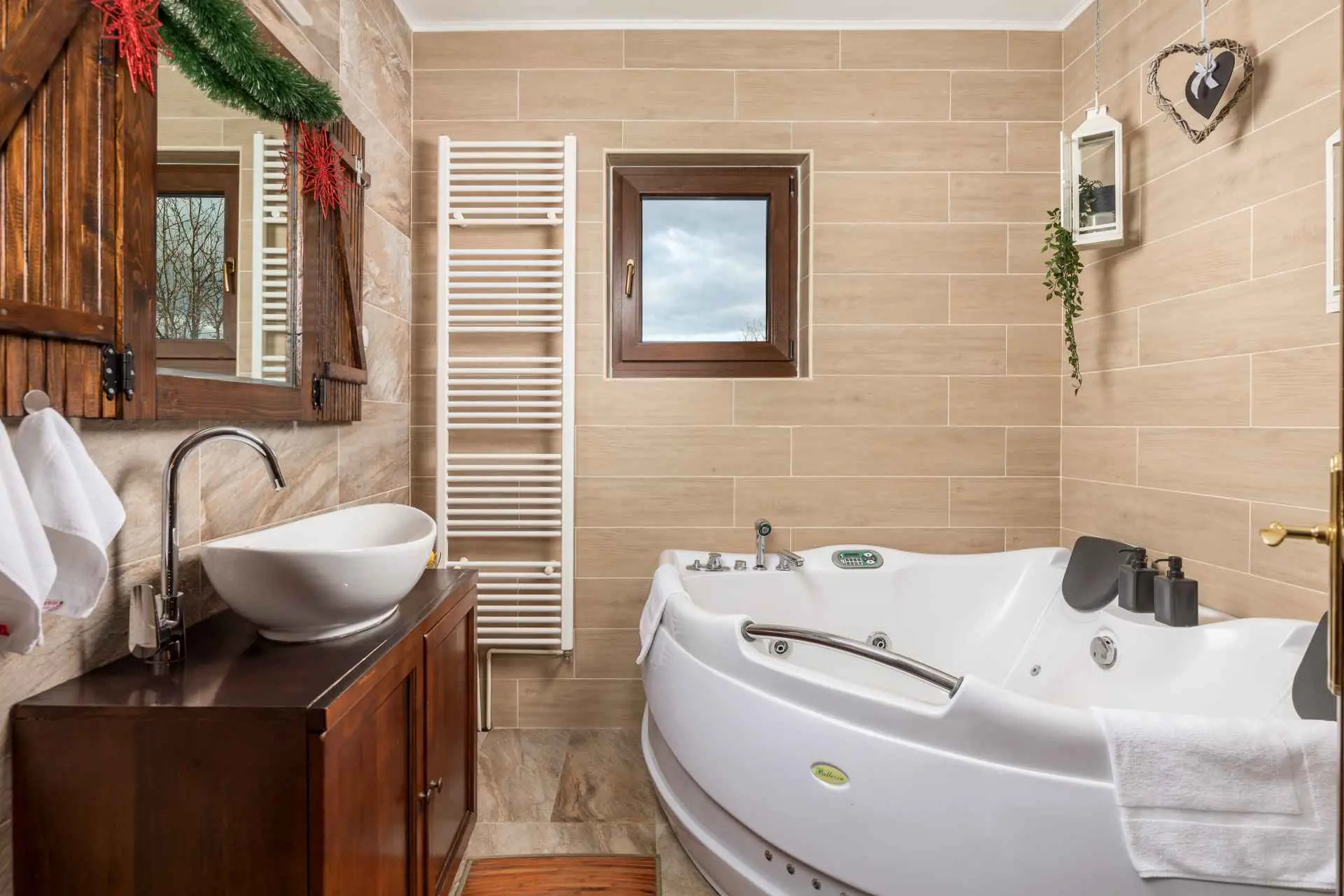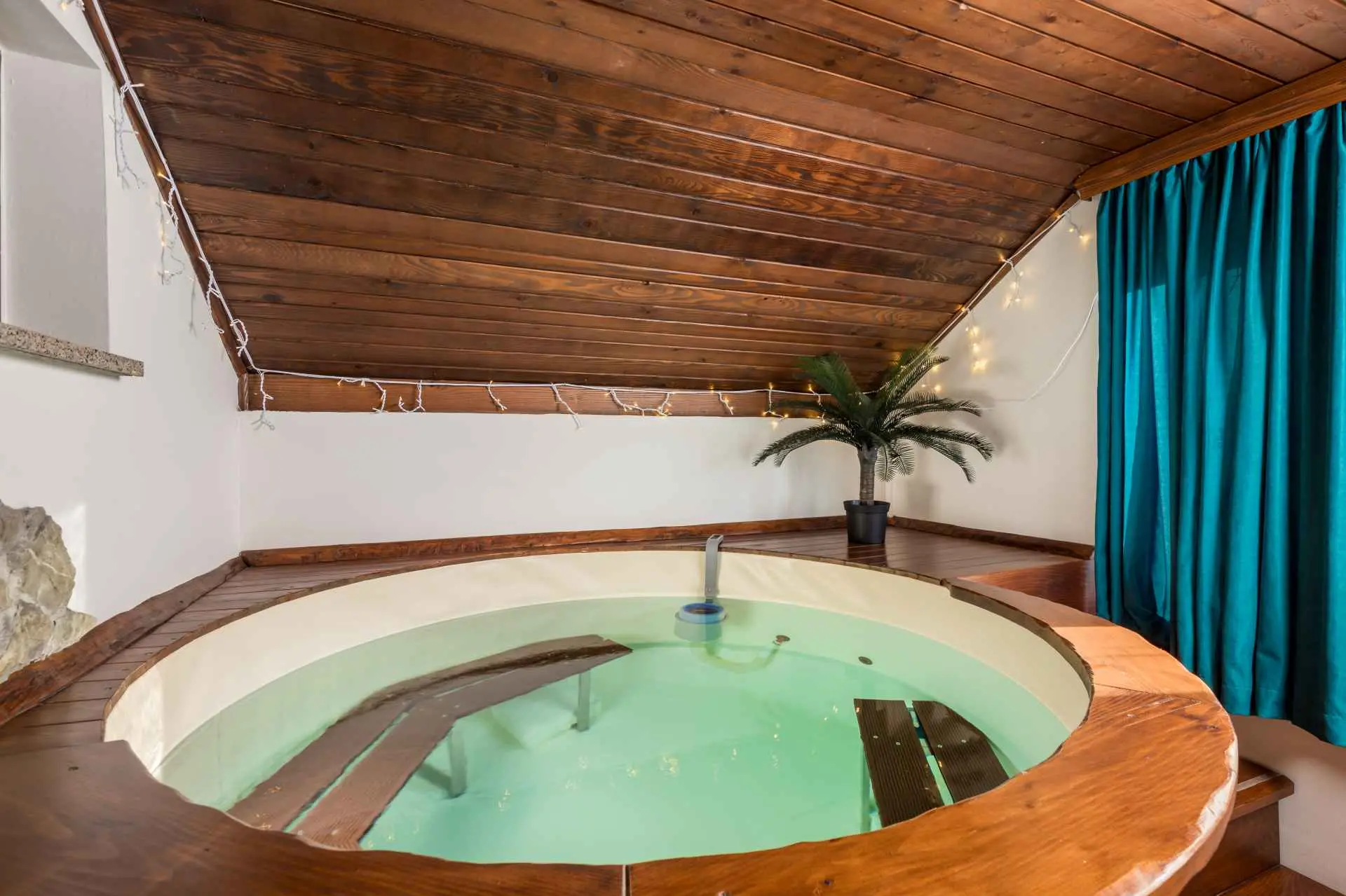 Das Ferienhaus Vila Zora House ist eine wunderschöne Oase der Ruhe in der Nähe der Kamačnik-Schlucht im Zentrum der Stadt Vrbovsko in Gorski Kotar, nur 45 Minuten von Rijeka und Zagreb entfernt, und bietet Erholung und Unterhaltung für Erwachsene und Kinder gleichermaßen. Wenn Sie dem Alltagsstress oder der Stadt entfliehen möchten oder sich einfach von der wunderschönen Natur, dem Zwitschern der Vögel, einem aktiven Urlaub und einem Ferienhaus angezogen fühlen, das absolut alles bietet, was Sie sich wünschen können, sind wir die perfekte Wahl für Sie. Die Kapazität von 8 Personen macht die Villa Zora House perfekt für Familienurlaube, Vergnügen in Gesellschaft, aber auch für romantische Wochenenden zu zweit. Villa Zora House ist eine echte kleine Kombination aus Modernem und Rustikalem, in der jeder etwas für sich findet. Im Erdgeschoss des Hauses gibt es eine Küche mit Esszimmer, ein Wohnzimmer, ein Badezimmer mit Hydromassage-Badewanne, einen Bereich zum Lesen, Sitzen und Genießen der vielen Zimmerpflanzen, einen Flur und ein Zimmer, in dem Kinder und Erwachsene einfach Spaß haben. Das Haus Zora bietet allen Komfort in Bezug auf die notwendige Technologie, doch die Holz- und Erdtöne, die sich durch das ganze Haus ziehen, verleihen dem Klima, in dem es sich befindet, den besonderen Charme. Im zweiten Stock des Hauses befinden sich zwei Schlafzimmer, ein Badezimmer mit ebenerdiger Dusche, ein Spielbereich (Tischfußball) und eine geschlossene Terrasse mit einem beheizten Holzpool (Whirlpool) für 8 Personen und einer trockenen finnischen Sauna. Ob Sommer oder Winter, die Wellness-Oase bietet unbeschreibliches Vergnügen, und im Winter kann man im 34 Grad warmen Wasser schwimmen und dabei durch die Glaswand den Schnee fallen sehen, und im Sommer hat man die Möglichkeit, die Glaswand zu öffnen und das Grün und den Duft blühender Pflanzen und die Geräusche der Tiere zu genießen, während man in Gesellschaft, mit der Familie oder mit dem Partner ein Glas guten Weins bei einem wohltuenden Bad genießt. Das Ferienhaus „Zora“ ist ein besonderer Ort auf der Erde, an dem jeder am besten schläft und an dem jeder entspannt und fröhlich ist. Dieser Raum hat einfach eine wohltuende Wirkung auf die Menschen und es gibt niemanden, der gleichgültig bleibt. Der Grund dafür kann die unmittelbare Nähe zum Wasser sein oder die Liebe der Eigentümer, die es auf wirklich einzigartige Weise mit Kunsthandwerk und Möbeln dekoriert haben, die nach alten Techniken hergestellt wurden und die Natur und alles, was sie uns bietet, respektieren. Auf der geräumigen Terrasse mit schönen Glasfenstern befindet sich ein Holzpool für 8 Personen. Handgefertigt, einstellbare Temperaturen (bis zu 36 °C im Winter, kühl im Sommer). Genießen Sie ein heißes Bad mit einem Glas Wein oder Obst. Eine maßgeschneiderte Sauna bietet zusätzliche Vorteile für Körper und Geist. Entspannen Sie sich nach dem Schwimmen und Saunieren in einem komfortablen Bereich mit massiven Holztischen und grünen Pflanzen. Villa Zora House bietet spezielle Einrichtungen, die Ihren Aufenthalt zu einem unvergesslichen Erlebnis machen. Der beheizte Pool mit einer Poolkuppel bietet eine einzigartige Gelegenheit, auch bei Regen oder kälterem Wetter ein Bad zu genießen, während das Gegenstromschwimmen der Entspannung eine zusätzliche Dimension verleiht. Die Poolkuppel passt sich leicht den Wetterbedingungen an und öffnet an wärmeren Tagen. Sie ist jedes Jahr vom 1. Mai bis 31. Oktober in Betrieb, sodass Sie den Raum zum Entspannen optimal nutzen können. Wir heizen es auf angenehme 28 bis 30 Grad, je nach Wetterlage draußen, aber auf die optimale Temperatur zum Genießen. Der Hof und der Hof sind mit einem Kinderspielplatz, Schaukeln und einer Rutsche ausgestattet und bieten Platz für Familienspaß. Mit einem großen Steingrill und Grill sowie einer Sitzecke bieten wir Ihnen den perfekten Ort zum Grillen, Entspannen und Spaß haben. Darüber hinaus haben wir bequeme Liegestühle, die Ihr Urlaubserlebnis weiter abrunden. Entdecken Sie die einzigartige Atmosphäre des Villa Zora House und buchen Sie Ihren unvergesslichen Aufenthalt. Das gesamte Ferienhaus ist voll funktionsfähig und verfügt über alles, was Sie in Ihrem Urlaub benötigen könnten.