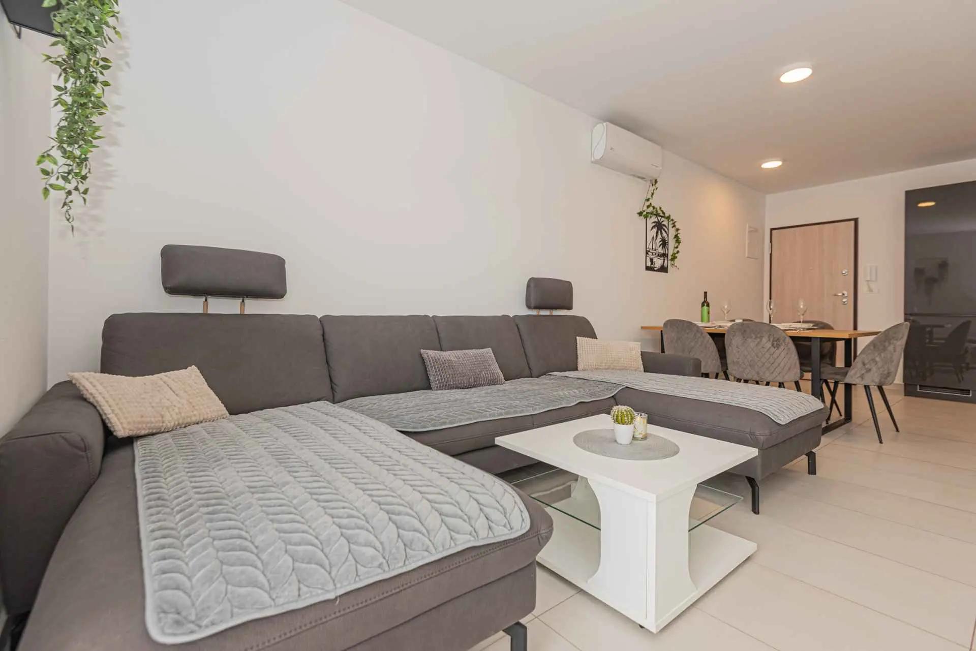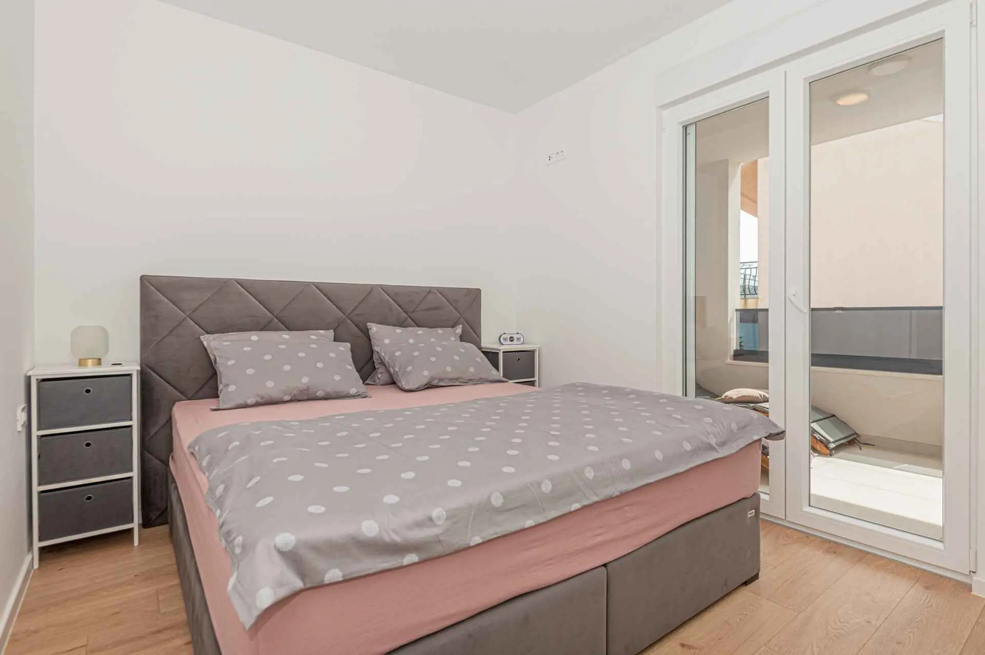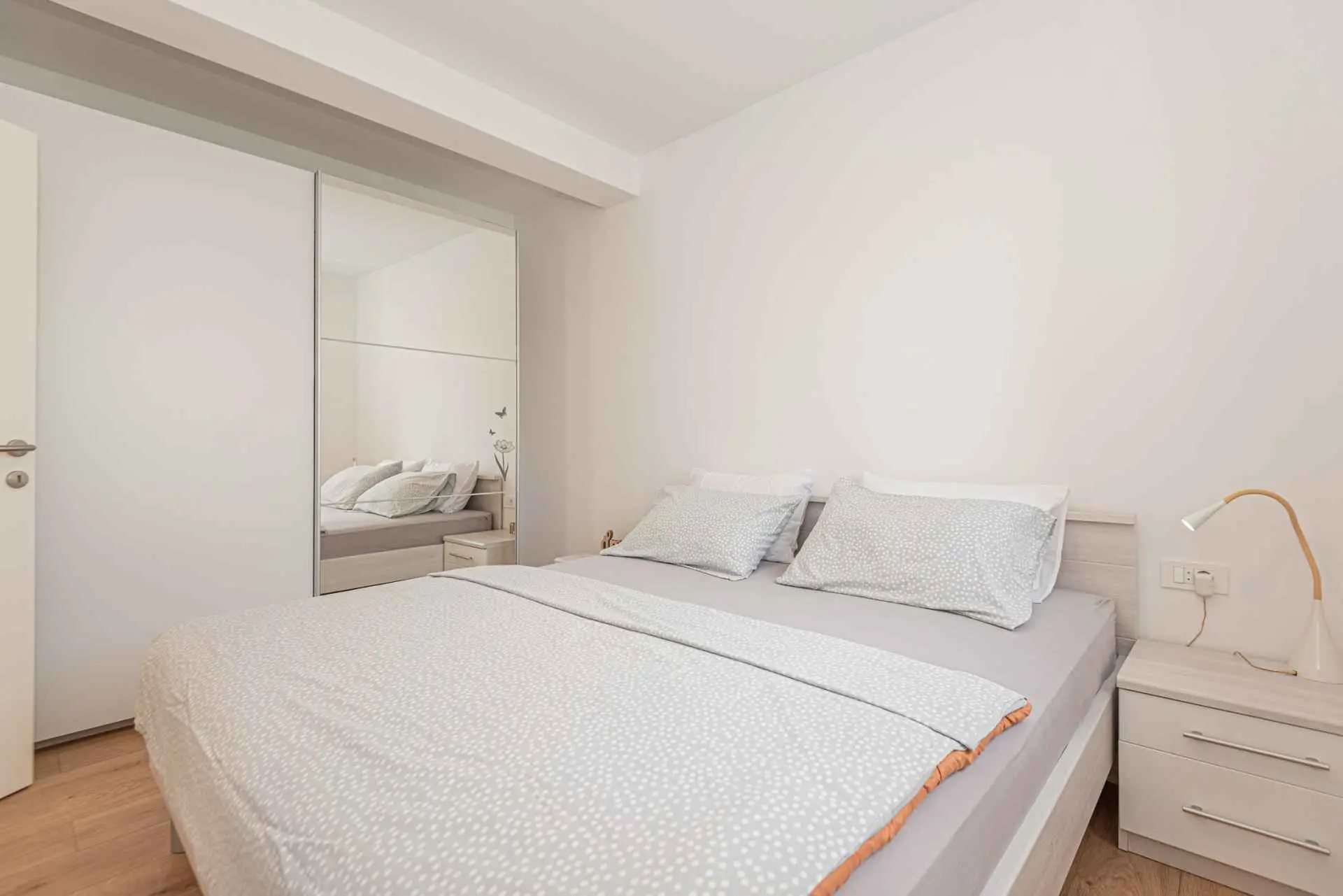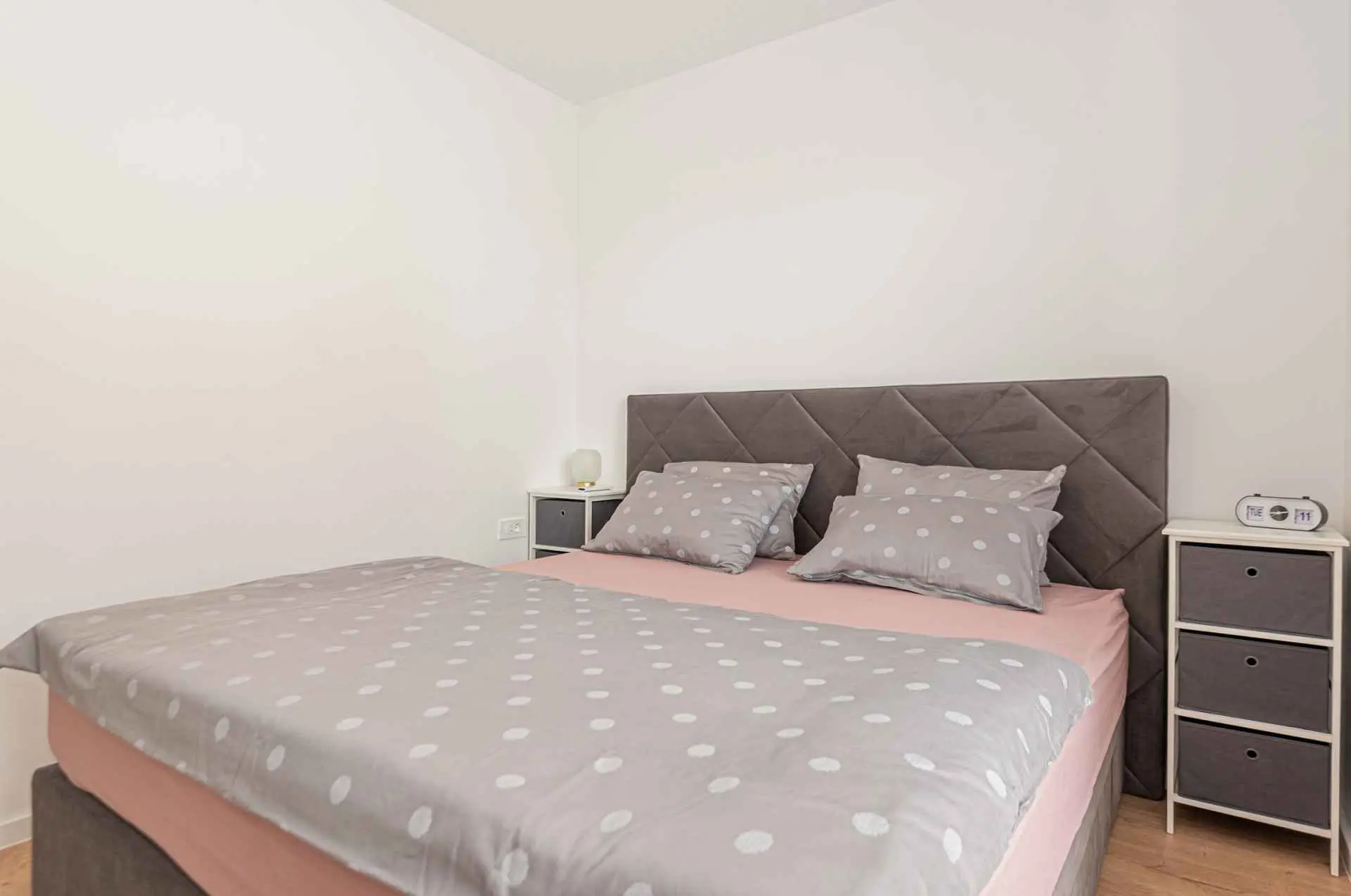 Das Apartment Tamar befindet sich in Umag in einem Wohngebiet. Das Apartment befindet sich im 2. Stock und den Gästen stehen ein Wohnzimmer, eine Küche, 2 Schlafzimmer, ein Badezimmer und ein Balkon für insgesamt 6 Personen (4 + 2) zur Verfügung. Dieses neu gebaute Apartment bietet Gästen alles für einen angenehmen Aufenthalt. In einem einzigen Bereich gibt es ein klimatisiertes Wohnzimmer mit einem Schlafsofa und eine ausgestattete Küche. Das Badezimmer ist mit einer Dusche ausgestattet und es steht auch eine Waschmaschine zur Verfügung. Beide Schlafzimmer sind klimatisiert, eines hat ein Kingsize-Bett und das andere hat 2 Einzelbetten. Vom Wohnzimmer aus haben die Gäste Zugang zu einem Balkon, der mit einem Tisch und Stühlen ausgestattet ist. WLAN ist kostenlos und Parkplätze befinden sich vor dem Gebäude. Der nächste Strand ist 2 km entfernt.