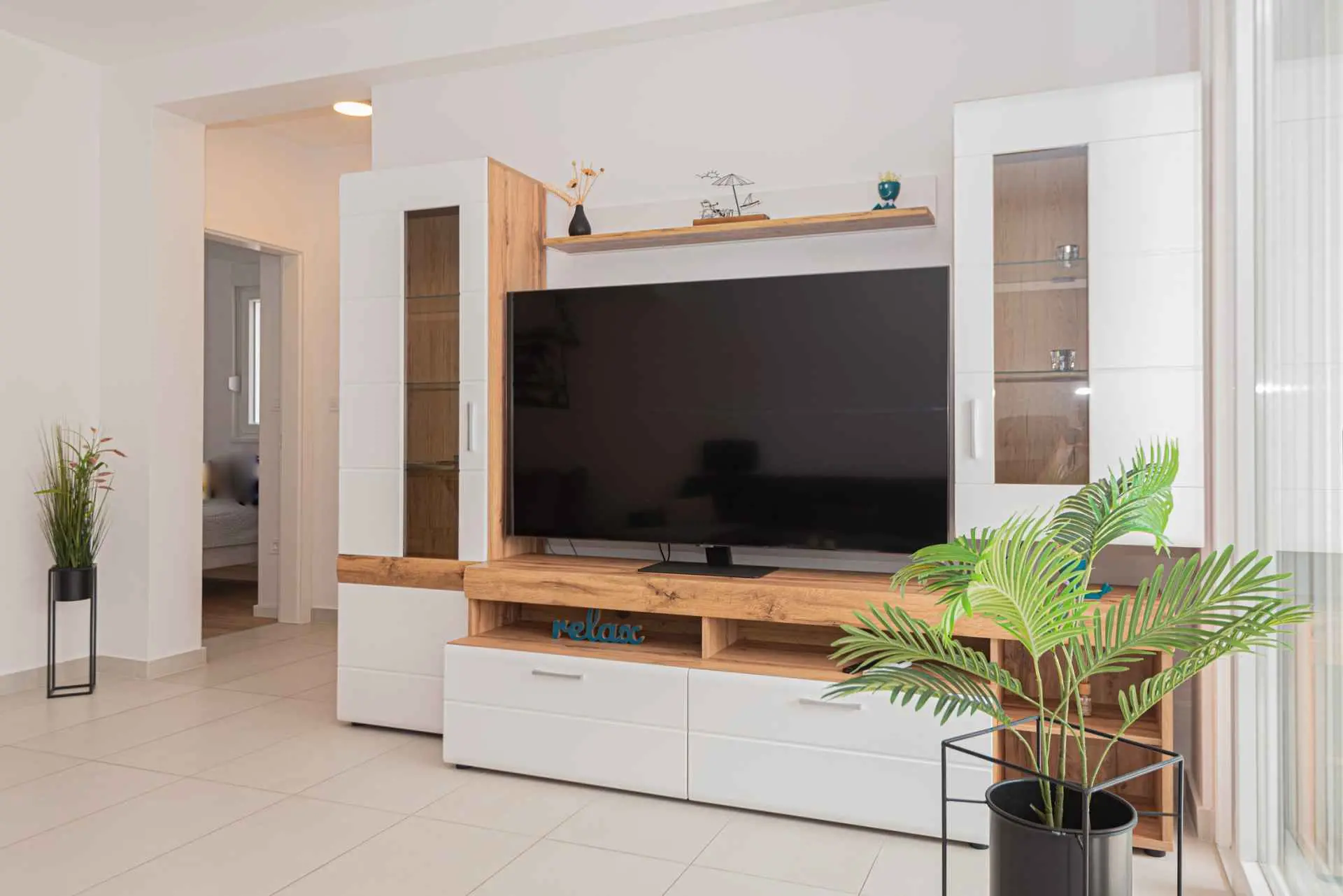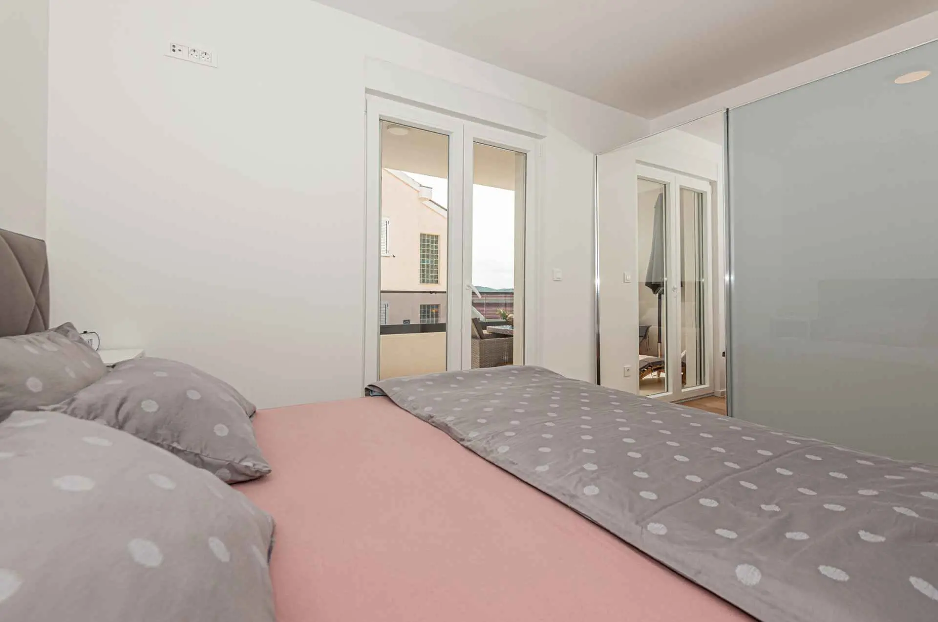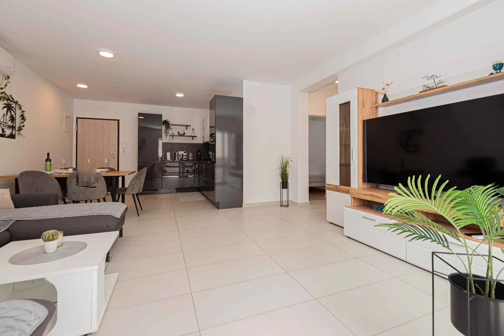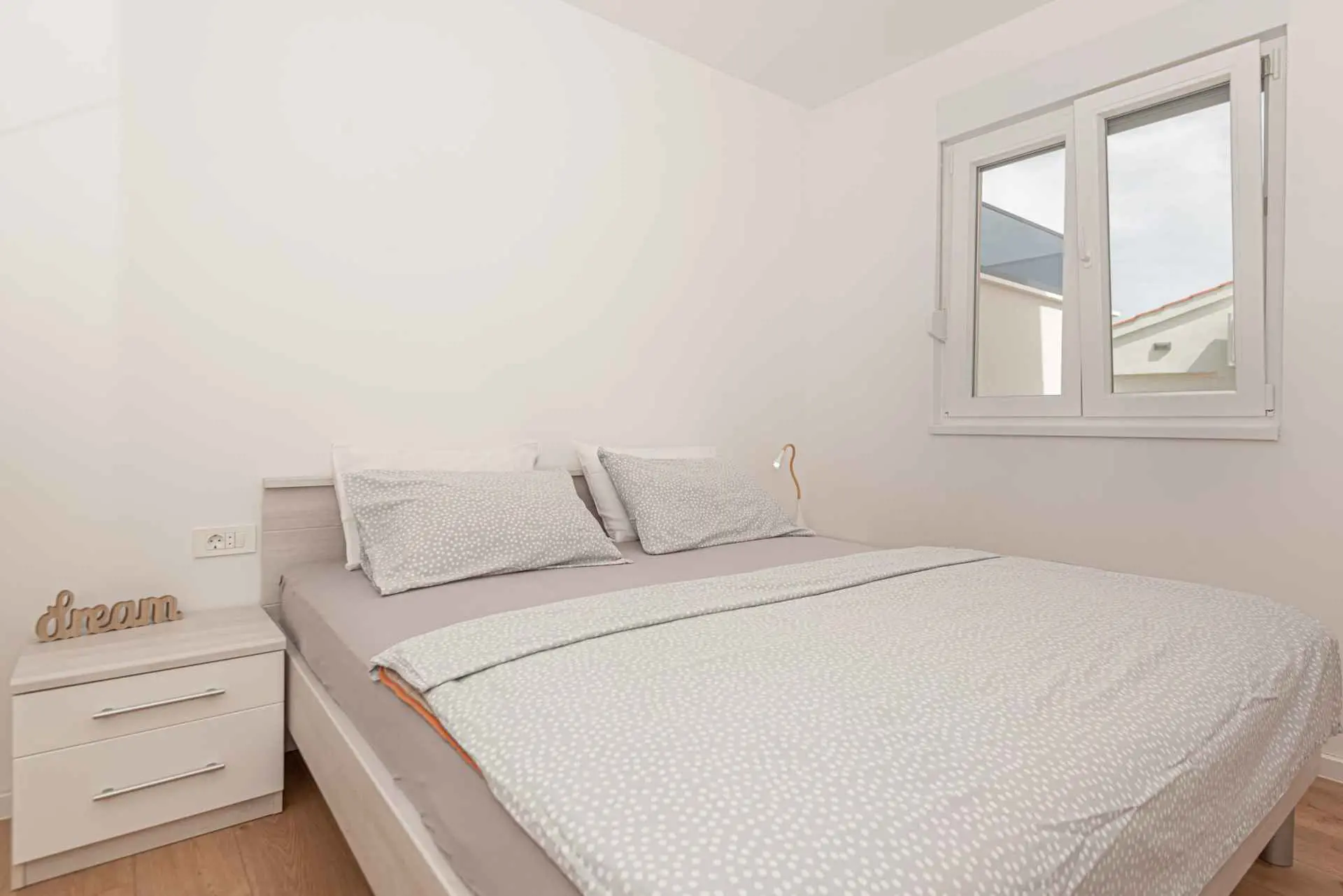 Das Apartment Tamar befindet sich in Umag in einem Wohngebiet. Das Apartment befindet sich im 2. Stock und den Gästen stehen ein Wohnzimmer, eine Küche, 2 Schlafzimmer, ein Badezimmer und ein Balkon für insgesamt 6 Personen (4 + 2) zur Verfügung. Dieses neu gebaute Apartment bietet Gästen alles für einen angenehmen Aufenthalt. In einem einzigen Bereich gibt es ein klimatisiertes Wohnzimmer mit einem Schlafsofa und eine ausgestattete Küche. Das Badezimmer ist mit einer Dusche ausgestattet und es steht auch eine Waschmaschine zur Verfügung. Beide Schlafzimmer sind klimatisiert, eines hat ein Kingsize-Bett und das andere hat 2 Einzelbetten. Vom Wohnzimmer aus haben die Gäste Zugang zu einem Balkon, der mit einem Tisch und Stühlen ausgestattet ist. WLAN ist kostenlos und Parkplätze befinden sich vor dem Gebäude. Der nächste Strand ist 2 km entfernt.