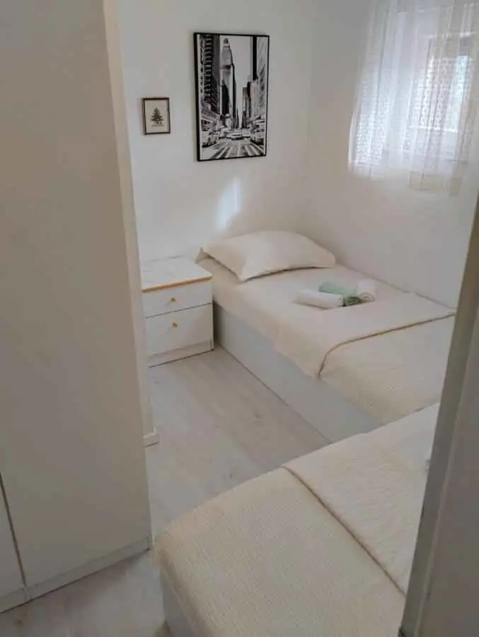 Die Braco Apartments am Meer mit Meerblick befinden sich in Žaborić, 150 Meter vom Strand Jasenovo entfernt. Sie bieten Unterkünfte mit privaten Terrassen mit Meerblick. Die Apartments bieten Platz für 9 Erwachsene, 9 Erwachsene und 3 Erwachsene. Die Apartments sind mit Klimaanlage, Waschmaschine, kostenlosem WLAN, einem Wohnzimmer, einem Essbereich mit Flachbild-Sat-TV, privaten Badezimmern und Küchen mit Geschirrspülern ausgestattet. Wir haben einen eigenen Parkplatz, der im Preis inbegriffen ist. Die Lage ist ruhig. Eine Bäckerei mit stets frischen Produkten befindet sich 50 Meter vom Grundstück entfernt. Der Strand Jasenovo in Žaborić ist der Strand, der Žaborić an diesem Küstenabschnitt als Ort mit einem wunderschönen Sandstrand berühmt macht. Sie finden Jasenovo am südlichen Ende der Siedlung neben dem gleichnamigen Campingplatz. Der Strand bietet einen 300 Meter langen Sandstreifen, Liegestühle und Sonnenschirme zum Schutz vor der unerbittlichen Sonneneinstrahlung. Das Meer ist hier klar und sauber und wer Action sucht, kann Tischtennis spielen, Trampolin spielen oder Tretboot fahren. In der Nähe gibt es ein Restaurant und eine Strandbar. Ein perfekter Ort zum Entspannen.