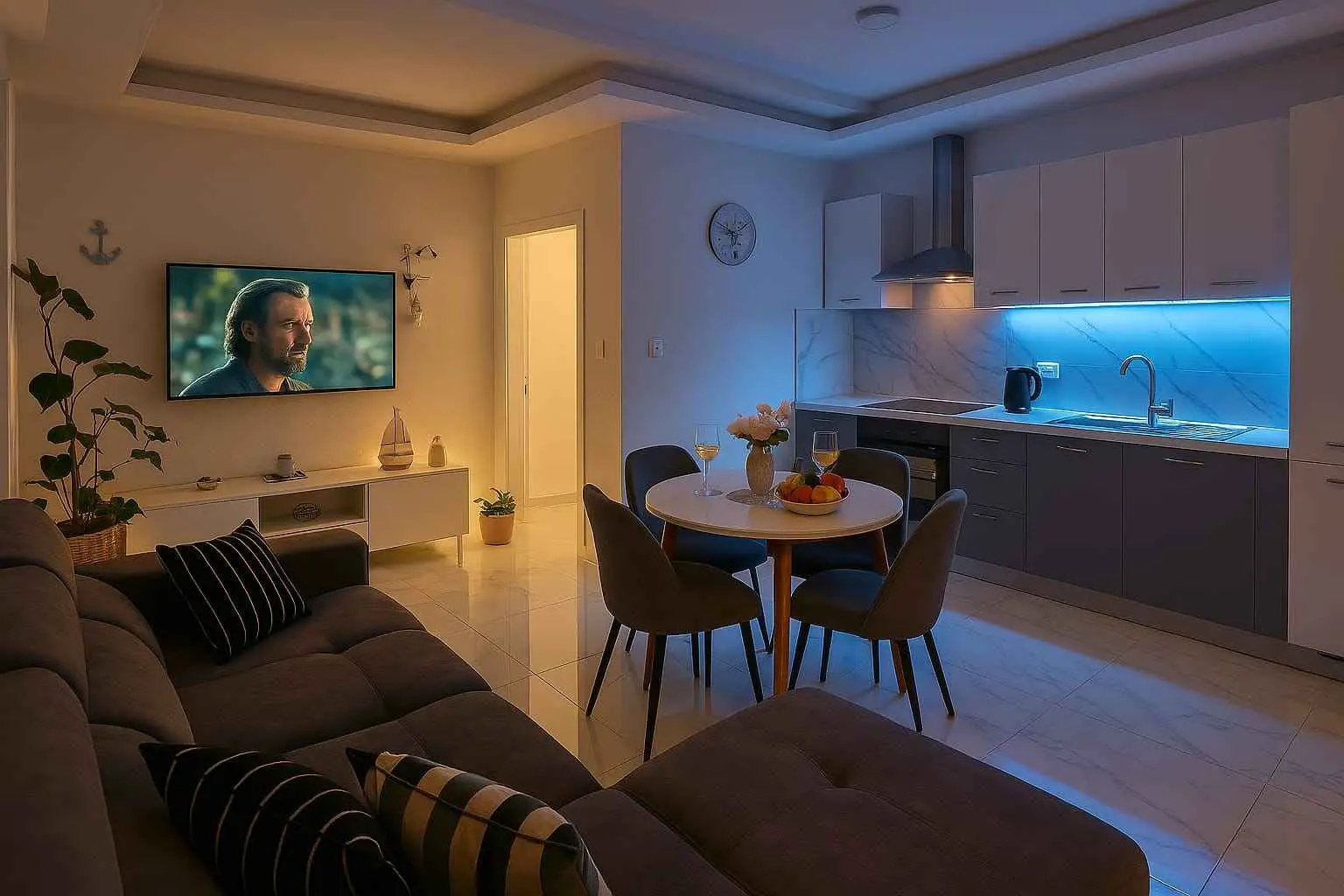 Das Apartment Helena Zadar wird dieses Jahr zum ersten Mal in einem ruhigen und friedlichen Teil von Zadar vermietet, ohne Lärm und Menschenmassen. Die Terrasse bietet einen wunderschönen Blick auf das Meer. Das Apartment mit zwei Schlafzimmern bietet Platz für 4 + 1 Personen und verfügt über Klimaanlage, WLAN, Waschmaschine, TV-Programme und Videothek. Alle Apartments sind neu eingerichtet und noch nie benutzt worden. Parkplätze sind vorhanden. In der Nähe befinden sich Geschäfte (200 m), der Strand (5 Minuten), Restaurants und Einkaufszentren.