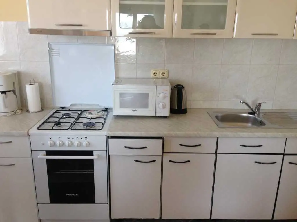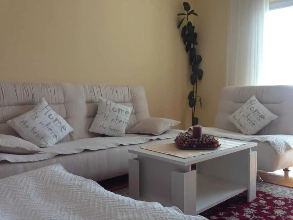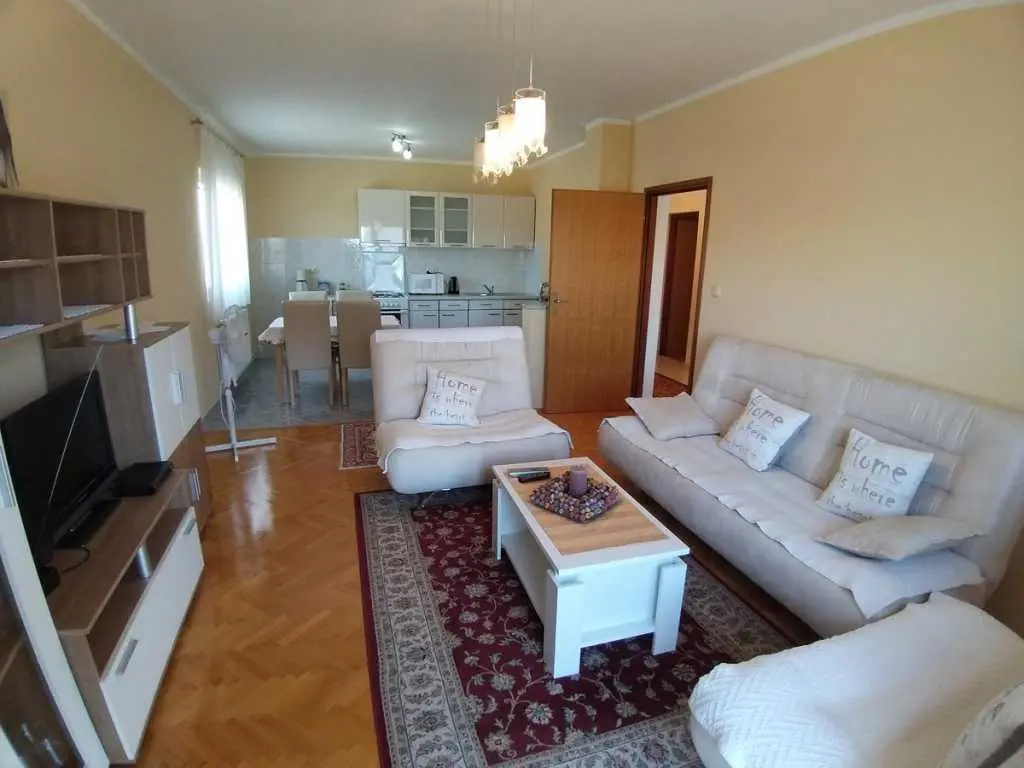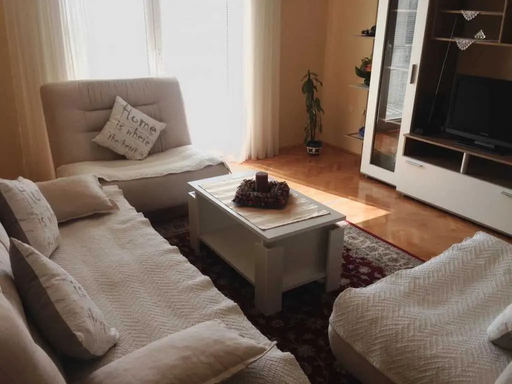 Große und komfortable Wohnung in einer ruhigen Gegend von Zadar, mit 2 Schlafzimmern mit Doppelbett, voll ausgestattete Küche und Wohnzimmer, großer Balkon mit Blick auf das Meer und das Panorama von Zadar. WLAN und private Parkplätze stehen zur Verfügung.