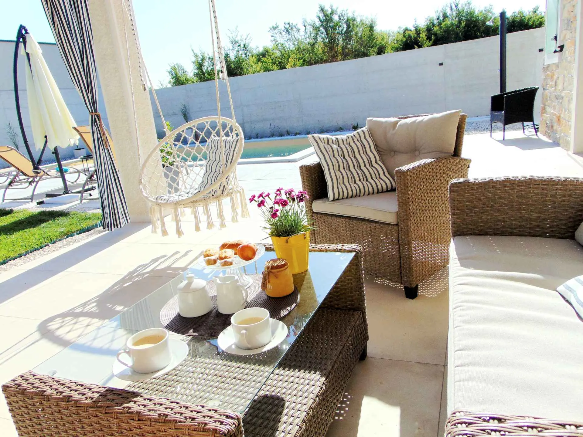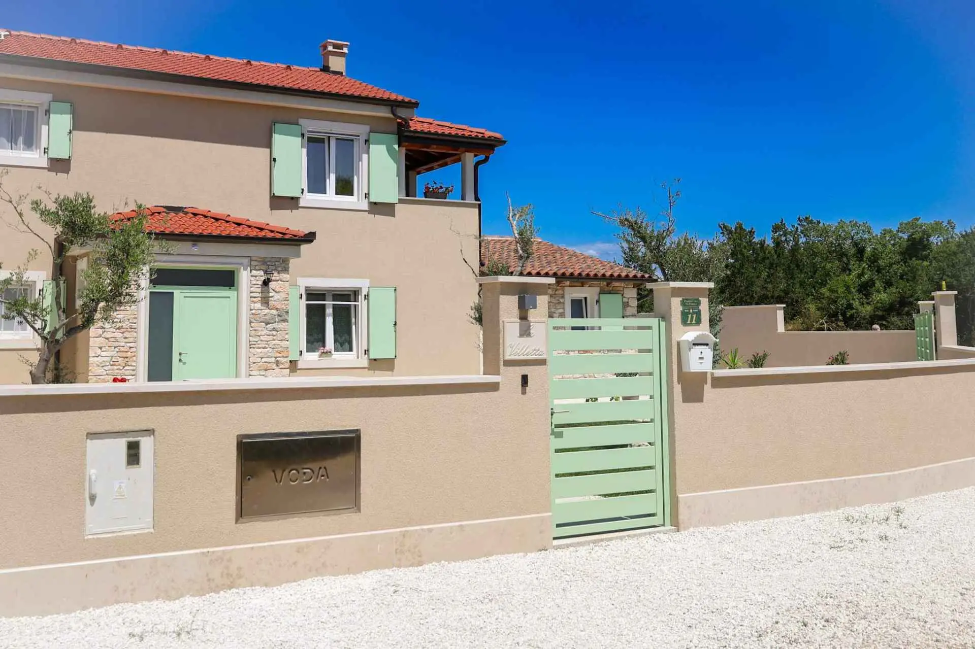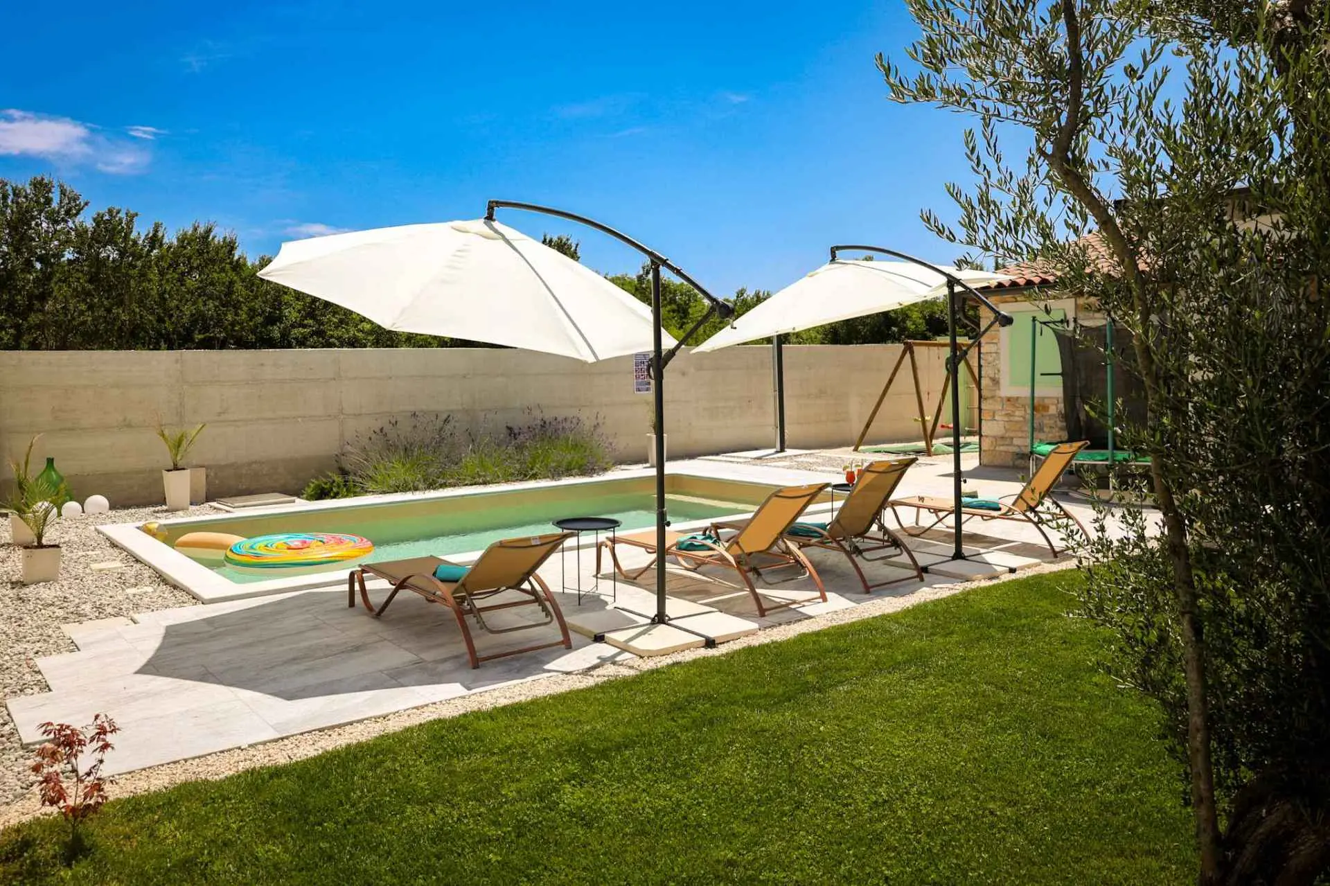 A wonderful holiday house in the fairytale town of Bale. The house has a fenced yard, a swimming pool with salt water, a children's playground, a summer kitchen with a fireplace and a gas grill, parking,... The house is fully equipped, all rooms are air-conditioned, 2 bedrooms and 2 bathrooms. In a quiet neighborhood, but only 300 m from the town center (shop, restaurant, bar, bakery, post office, doctor, pharmacy, ATM,...).