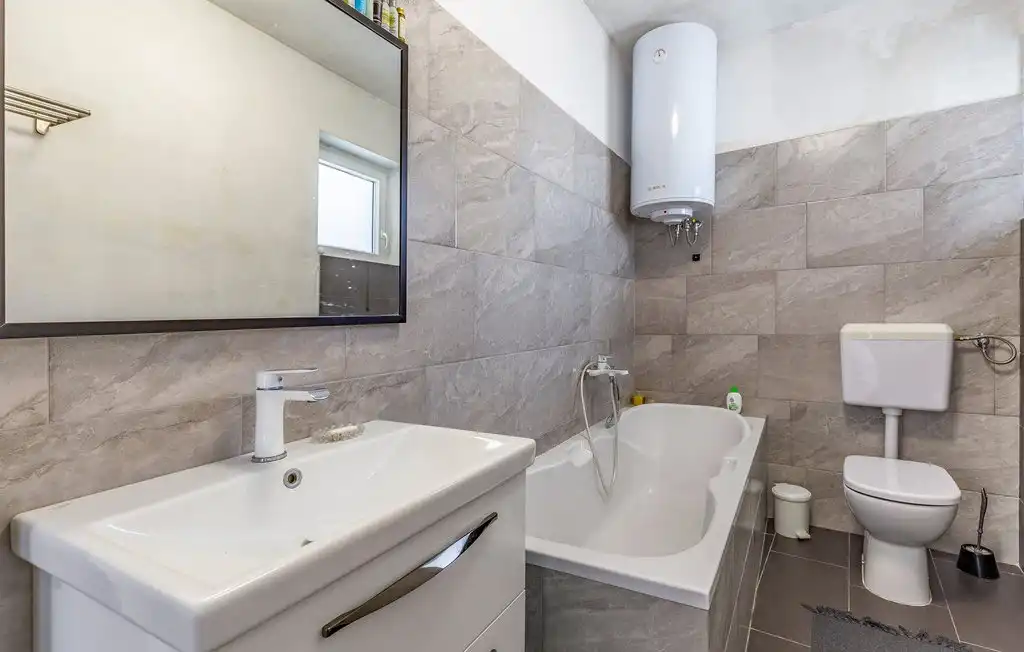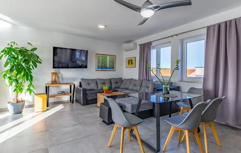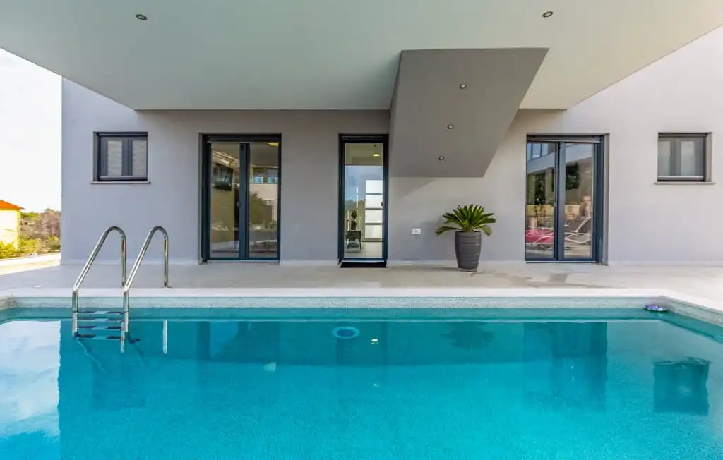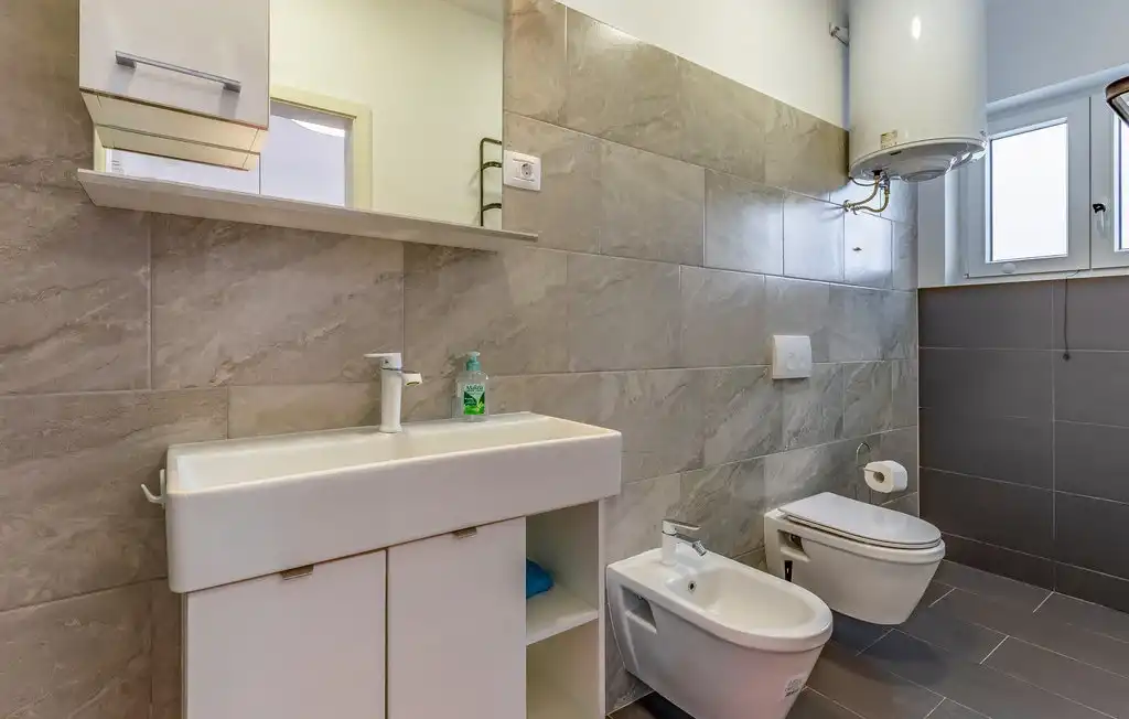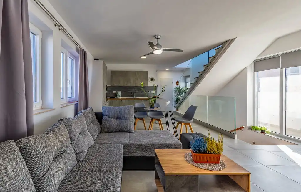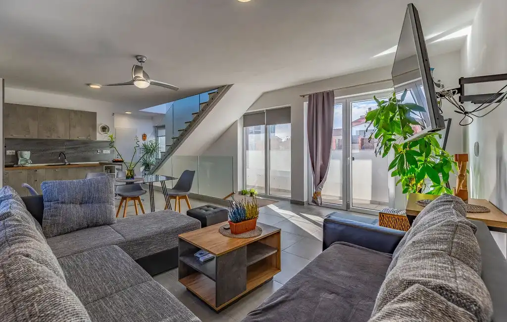 Sea-view duplex consisting of 3 bedrooms with en-suite bathrooms, 3 full bathrooms and one guest toilet, an open-space kitchen, living room, and a gallery with one extra bed, plus a large sea-view terrace. The house features a swimming pool and a fantastic hot tub where you can fully enjoy your moments of relaxation. The bright interiors and comfortable furnishings make this home the ideal place for a relaxing family holiday.