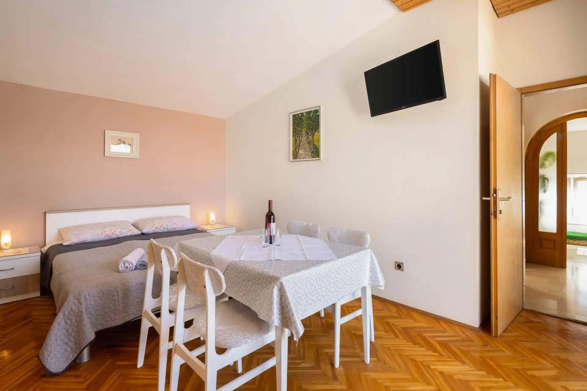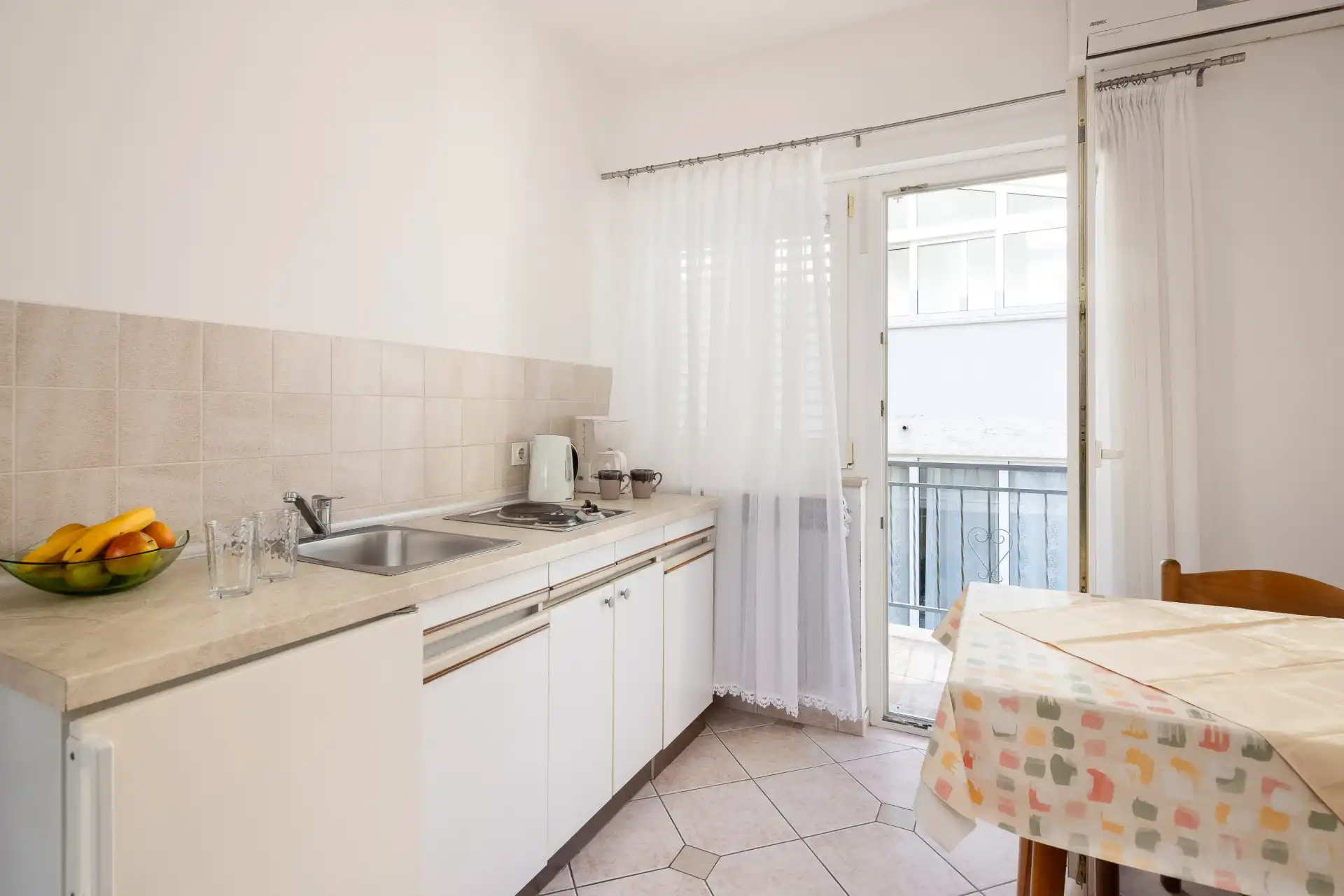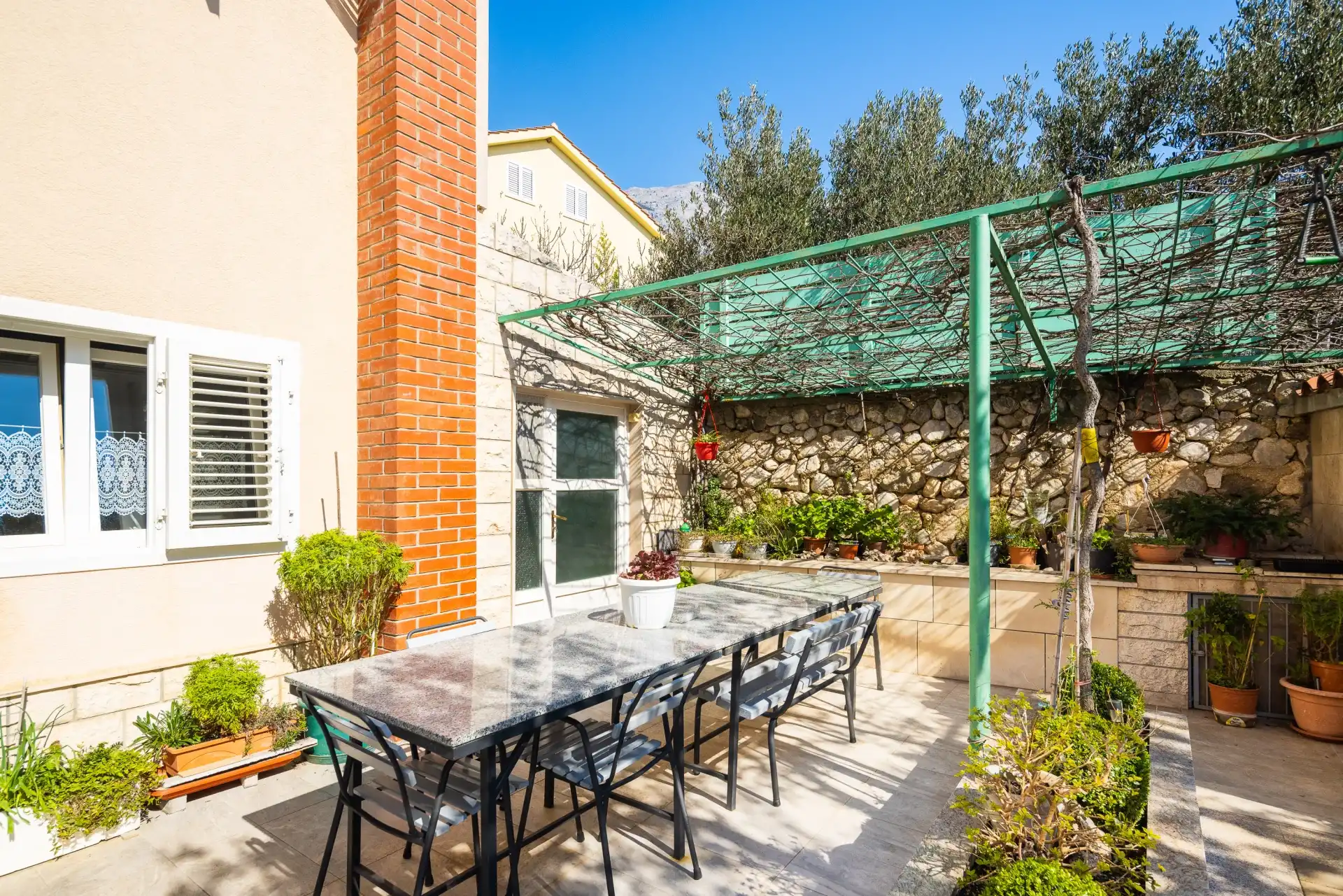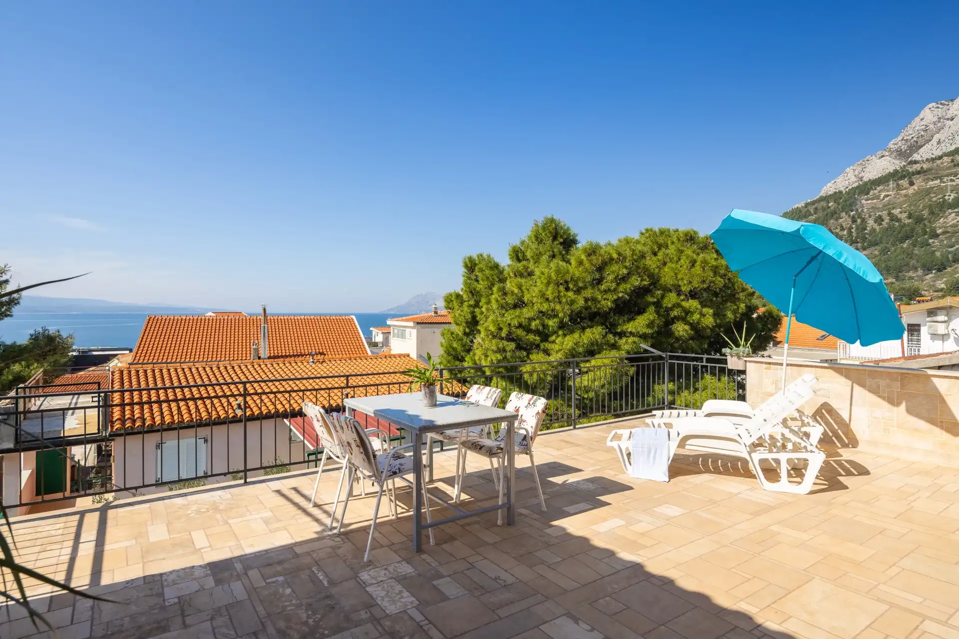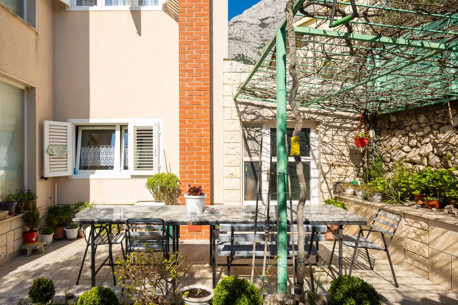 Apartments Drviš is located in a quiet part of Baška Voda and is ideal for couples or small families. It offers comfortable and practical accommodation with one bedroom, a bathroom, a fully equipped kitchen, a living area, and a small private balcony. It is suitable for 2 adults and one small child (up to 4 years old). Guests can enjoy a large shared terrace with a barbecue, private parking, and peaceful surroundings for a relaxing stay. Our staff is available throughout your stay for any help or advice.