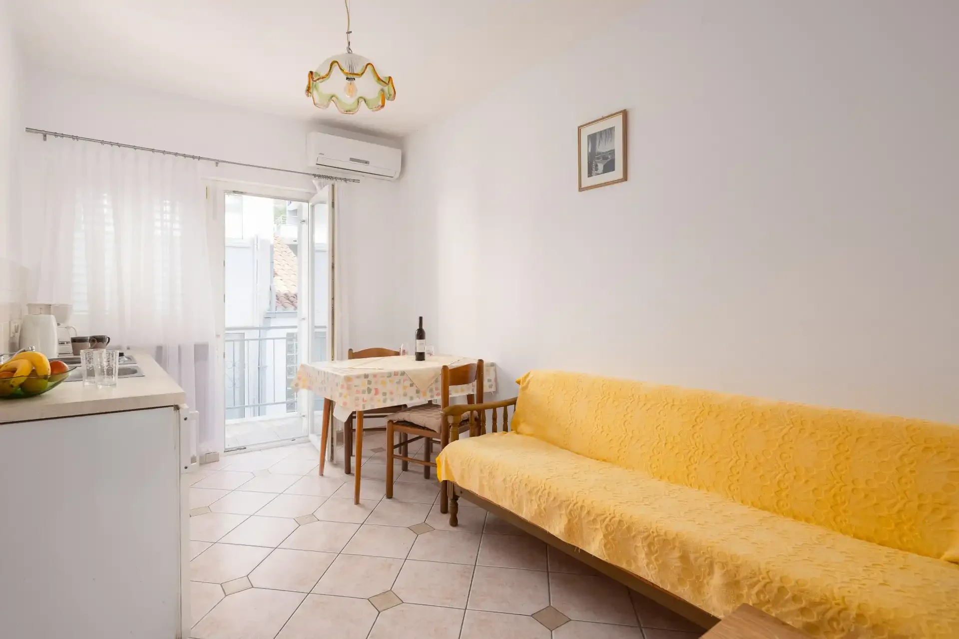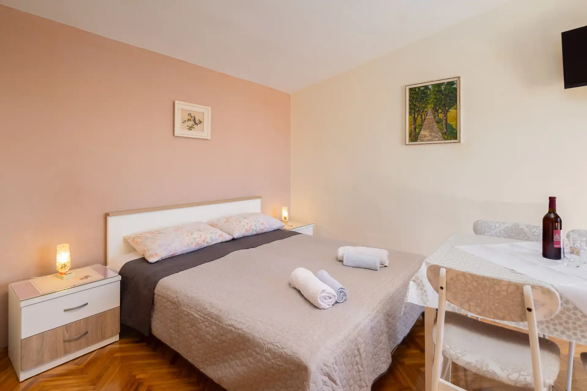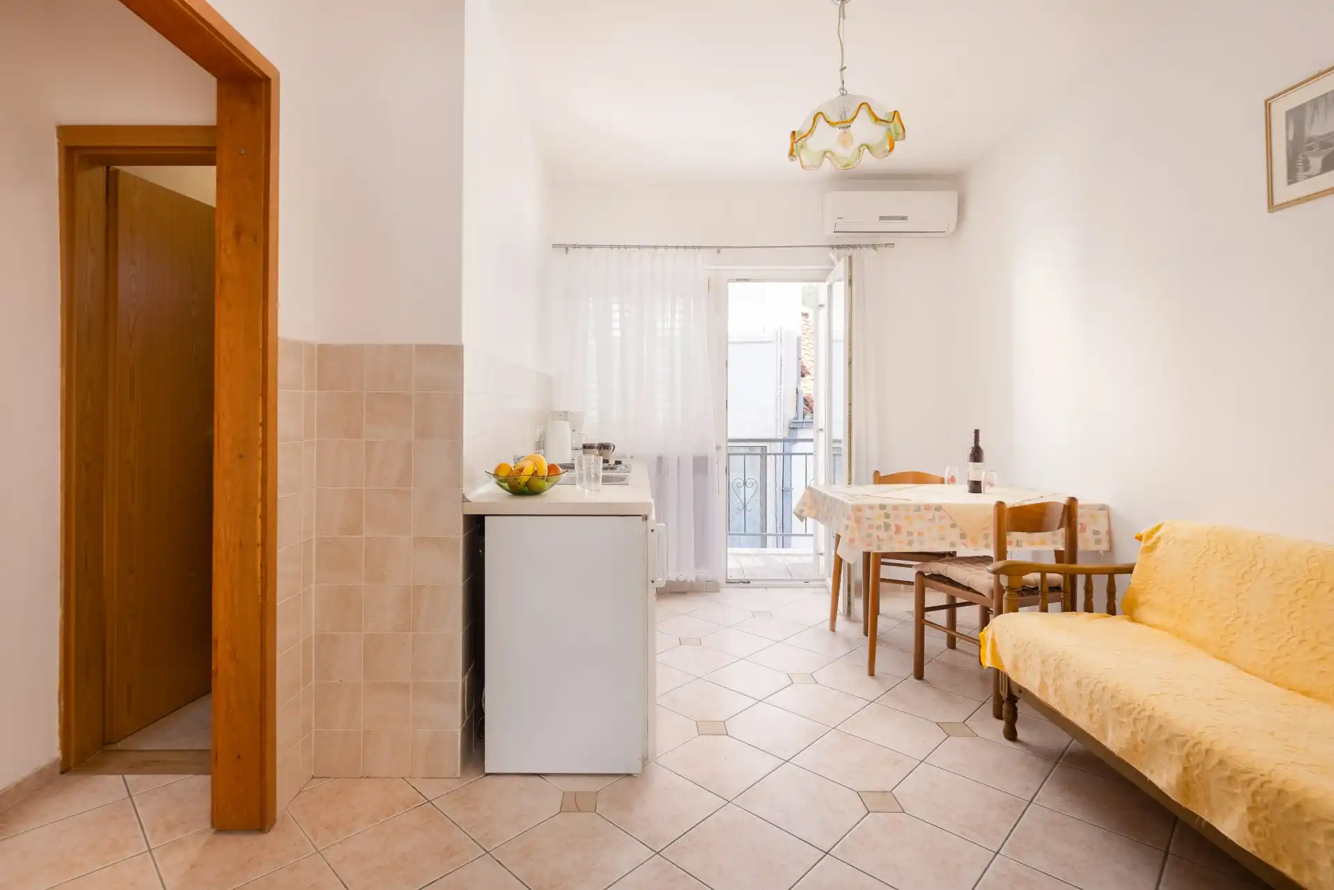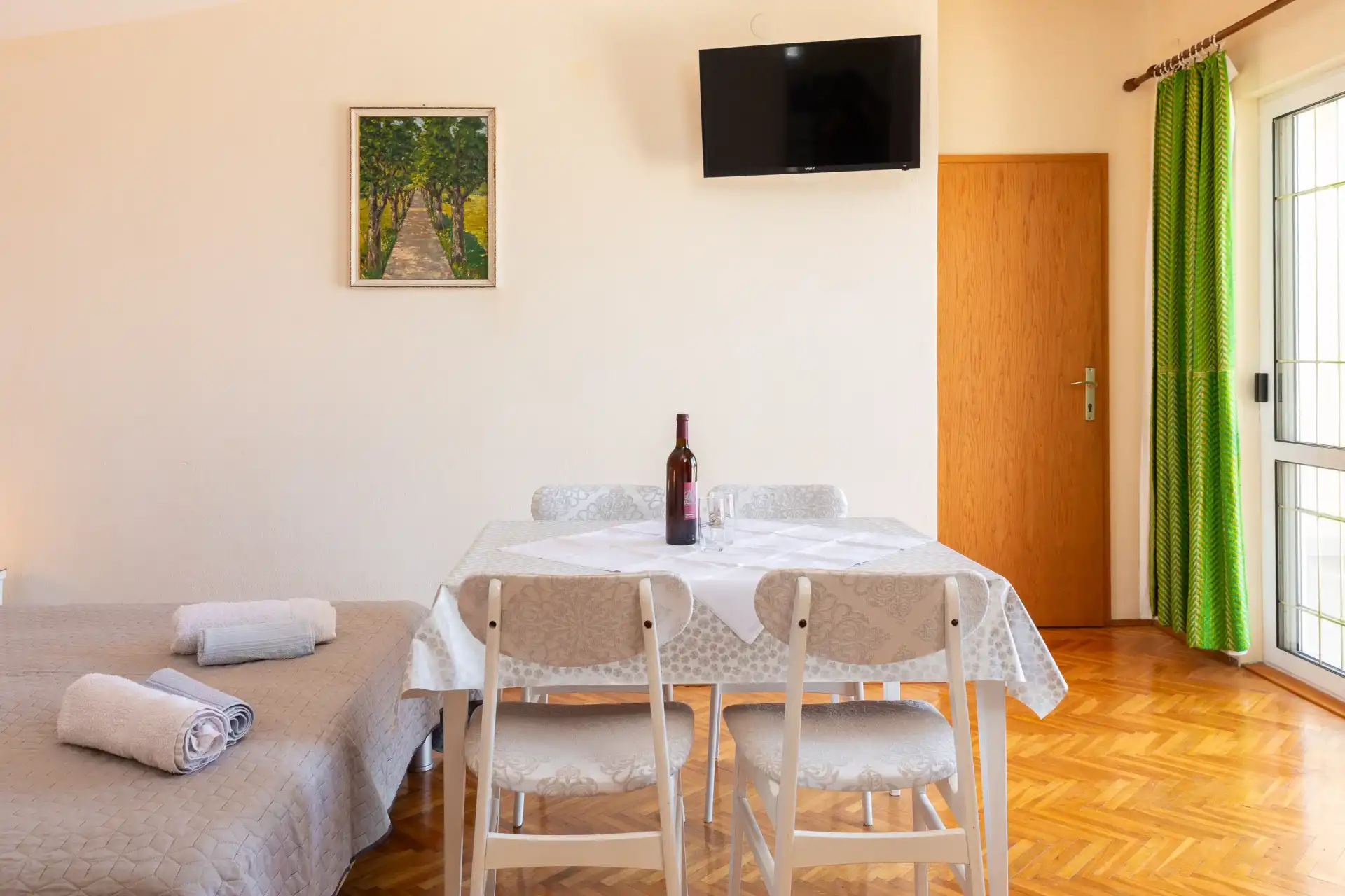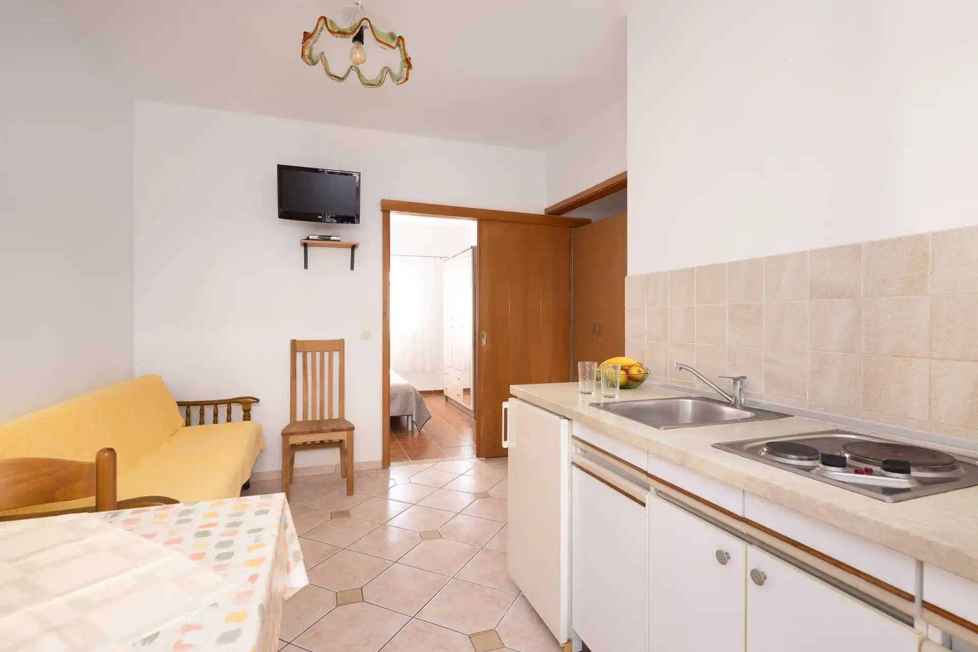 Apartments Drviš is located in a quiet part of Baška Voda and is ideal for couples or small families. It offers comfortable and practical accommodation with one bedroom, a bathroom, a fully equipped kitchen, a living area, and a small private balcony. It is suitable for 2 adults and one small child (up to 4 years old). Guests can enjoy a large shared terrace with a barbecue, private parking, and peaceful surroundings for a relaxing stay. Our staff is available throughout your stay for any help or advice.