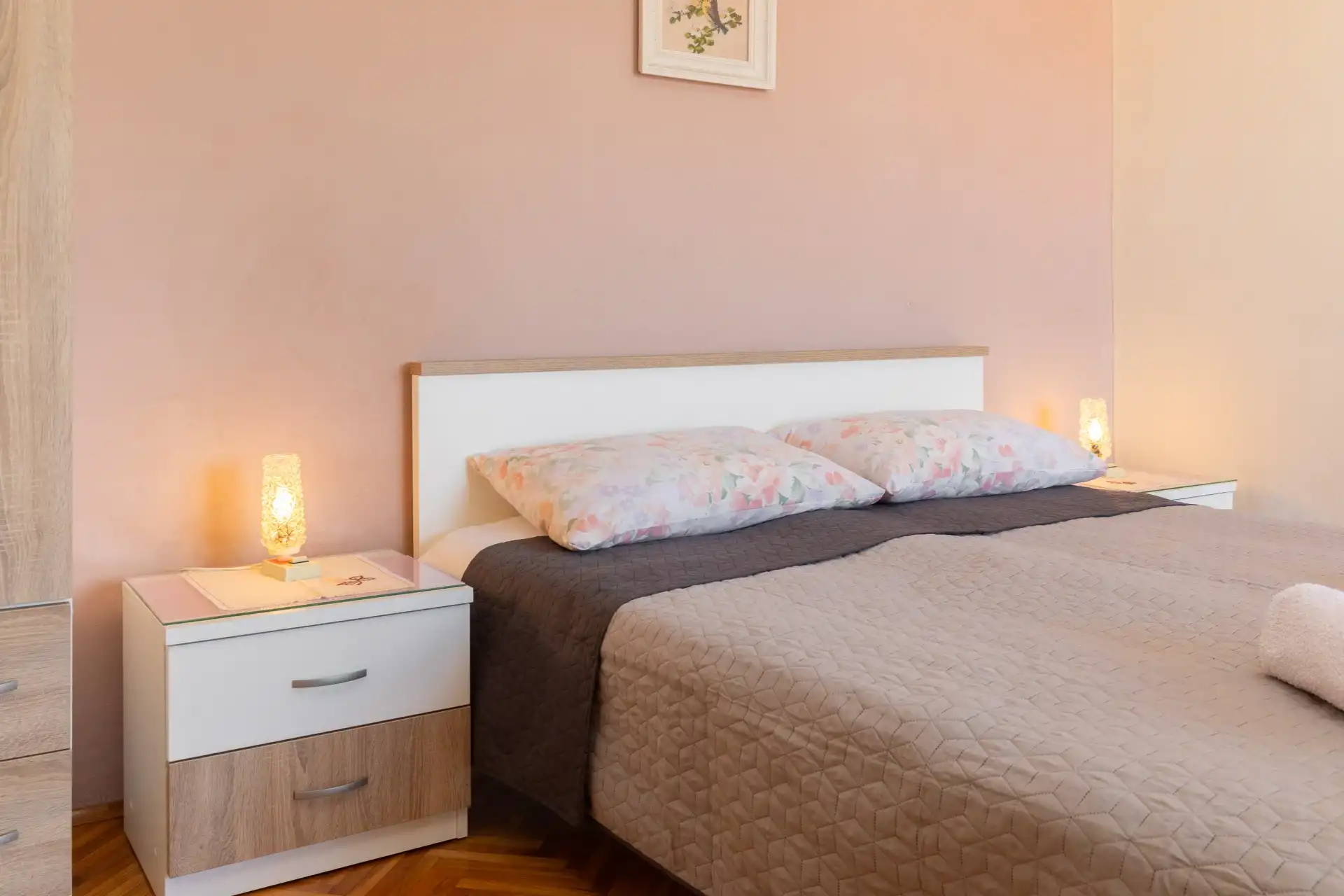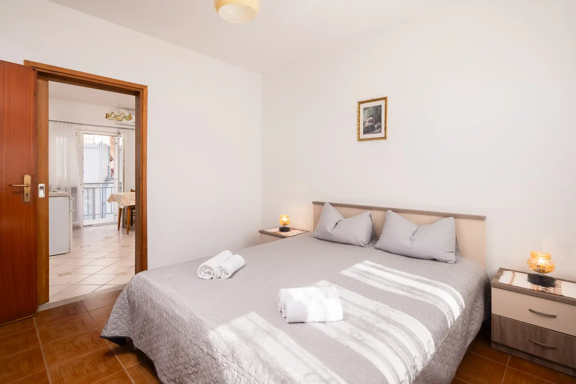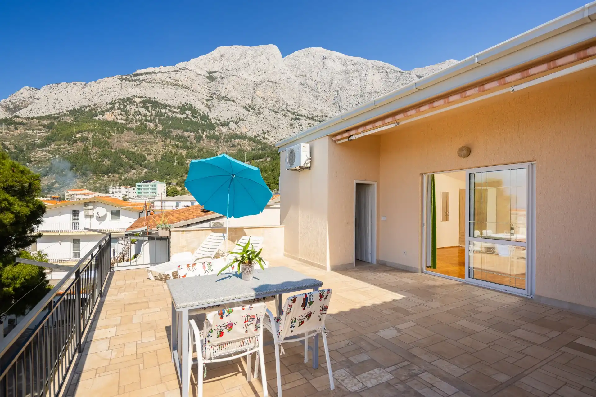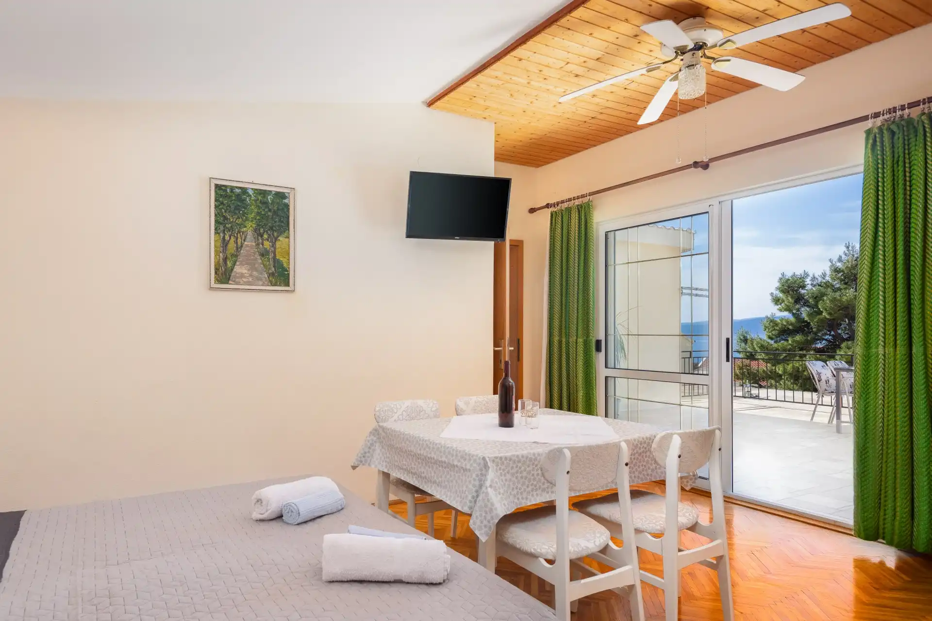 Apartments Drviš is located in a quiet part of Baška Voda and is ideal for couples or small families. It offers comfortable and practical accommodation with one bedroom, a bathroom, a fully equipped kitchen, a living area, and a small private balcony. It is suitable for 2 adults and one small child (up to 4 years old). Guests can enjoy a large shared terrace with a barbecue, private parking, and peaceful surroundings for a relaxing stay. Our staff is available throughout your stay for any help or advice.