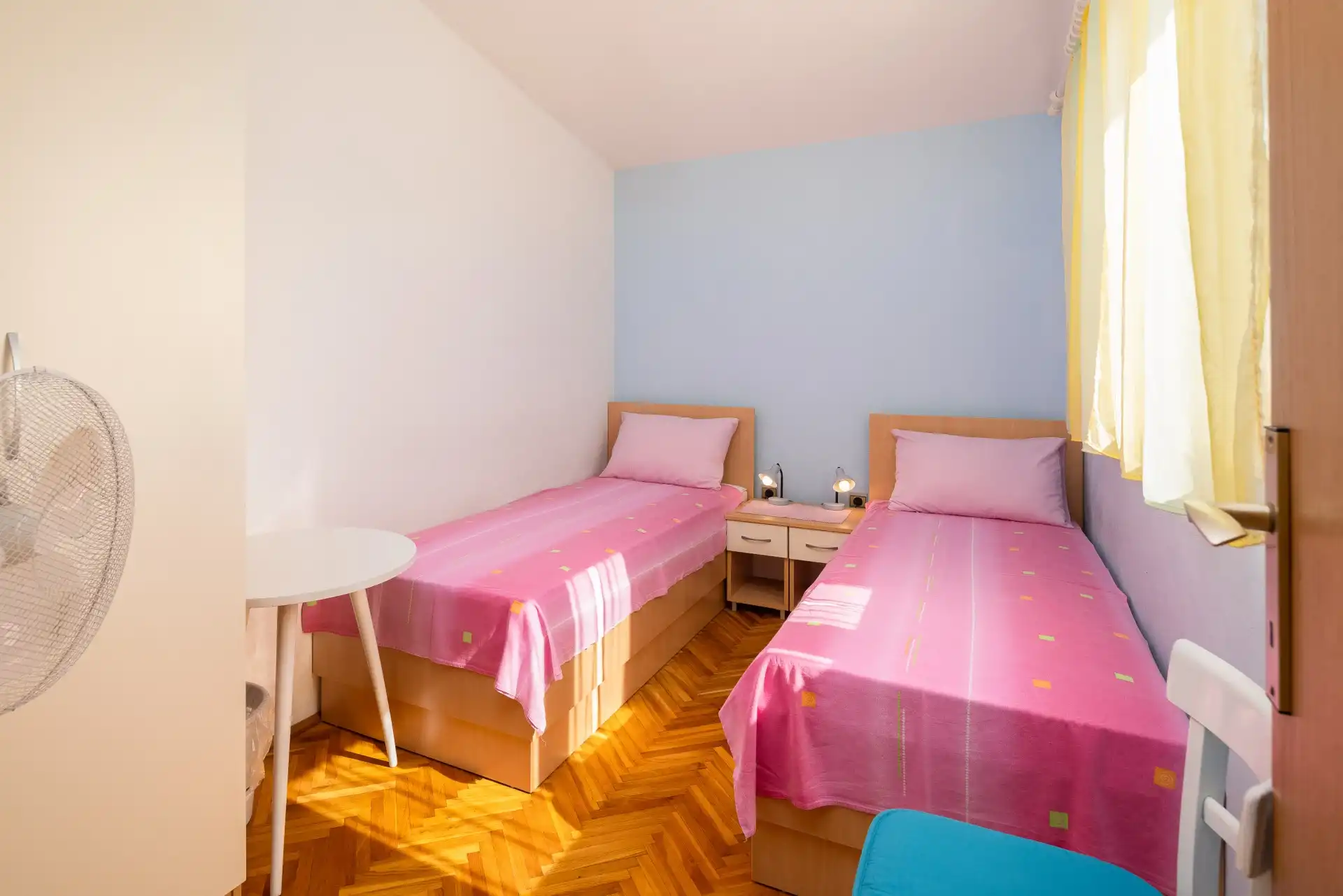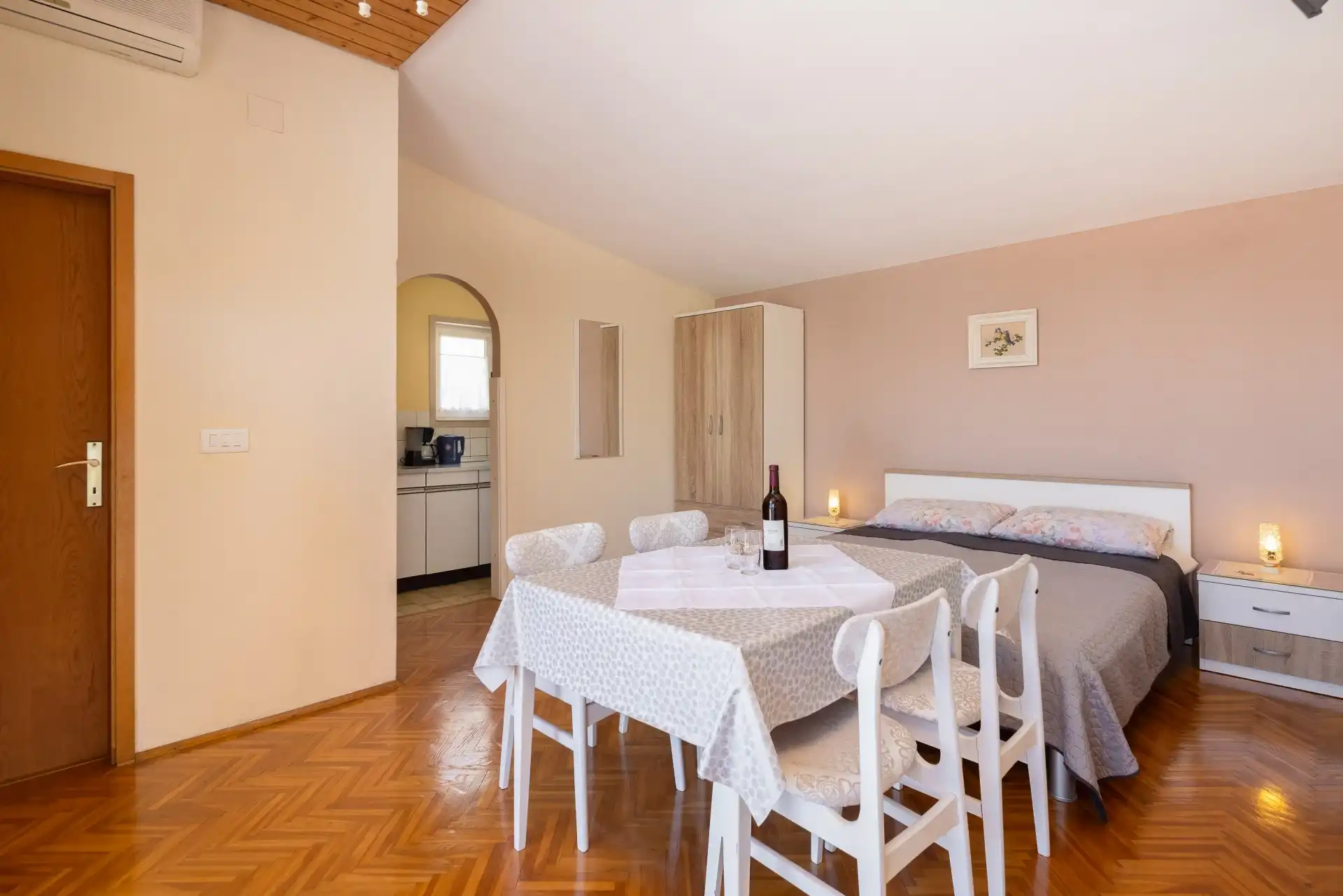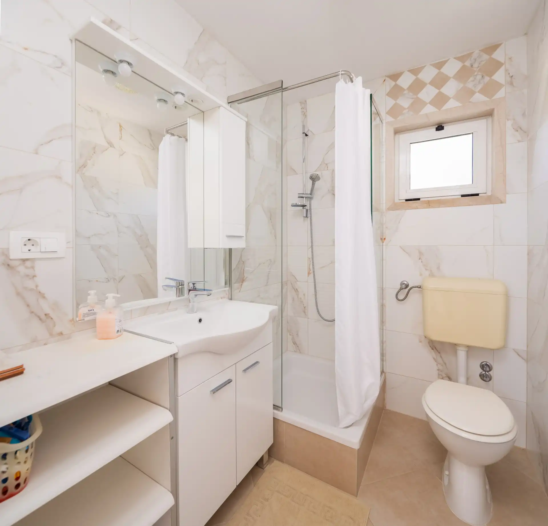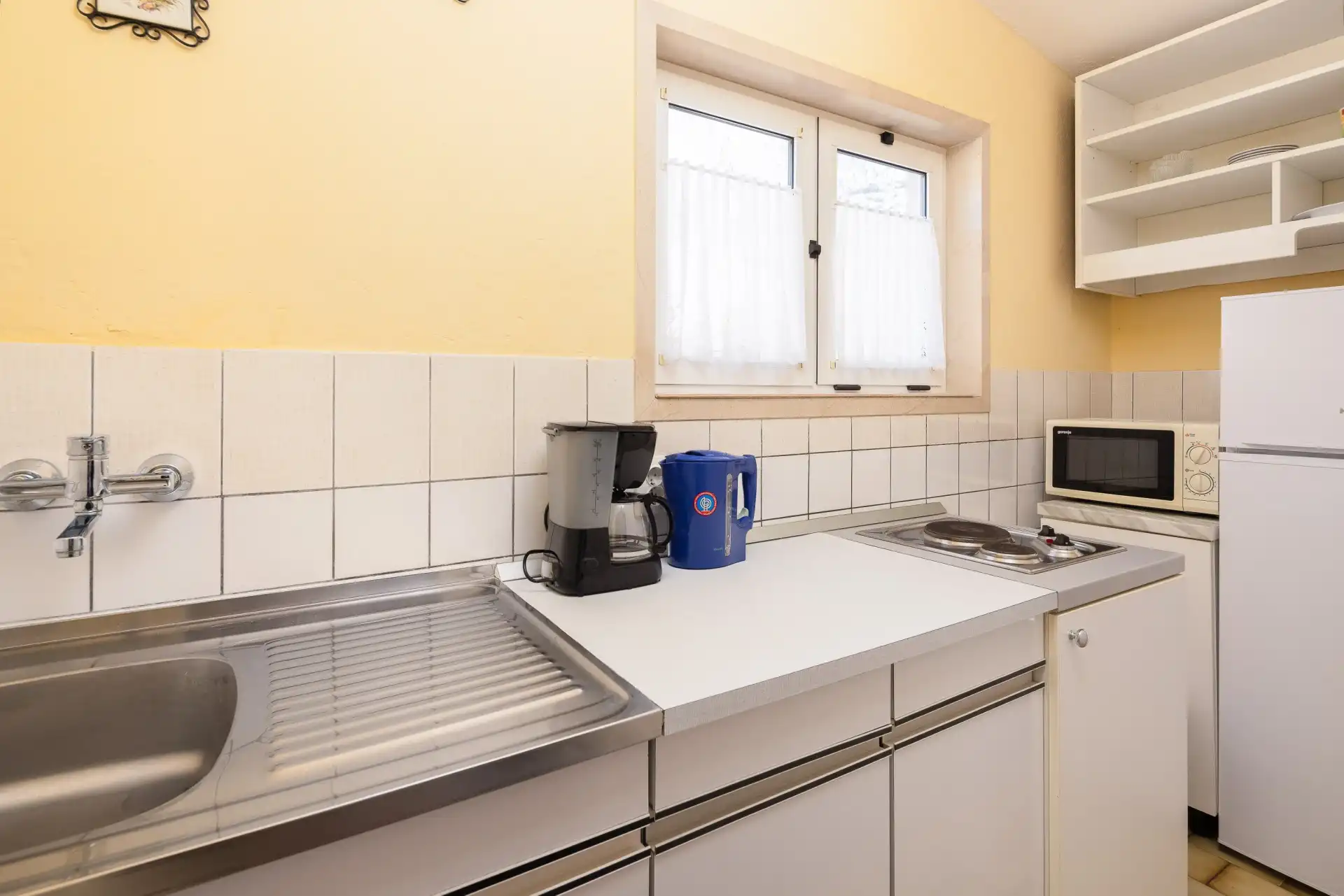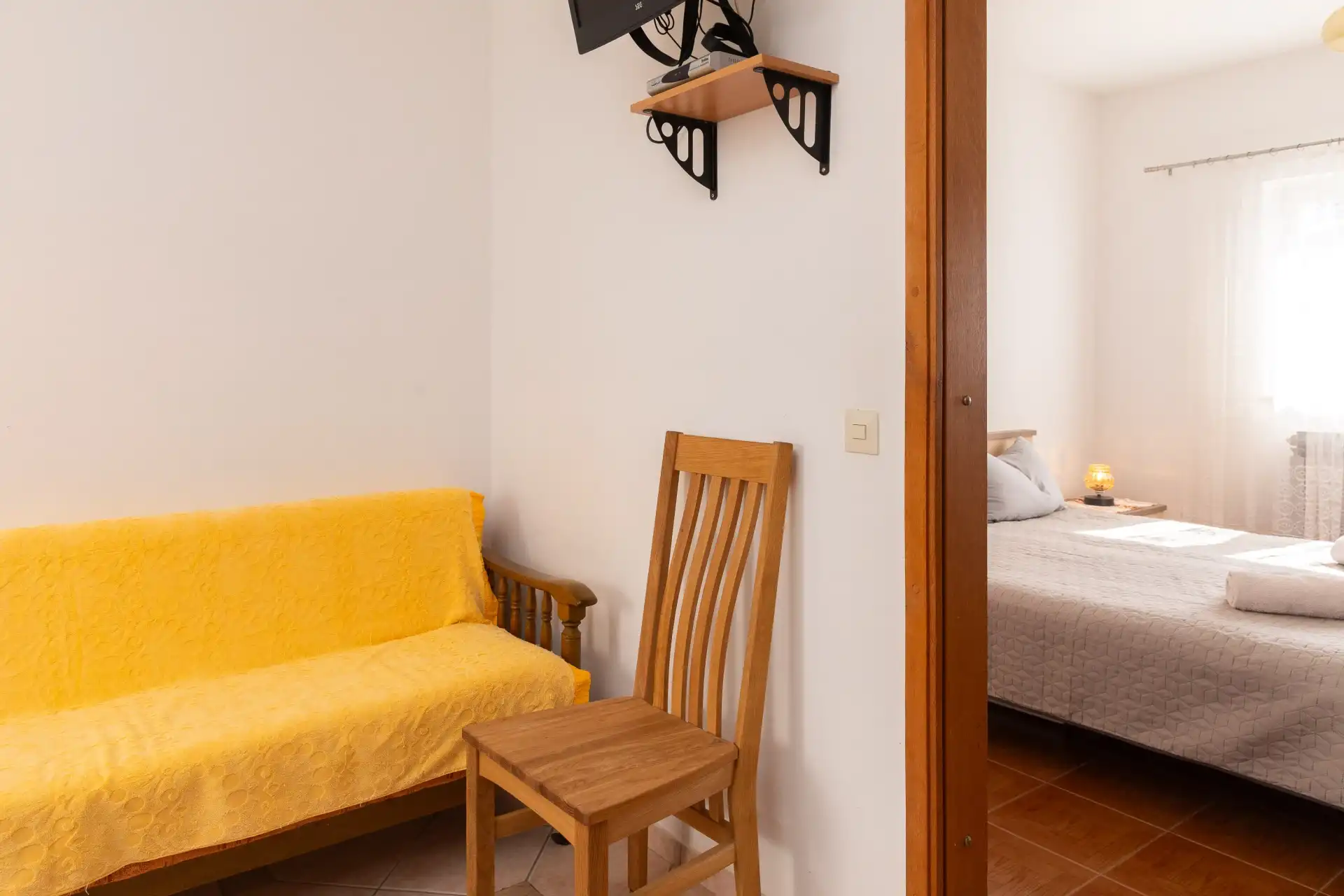 Apartments Drviš is located in a quiet part of Baška Voda and is ideal for couples or small families. It offers comfortable and practical accommodation with one bedroom, a bathroom, a fully equipped kitchen, a living area, and a small private balcony. It is suitable for 2 adults and one small child (up to 4 years old). Guests can enjoy a large shared terrace with a barbecue, private parking, and peaceful surroundings for a relaxing stay. Our staff is available throughout your stay for any help or advice.
