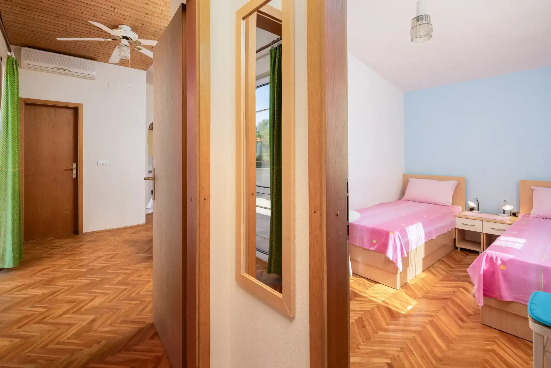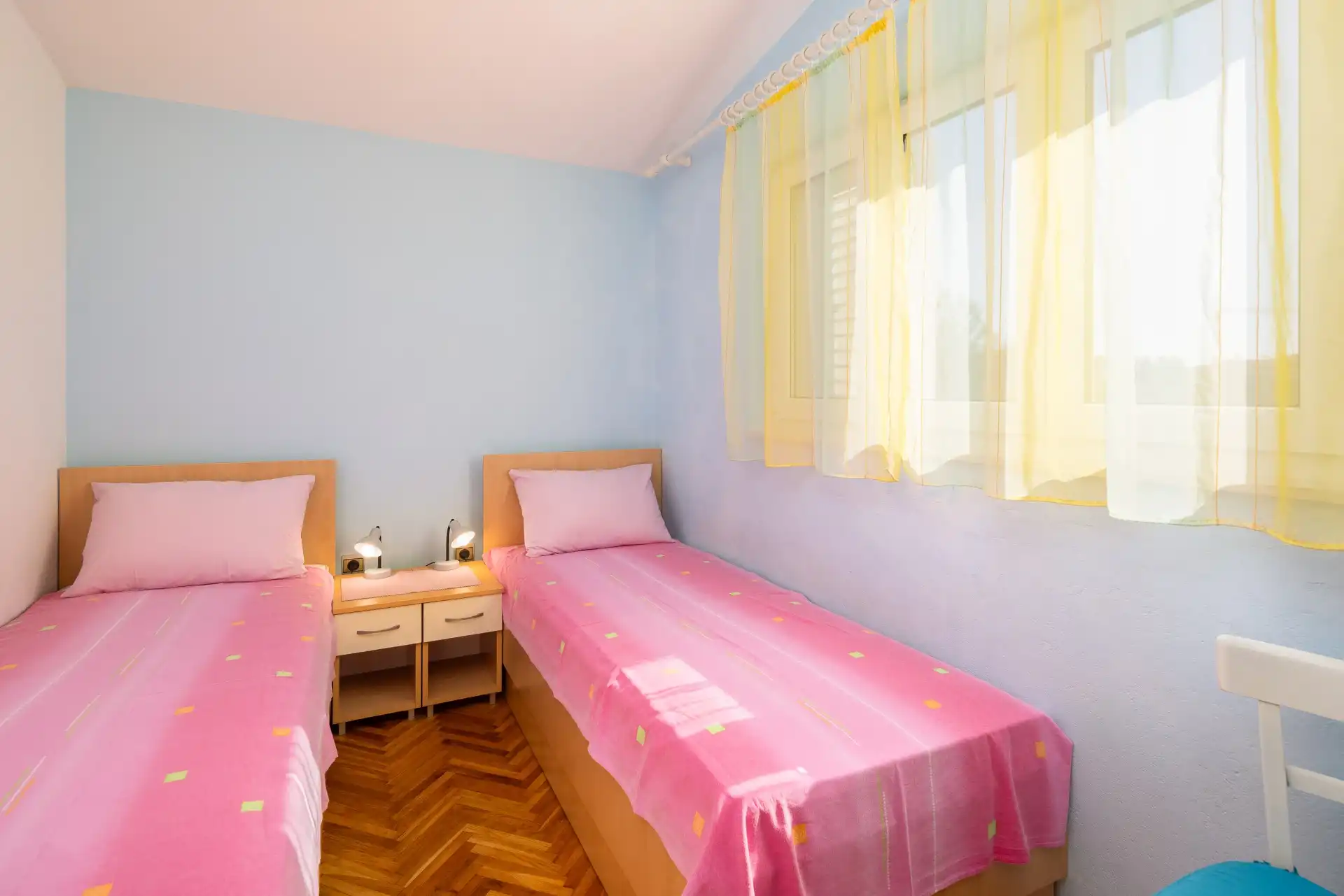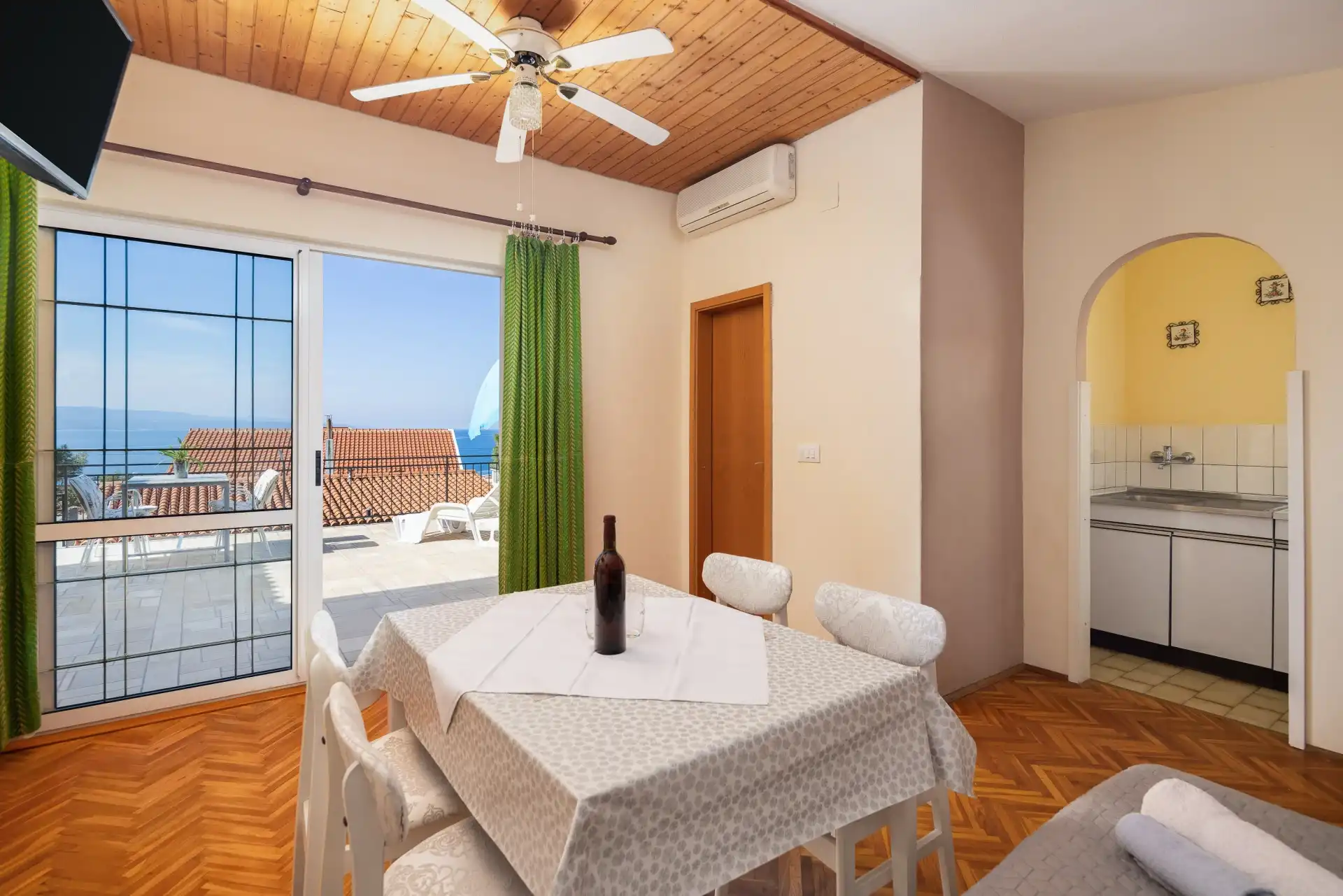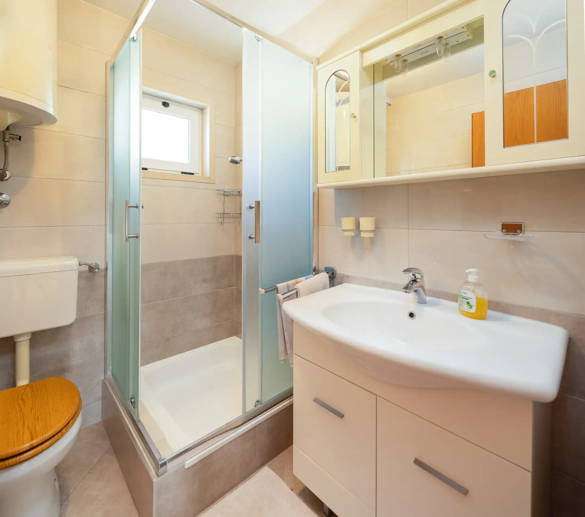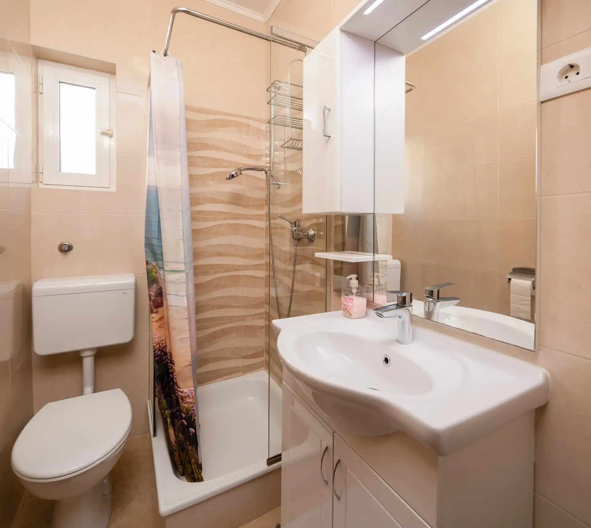 Apartments Drviš is located in a quiet part of Baška Voda and is ideal for couples or small families. It offers comfortable and practical accommodation with one bedroom, a bathroom, a fully equipped kitchen, a living area, and a small private balcony. It is suitable for 2 adults and one small child (up to 4 years old). Guests can enjoy a large shared terrace with a barbecue, private parking, and peaceful surroundings for a relaxing stay. Our staff is available throughout your stay for any help or advice.