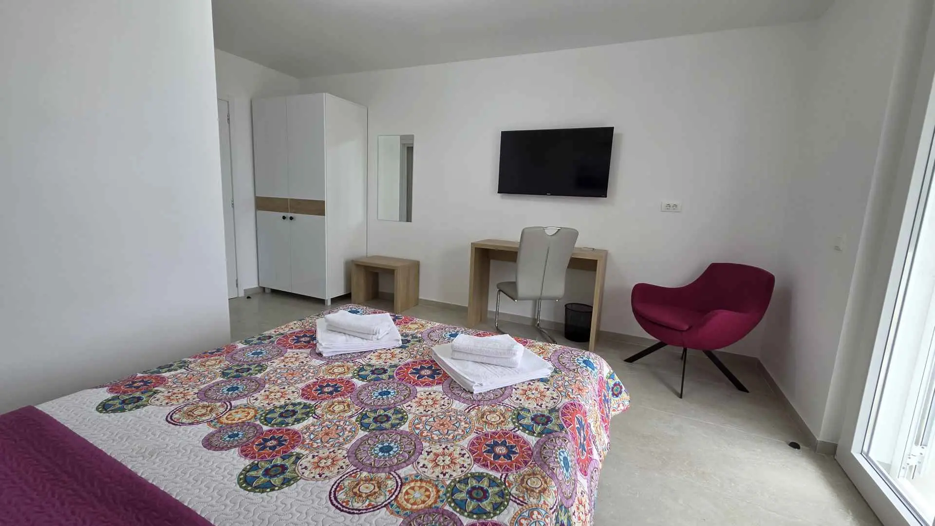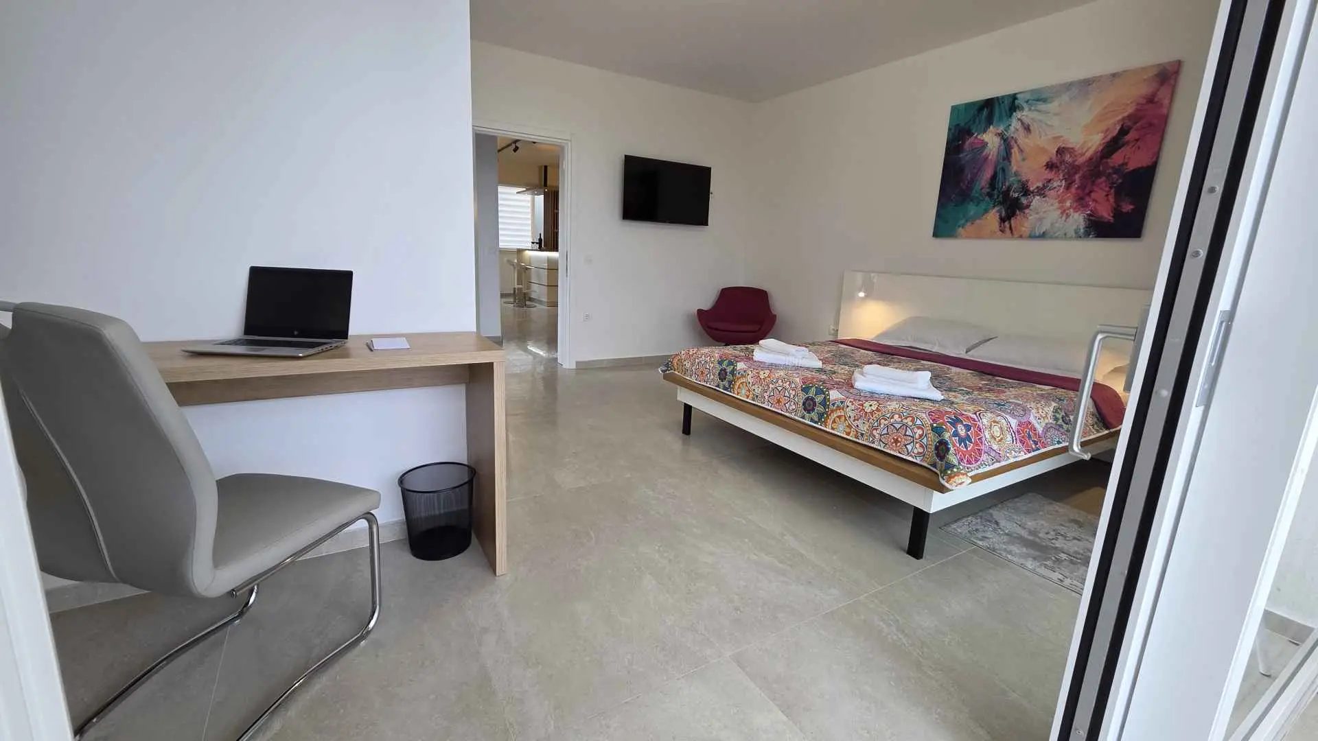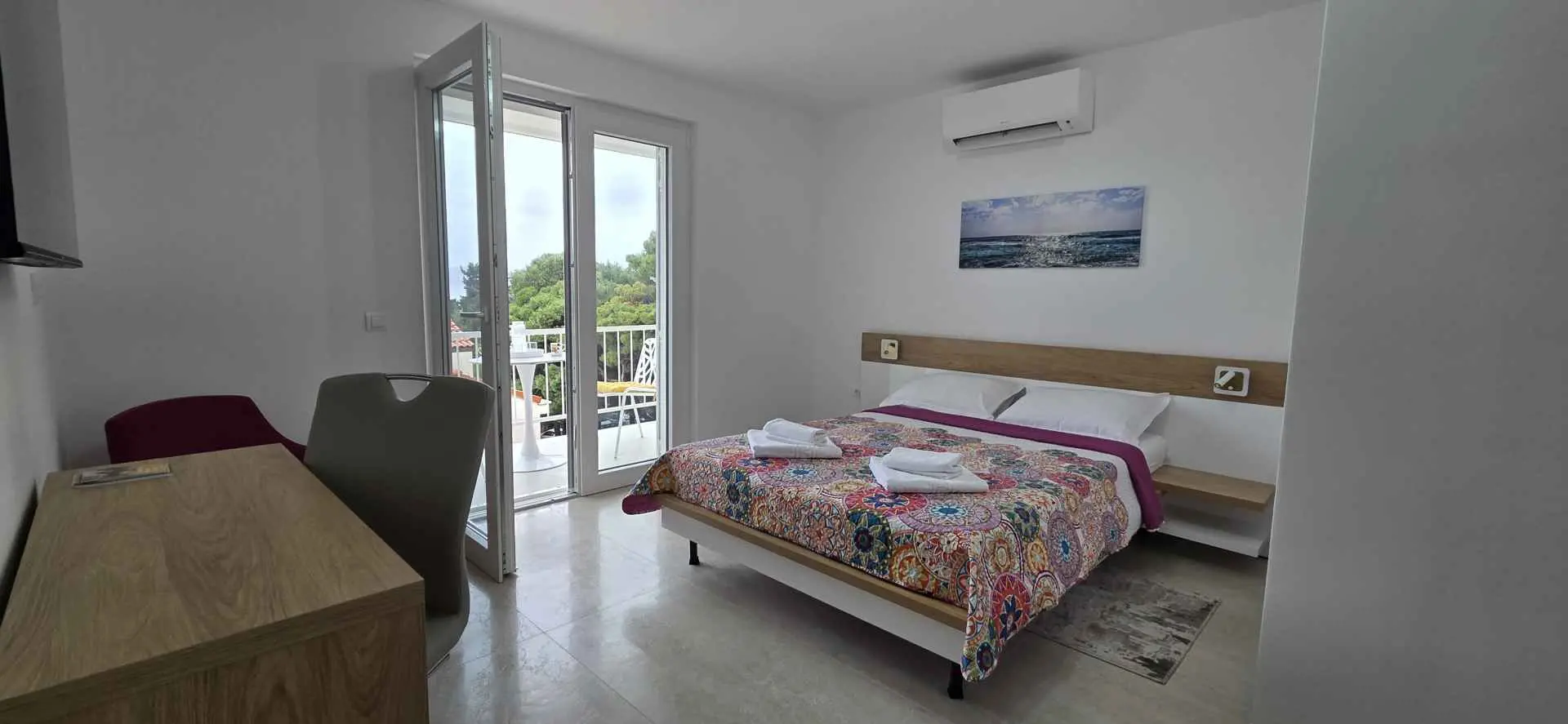 Apartment Minerva – Modern accommodation in Brela, Makarska Riviera Apartment Minerva is located in the very center of Brela, a charming seaside town on the Makarska Riviera, just 150 meters from the beach and a short walk from the famous Punta Rata Beach, one of the most beautiful beaches in Croatia. The apartment has 110 m² of space, fully renovated and tastefully furnished, ideal for 6 to 8 guests. It features 3 bedrooms, each with a private bathroom (two rooms have balconies with sea views), a spacious living room with a bar and dining area, and a fully equipped kitchen. ✔️ Air conditioning and smart TV in every room ✔️ Free Wi-Fi ✔️ 2 parking spaces nearby ✔️ Kitchen with induction cooktop, oven, twin-side refrigerator, microwave, espresso machine, kettle, and dishes for 10 people ✔️ Located near restaurants, shops, and seaside promenades Perfect for families or groups looking for a relaxing holiday on the Croatian coast, with all the comforts of home — right in the heart of the Makarska Riviera.