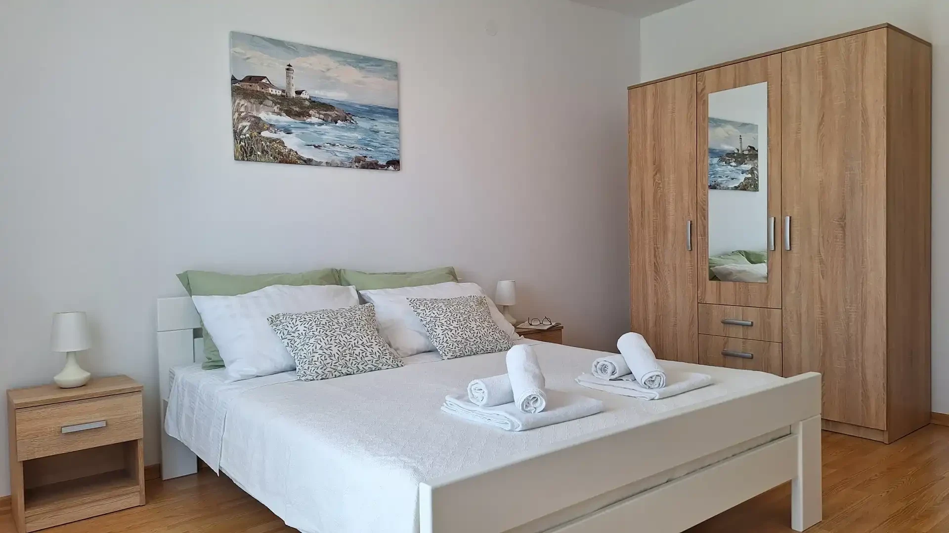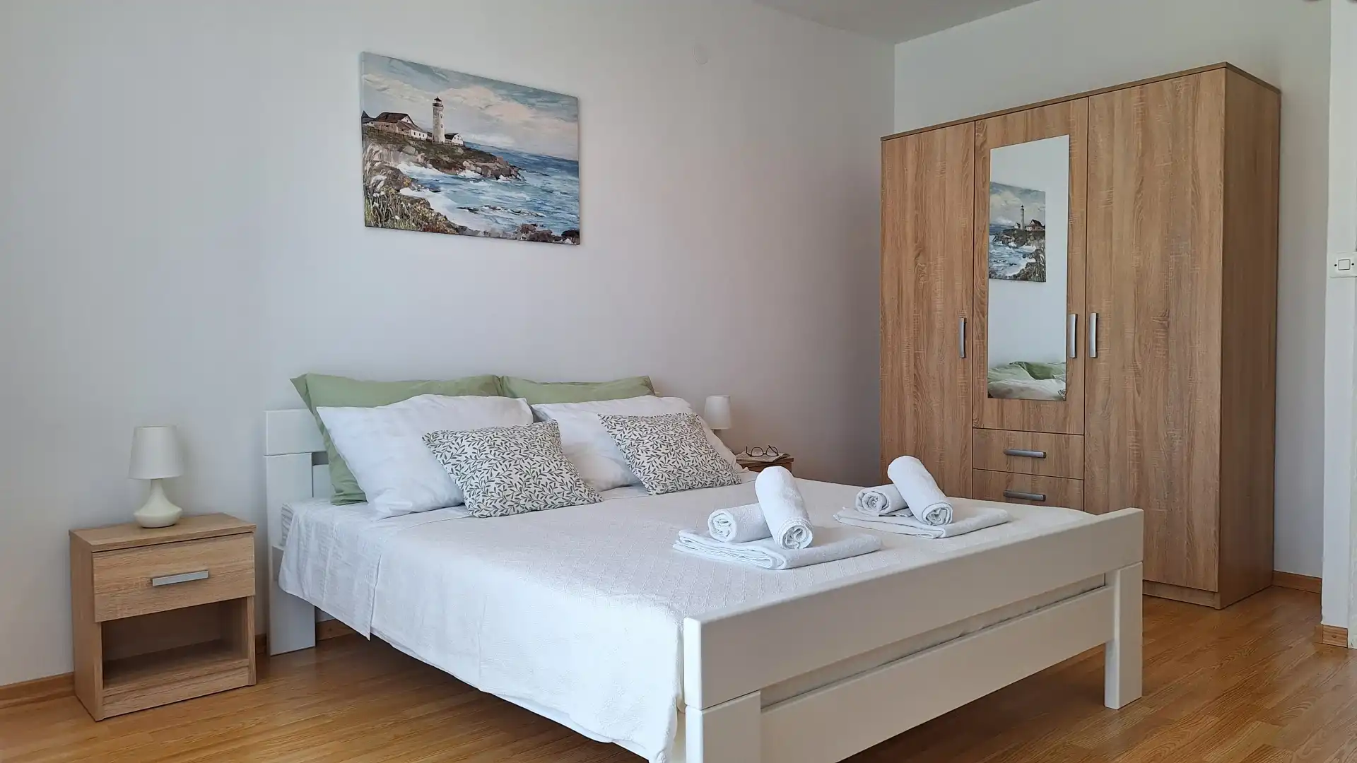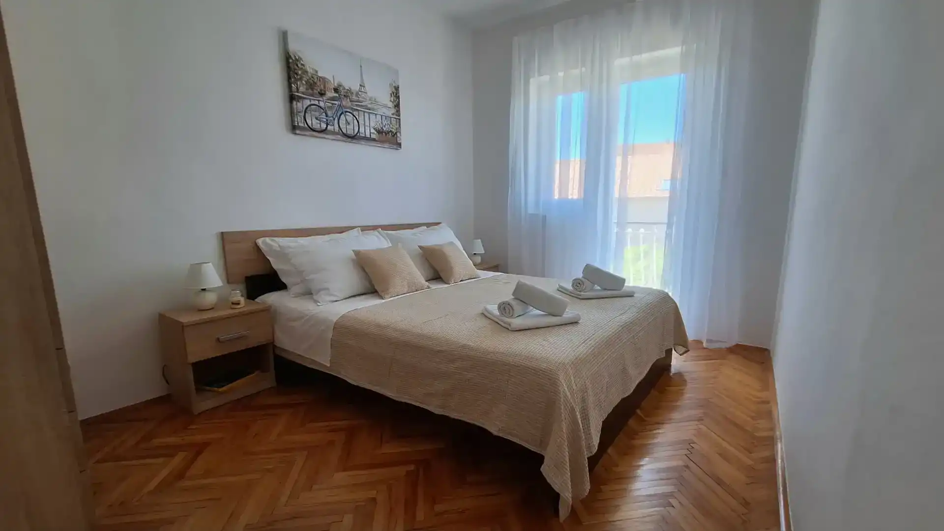 The apartment is located in a family house, in a quiet part of Brodarica, 100 meters from the beach. The apartment has a free parking space. The apartment is equipped with air conditioning, internet, satellite receiver, etc. The price includes bed linen and a welcome drink. The distance from the city of Šibenik is 5 km, Solaris Resort 3 km, highway 5 km, shopping center 3 km. In Šibenik and the surrounding area there is a rich offer of cultural and historical heritage and natural beauties, national parks Krka and Kornati. To get to the beach you do not need to cross the road.