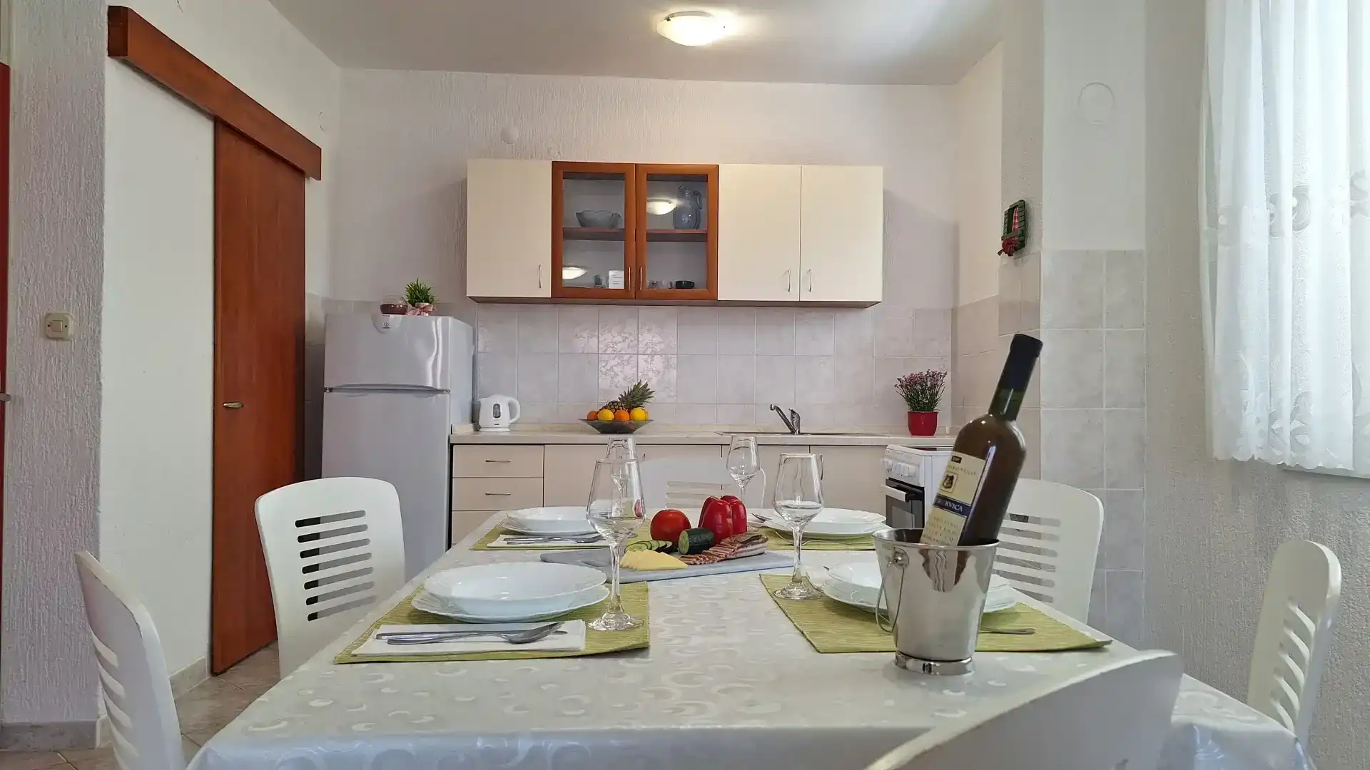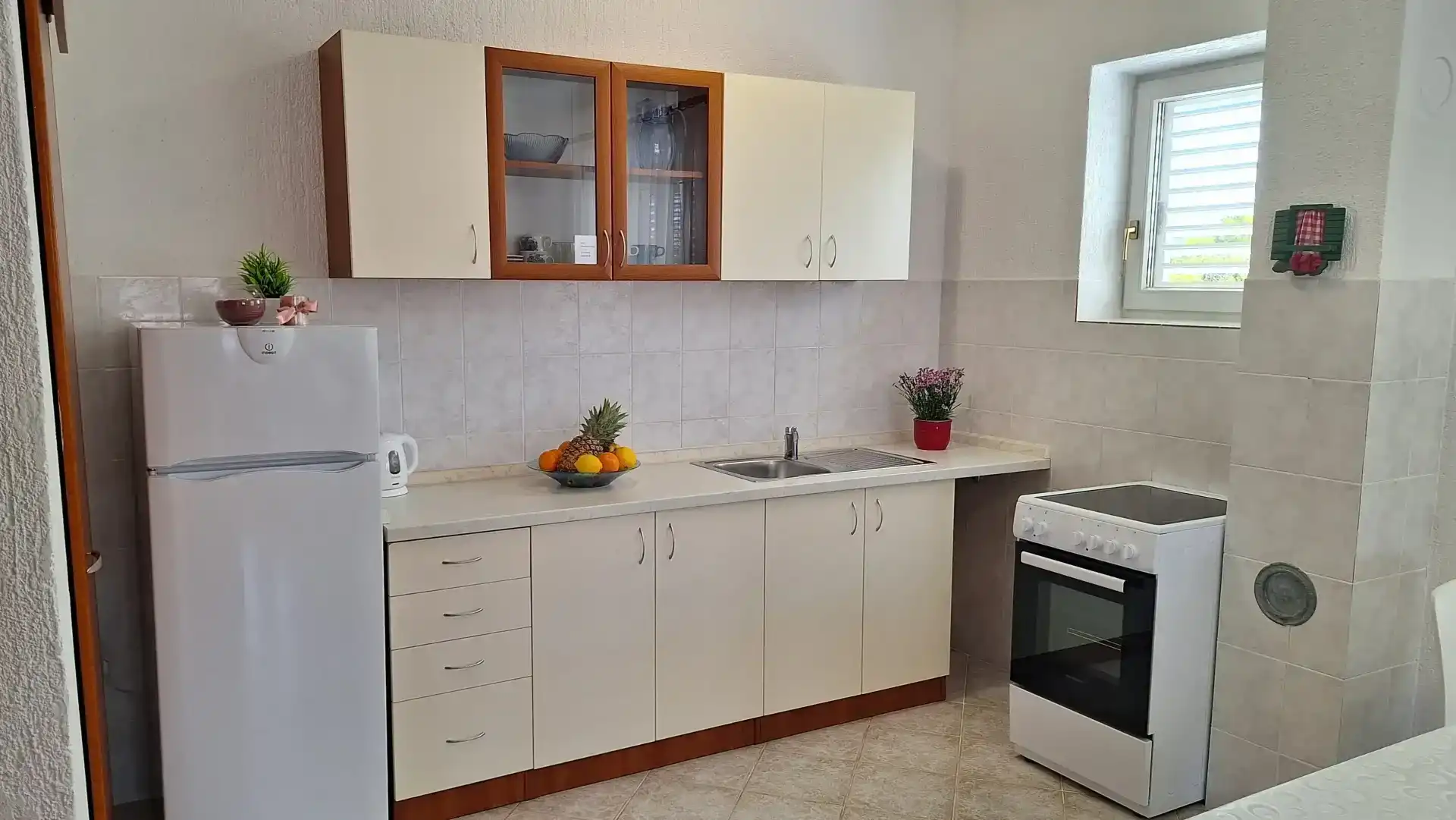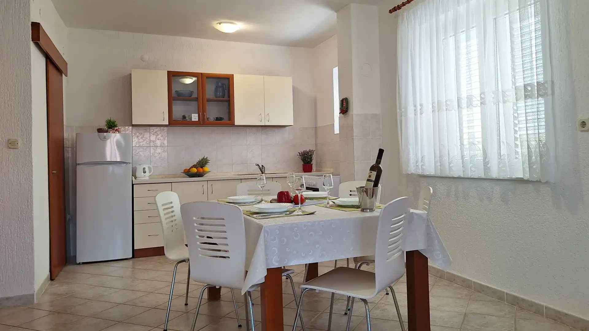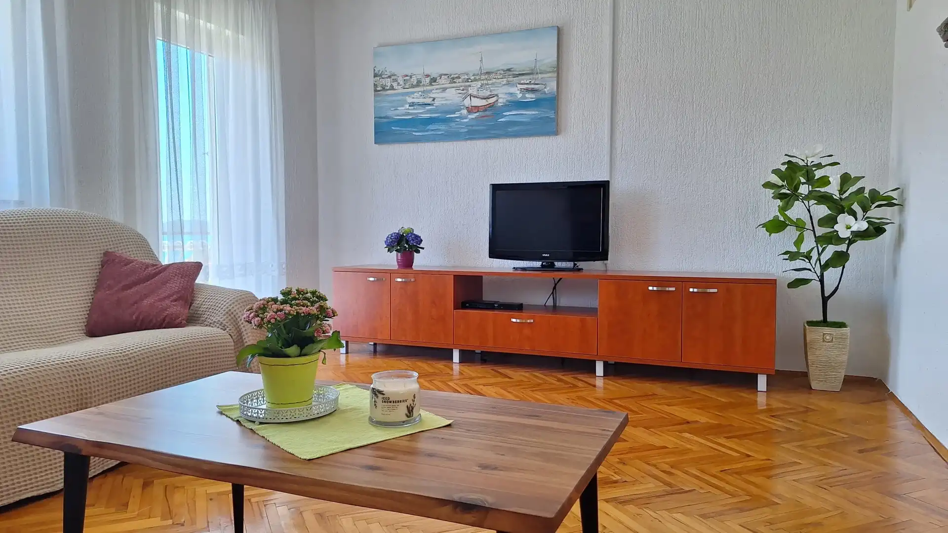The apartment is located in a family house, in a quiet part of Brodarica, 100 meters from the beach. The apartment has a free parking space. The apartment is equipped with air conditioning, internet, satellite receiver, etc. The price includes bed linen and a welcome drink. The distance from the city of Šibenik is 5 km, Solaris Resort 3 km, highway 5 km, shopping center 3 km. In Šibenik and the surrounding area there is a rich offer of cultural and historical heritage and natural beauties, national parks Krka and Kornati. To get to the beach you do not need to cross the road.