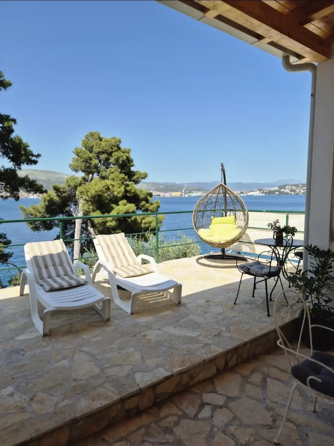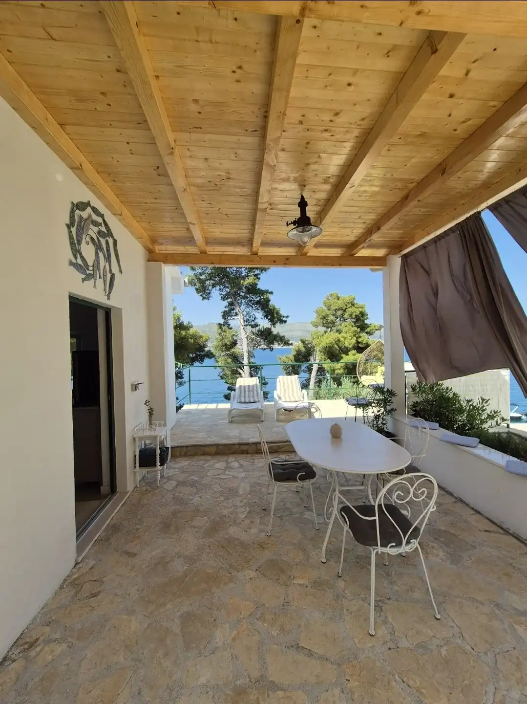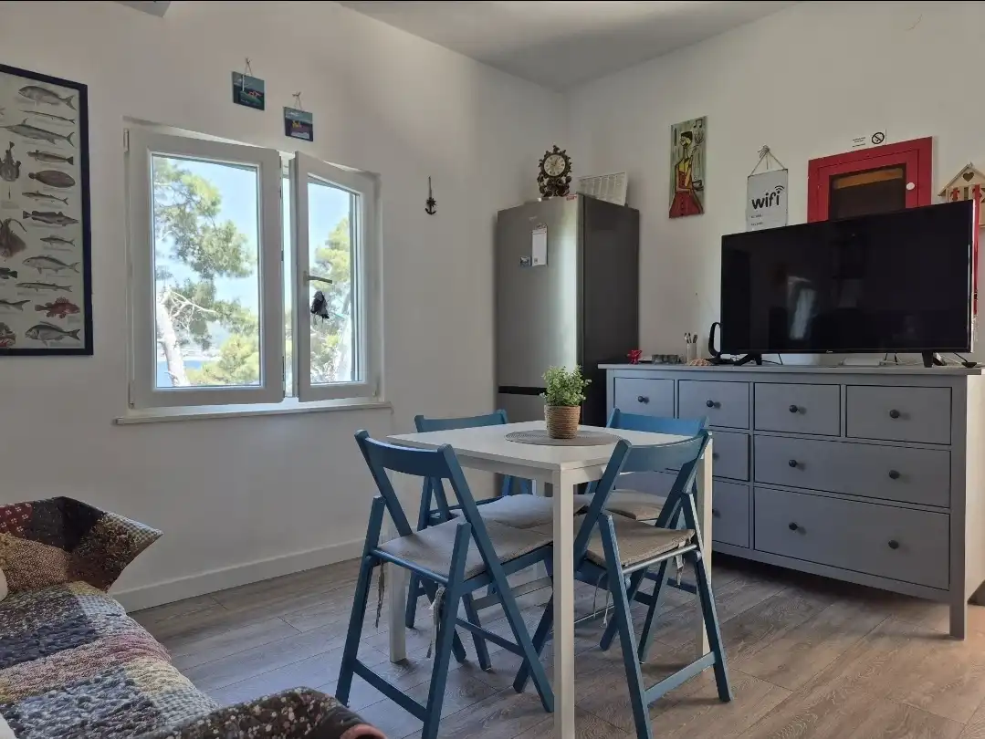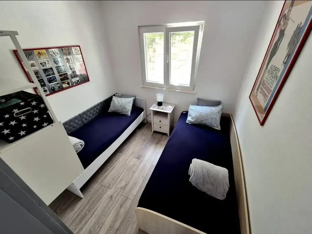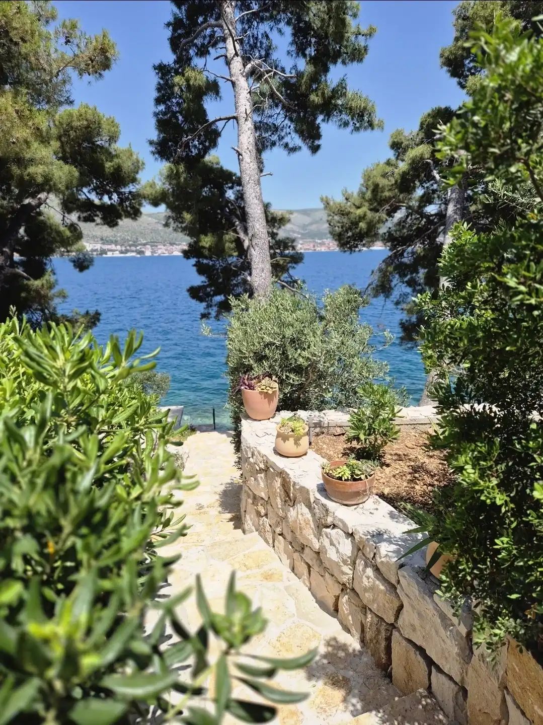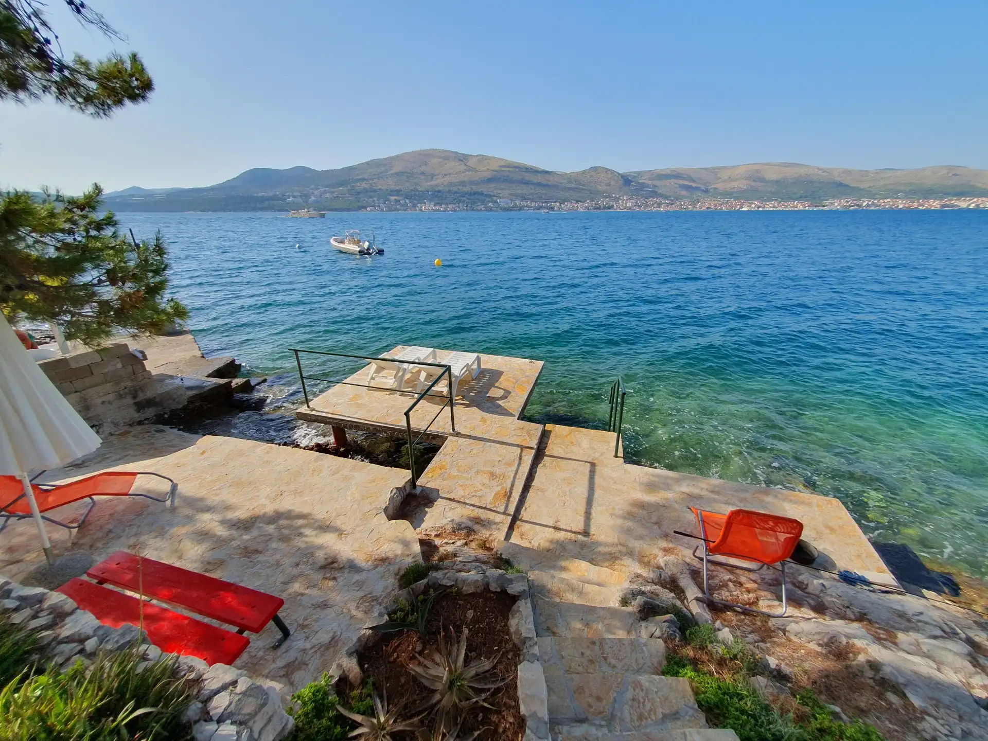 Amor Mari is a holiday home that has Mediterranian flair. It is situated on an island Čiovo, that is connected to city of Trogir with a bridge, 20 minutes from the airport by car. The property extends to 550m2 where you can enjoy the large stone terraces, and the whole estate is for our guests. The house is 38m2 large. First line to the sea, surrounded by olive trees and flowers. Peaceful nights,calm days,a place ideal for relaxation. Suitable for families, smaller groups of friends or pairs.